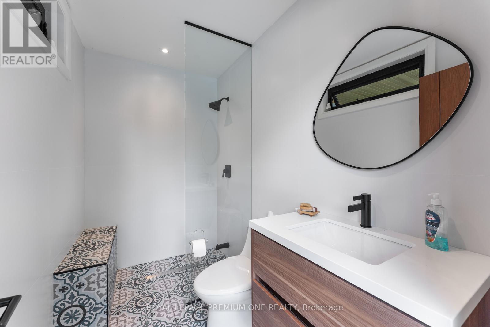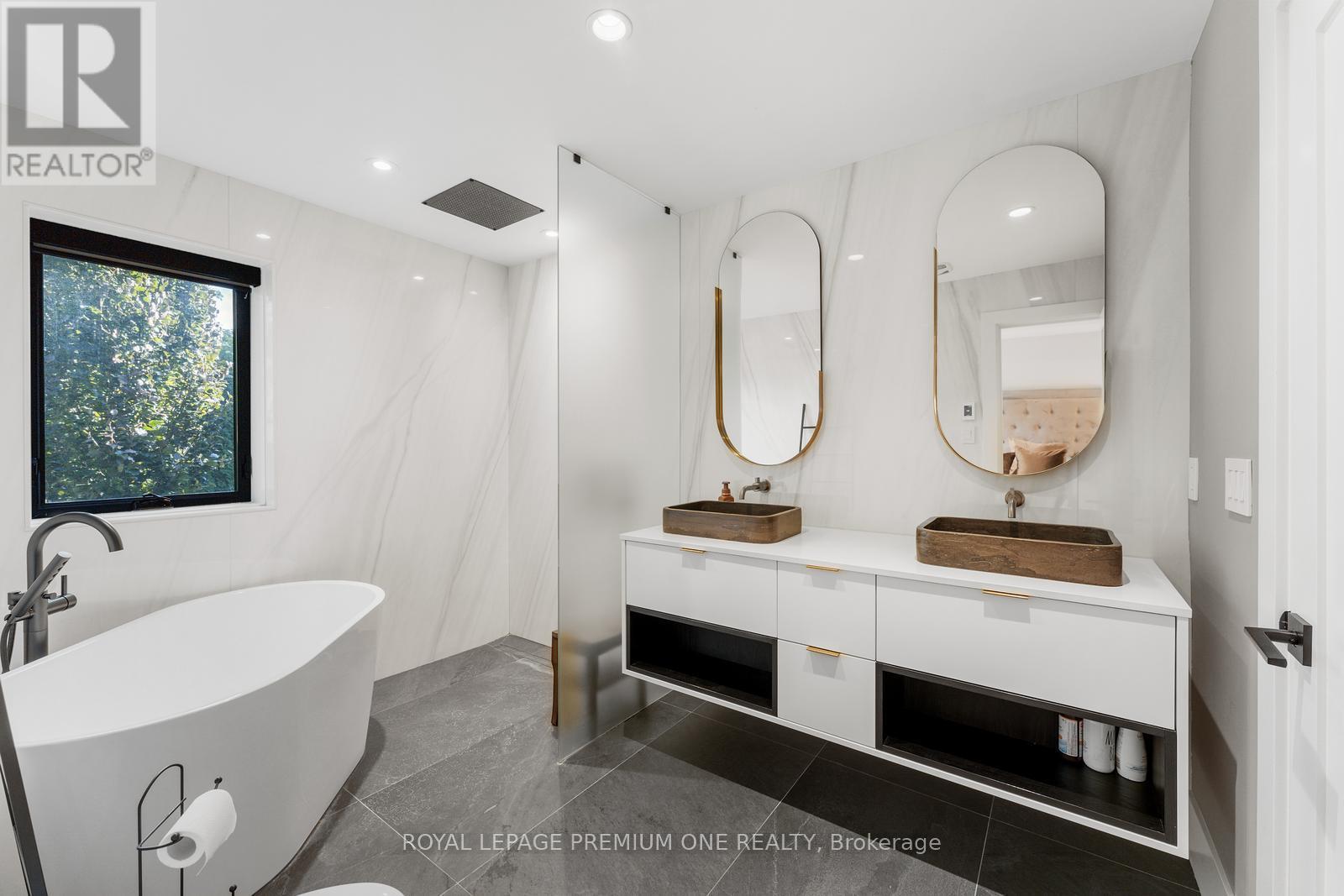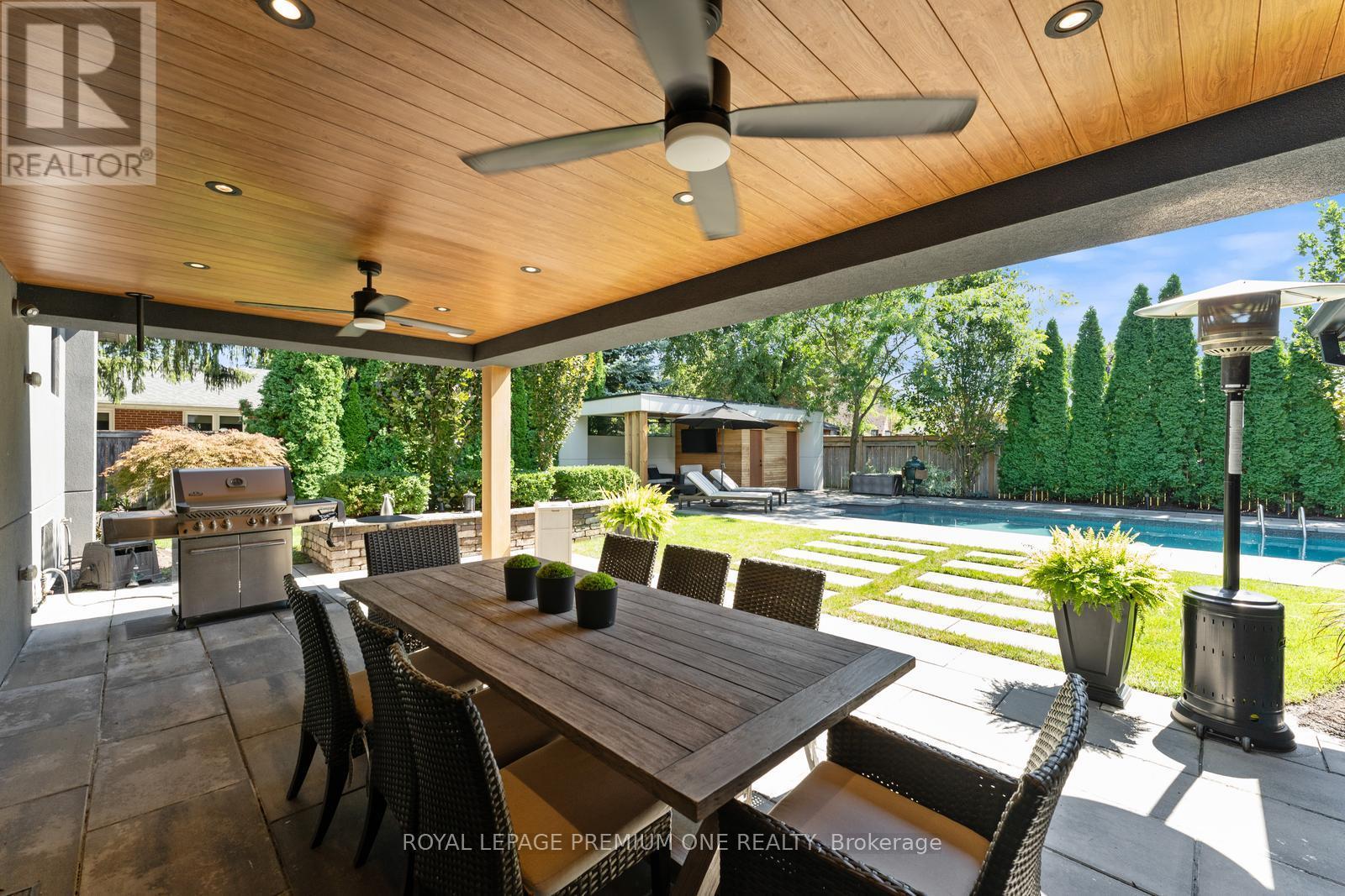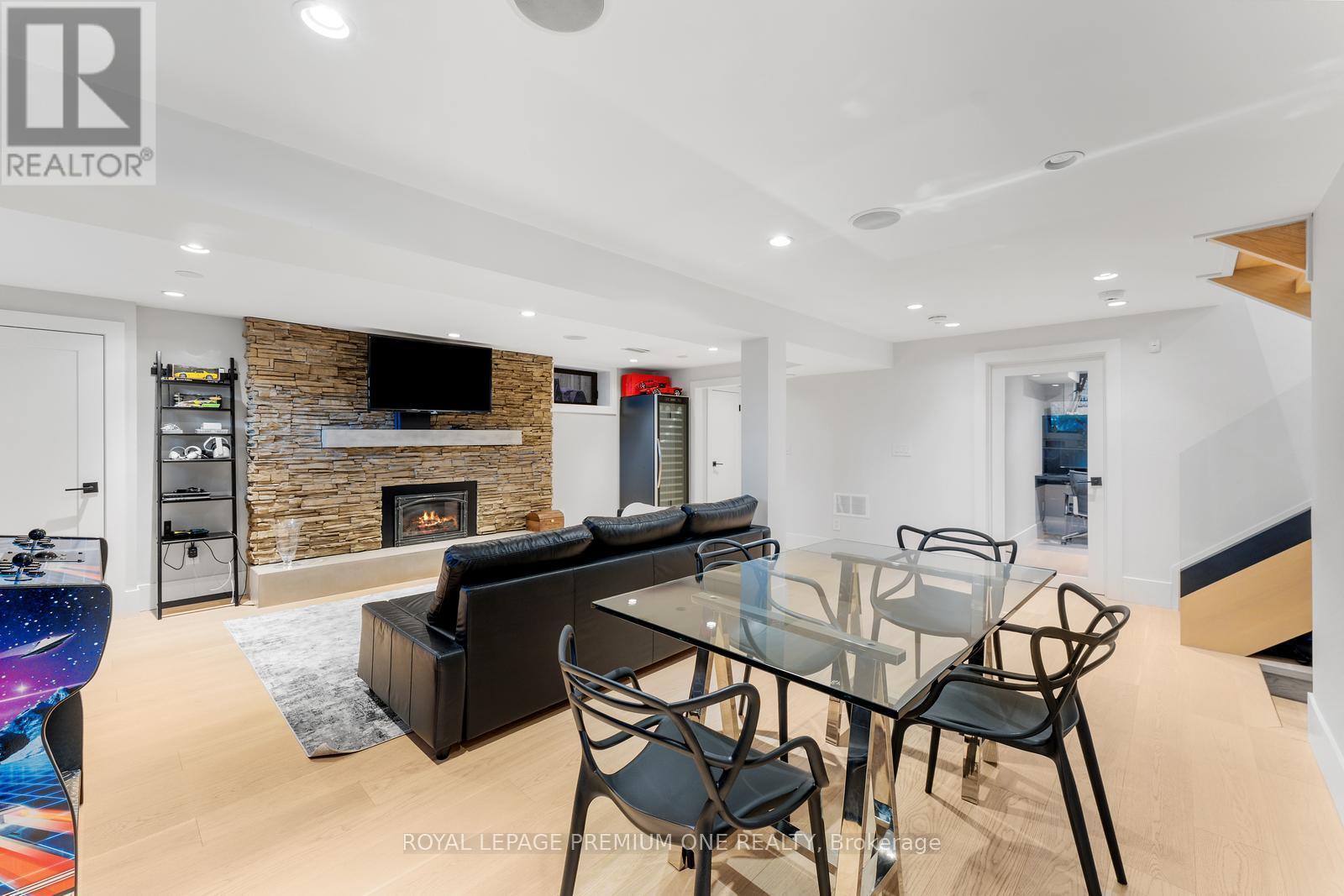 Welcome home to 49 Norman Drive! This modern architectural masterpiece presents a rare and unique offering blending refined luxury and clean contemporary lines in the heart of King City. The custom front opens to a bright, open concept layout featuring large custom windows, functional sightlines and oak hardwood flooring thru-out the living space. The reimagined Chefs Kitchen designed by Muti Kitchens is an entertainers delight boasting sleek custom cabinetry, a large center island with honed granite counters and a cascading waterfall. Complimented further by top-of-the-line Miele appliances and an extended breakfast table area. The spacious dining area is the perfect setting for hosting dinner soirees and seamlessly flows into the outdoor Loggia area, where guests can enjoy after-dinner cocktails overlooking the gorgeous backyard oasis. The large, bright living room features a beautiful, vaulted ceiling and a large, picturesque window offering stunning views of the backyard oasis. A two-sided gas Fireplace adds warmth & coziness for evening relaxation. The stunning backyard oasis provides the perfect backdrop for summer entertaining with family & friends, featuring a 15x28ft inground saltwater pool and a cedar-finished Cabana outfitted with a 4pc bathroom & kitchenette. The manicured landscaped grounds and loggia area offer a serene setting for al fresco dining. The Primary bedroom includes access to a spa-inspired ensuite with heated floors, porcelain slab walls, floating vanities, and a zero-entry shower. The lower level provides additional living space with a large recreational room, an office and a 4-pc ensuite. Located in close proximity to numerous amenities with easy access to Hwy 400 & the King City GO Station. Steps to beautiful restaurants/shops and top-rated schools (Villanova, Country Day School). King Valley & Kings Riding Golf Clubs & the New Zancor Recreational Center. Your refined luxury lifestyle awaits at 49 Norman Dr in King City! (id:51158)