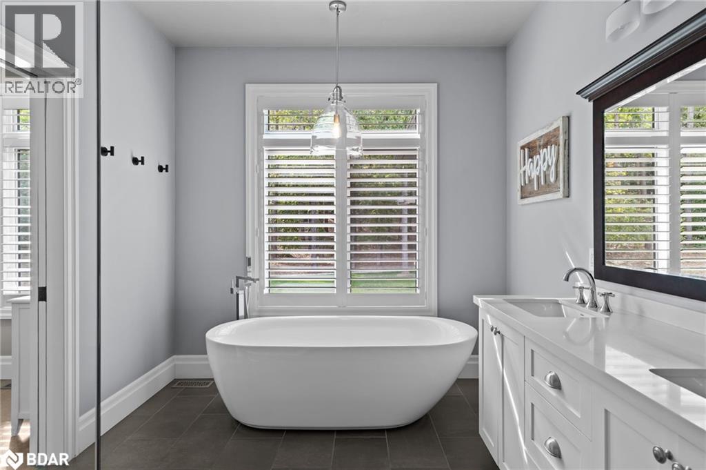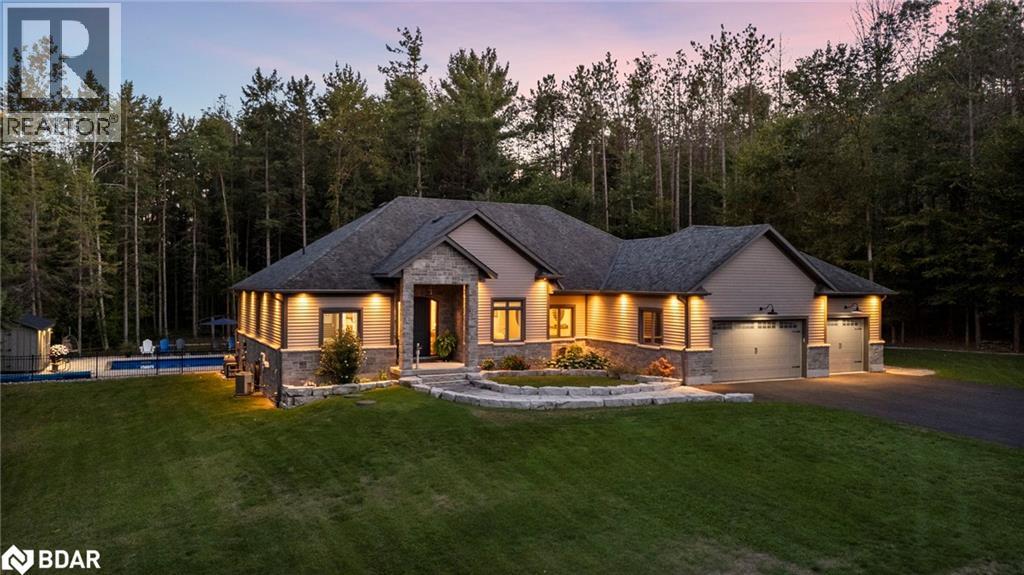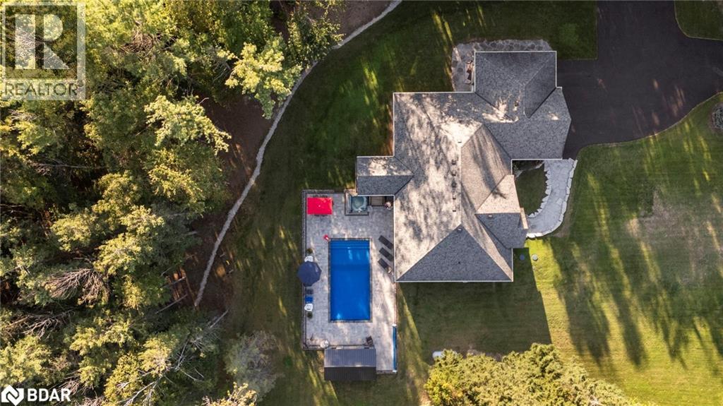 Your Private Resort, Every Day of the Year. Tucked away on 2.5 acres of mature trees and rolling landscape, this custom-built home isn’t just a place to live - it’s a lifestyle. From the moment you arrive, you’ll feel the peace and privacy of country living, all while being steps from walking trails and minutes from town conveniences. Inside, soaring vaulted ceilings and a floor-to-ceiling propane fireplace set the tone for gatherings with family and friends. The open-concept design flows seamlessly from the living and dining area into a chef’s kitchen with quartz countertops, extended cabinetry, stainless steel appliances, and a striking glass backsplash. Every detail has been crafted for both function and style. The main floor offers four bedrooms, including a primary suite designed as a true retreat, complete with a spa-like 5-piece ensuite and walk-in closet. The finished lower level with private garage entrance extends the lifestyle—whether you need a guest suite, home gym, or office. A 5th bedroom, 3-pc bath, and expansive mudroom with storage make the space versatile and practical. Step outside and discover why this property is truly exceptional. A saltwater pool glistens in the sun, paired with a hot tub and covered deck that invite you to host summer parties, quiet evening dinners, or simply unwind after a long day. With walking trails at your doorstep and a backyard that feels like a private resort, this home delivers a lifestyle most only dream of. Luxury, privacy, and connection to nature—this home is more than a residence. It’s where family memories are made, friends gather, and every day feels like a getaway. (id:51158)