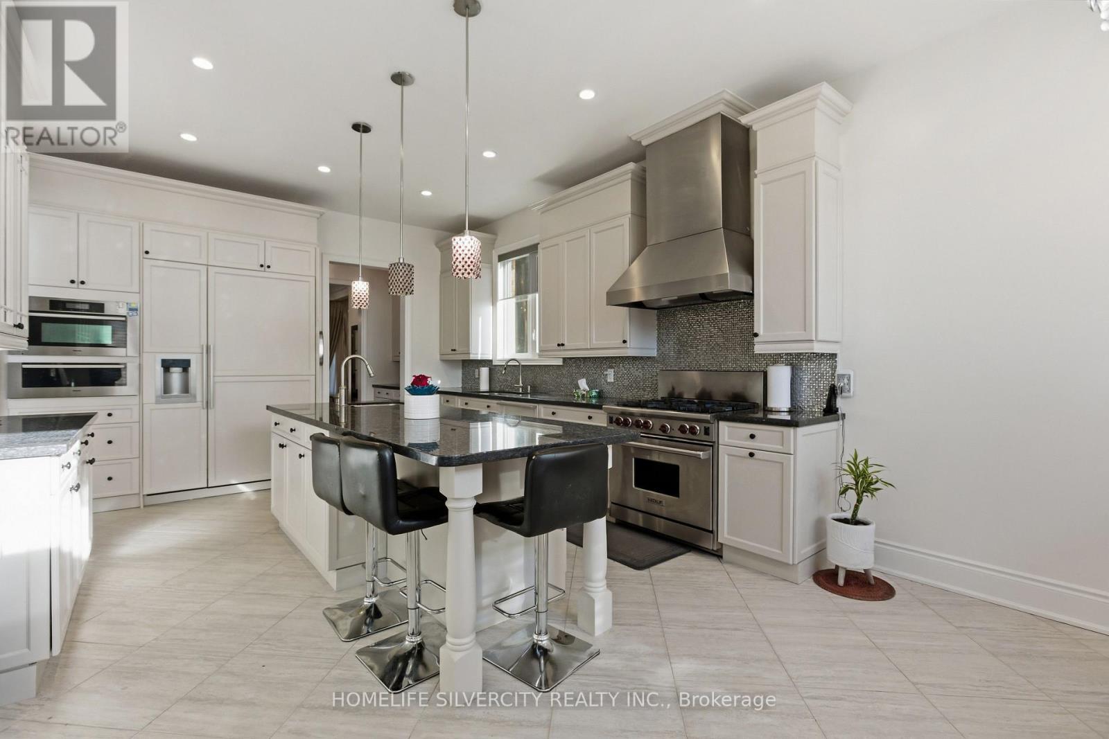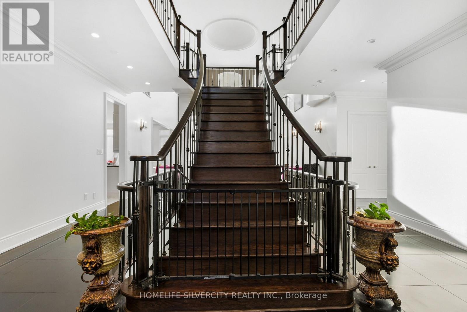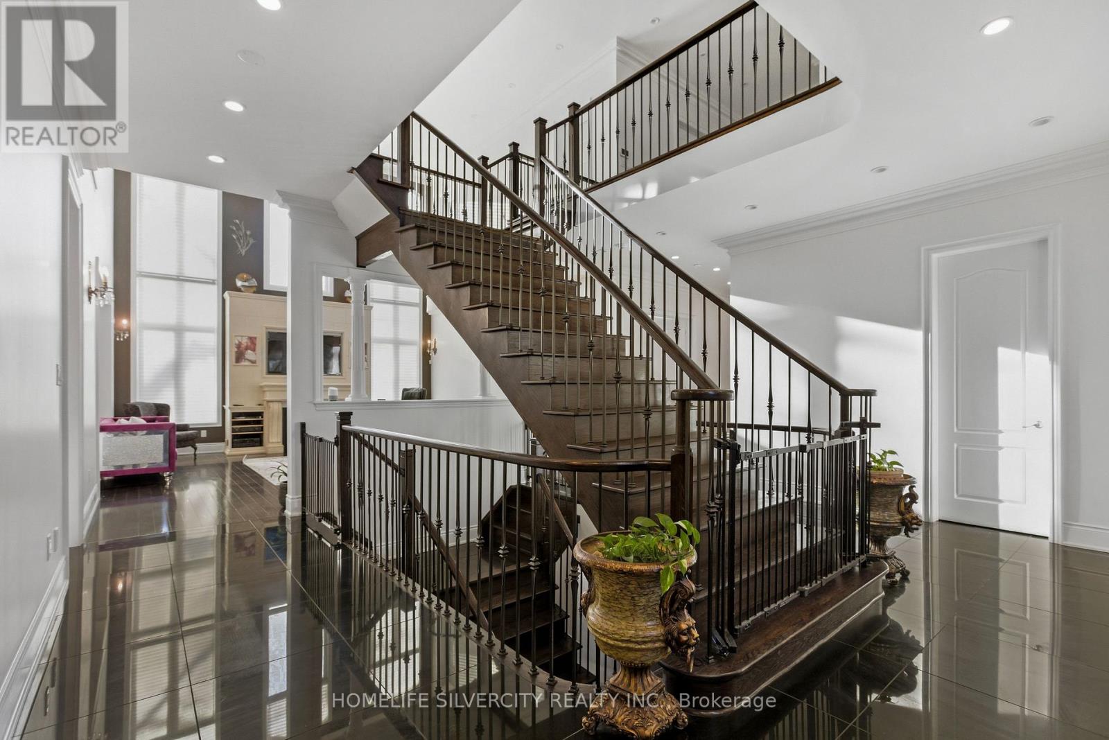 A truly One-of-a-Kind Custom Luxury home, nestled on a ravine lot with lots of sunlight, just minutes from the beach. This meticulously upgraded home blends refined design, advanced technology, and exceptional craftsmanship throughout. Features include heated entrance, 10-ft ceiling throughout home, 18-ft ceiling in Great room with custom dome, 8-ft doors throughout, hardwood flooring, granite finishes, and *two master bedrooms* (main & 2nd floor), both with walk-in closets, 5- piece ensuite with jacuzzi. All bedrooms have adjoining full bathrooms and ample closet space for storage. Enjoy a state-of-the-art audio system, high-speed networking throughout, custom mill work and thoughtfully designed living spaces including a theatre room, home office, and finished walk-out basement. The Great Room stuns with open to above area, with custom dome ceiling, fireplace feature wall, and seamless indoor-outdoor flow with pot lights throughout the home. Step outside to a professionally landscaped backyard oasis with a 700-sq-ft entertainment pad, low maintenance turf throughout the backyard, water features, fire pit, gazebo, glass railings, and LED lighting- all backing onto a beautiful and serene creek. Additional highlights include dual furnaces & amp; 2 A/Cs, tank less water heaters, smart security system, custom closets, 18 car drive-around driveway with fountain, and a heated entrance inside the home. An extraordinary home offering luxury, privacy, and modern living in one of Pickering's most sought-after neighbourhoods. See Attached List Of All Upgrades, $$$ In Landscaping, 21 Invisible Stealth Speakers, 2 Furnaces, 2 Air Conditioners, Hunter Douglas Blinds Throughout, Rough-in for Kitchen in basement and Theatre Room in basement. Over 8000 sq feet of living space; 5455 sq ft above grade and 2800 sq ft walk out basement. (id:51158)