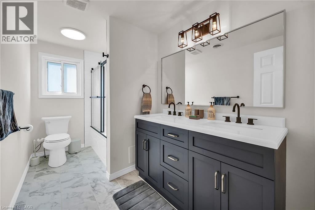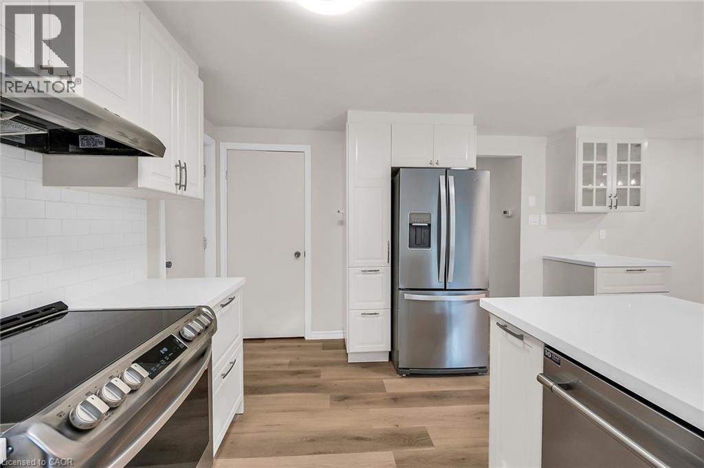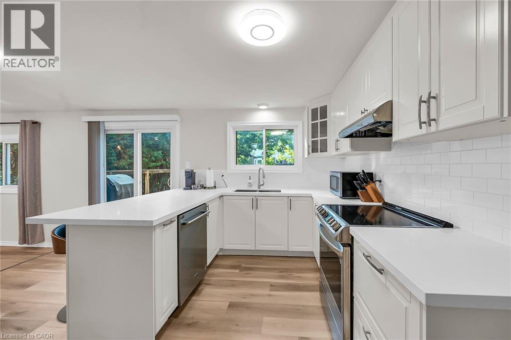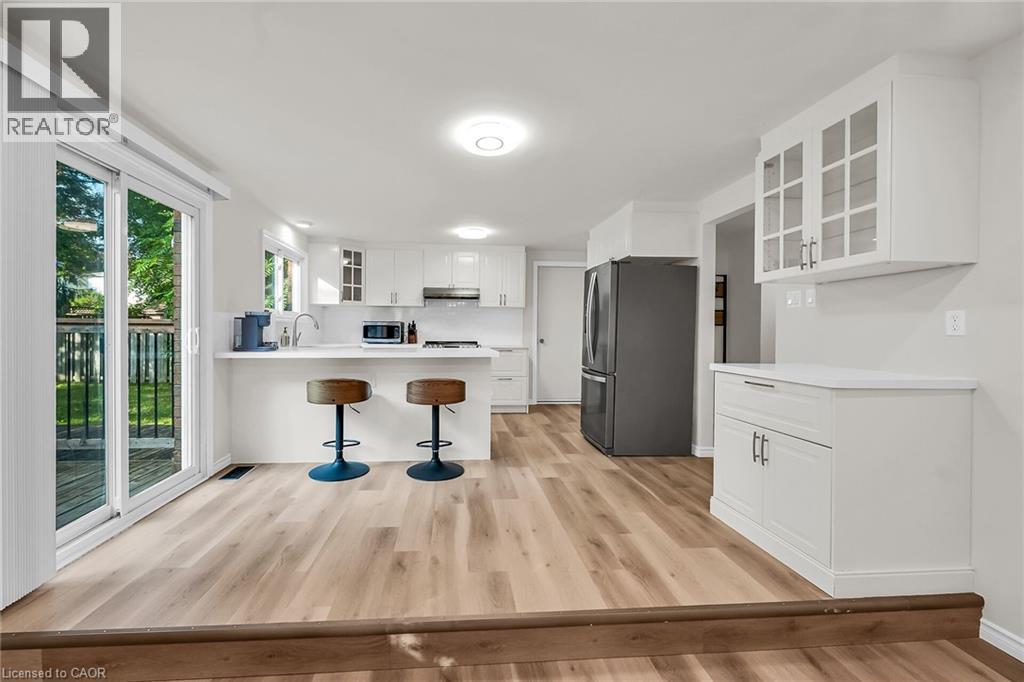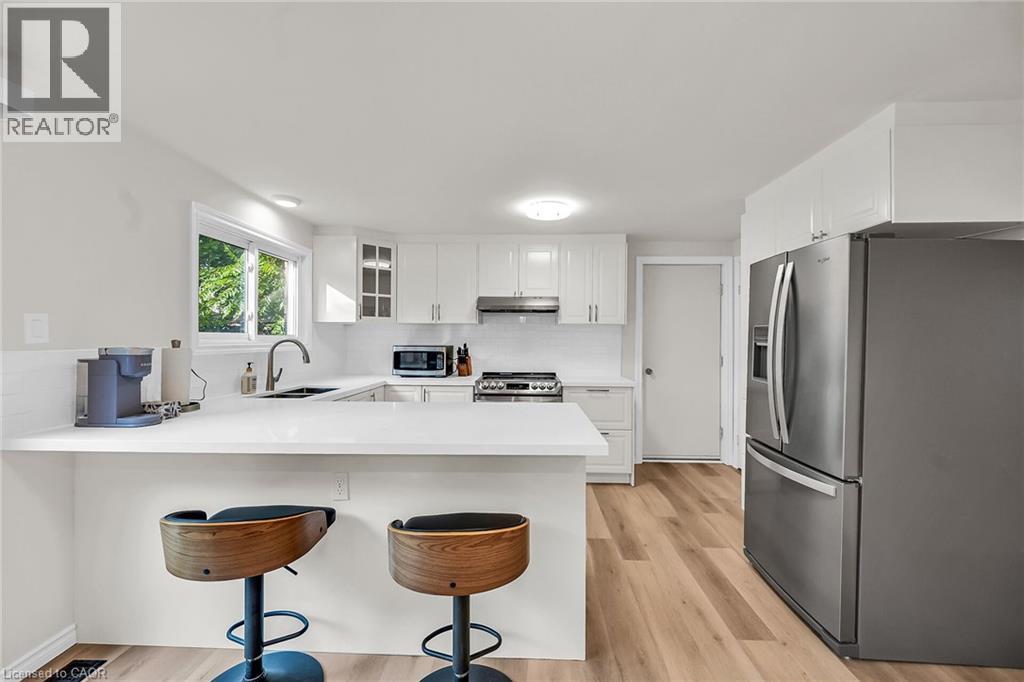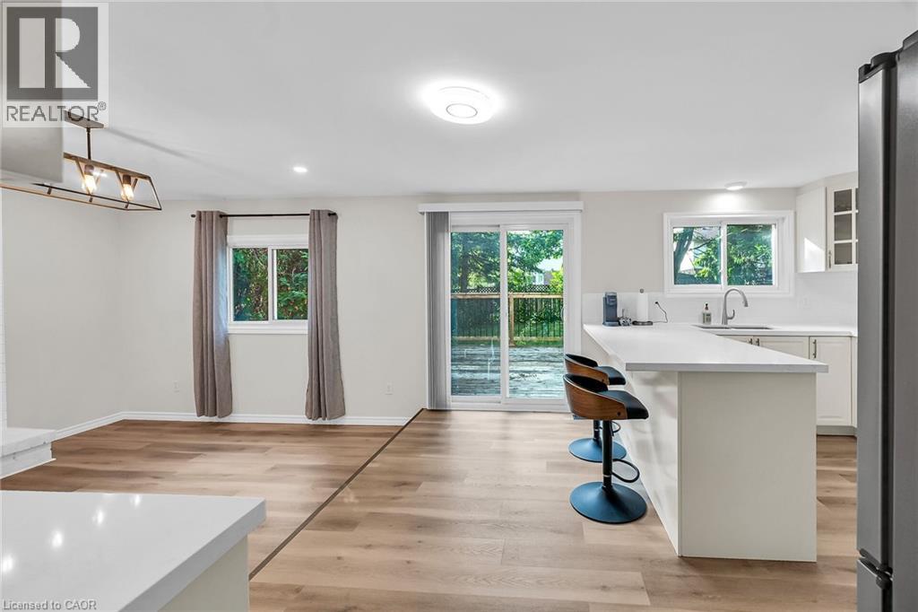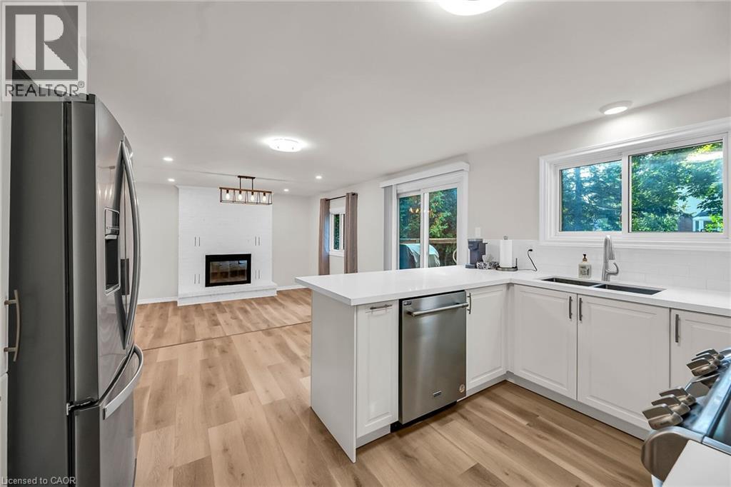 Great rental potential! Beautifully upgraded and carpet-free, this home features brand new flooring throughout. The upper level offers 3 spacious bedrooms, including a primary with walk-in closet and private 2-piece ensuite. A 4-piece main bath with double sinks completes the second floor. The open-concept, eat-in kitchen with white cabinetry, and stainless steel appliances flows into a family room with wood-burning fireplace, while a separate living room adds extra space. Sliders from the kitchen lead to a large deck with fully fenced yard. The finished basement offers a 4th bedroom with egress window and 3-piece bath, ideal for students or in-law use. Steps to transit to the University of Guelph, this property is a smart choice for investors. Don’t miss out! (id:51158)