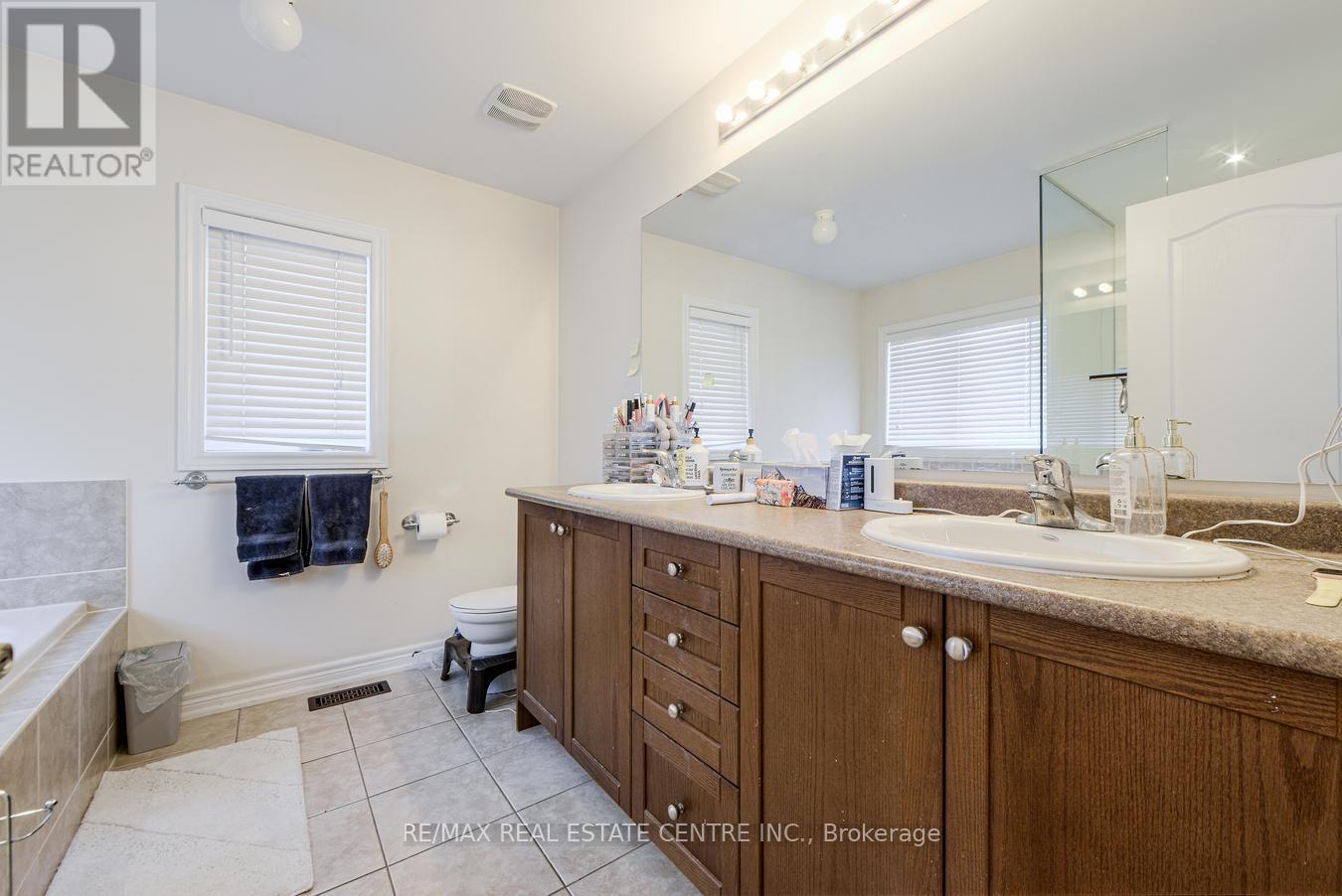Welcome to this beautiful and spacious One Of A Kind! Stunning Large 4Bdrm Arista Built, 2,200 Sq Ft Semi-Detached Home (Attached Only By The Garage) Overlooking The Niagara Escarpment offering a perfect blend of comfort, style, and functionality. From the moment you arrive, the striking brick exterior and inviting front entry set the tone for what awaits inside. Step into a bright and welcoming foyer featuring tiled floors and a stunning staircase. The main level boast 9Ft Ceilings an open-concept layout with large windows that fill the space with natural light. The formal living and dining areas flow seamlessly into a cozy family room, creating the perfect setting for both entertaining and everyday living. The upgraded kitchen is equipped with stainless steel appliances, ample cabinetry, and a functional layout with direct access to the backyard ideal for family gatherings. A convenient powder room and laundry area complete the main floor. Upstairs, youll find generously sized bedrooms, including a spacious primary suite with a walk-in closet and a luxurious ensuite featuring a double vanity, glass shower, and soaker tub. Additional bedrooms offer comfort and versatility for family, guests, or a home office. Located Close To All Amenities, Schools, Parks, Shopping, Hospitals & Hwys 401 & 407. (id:51158)