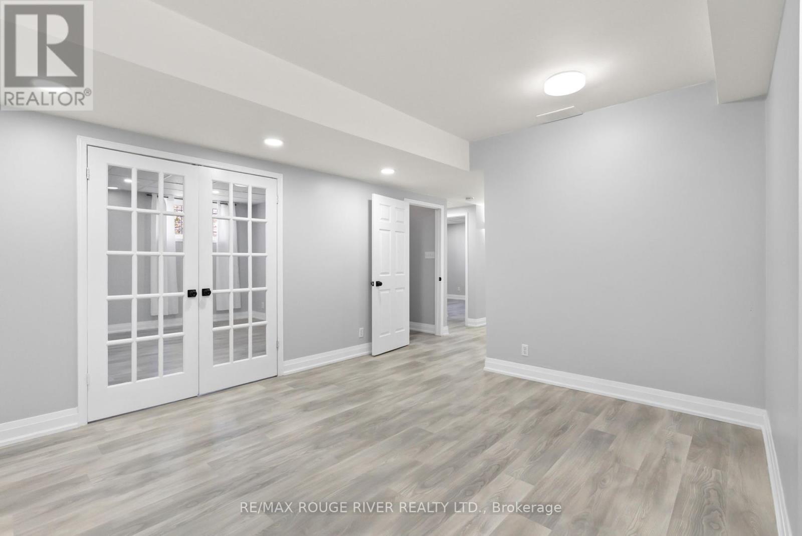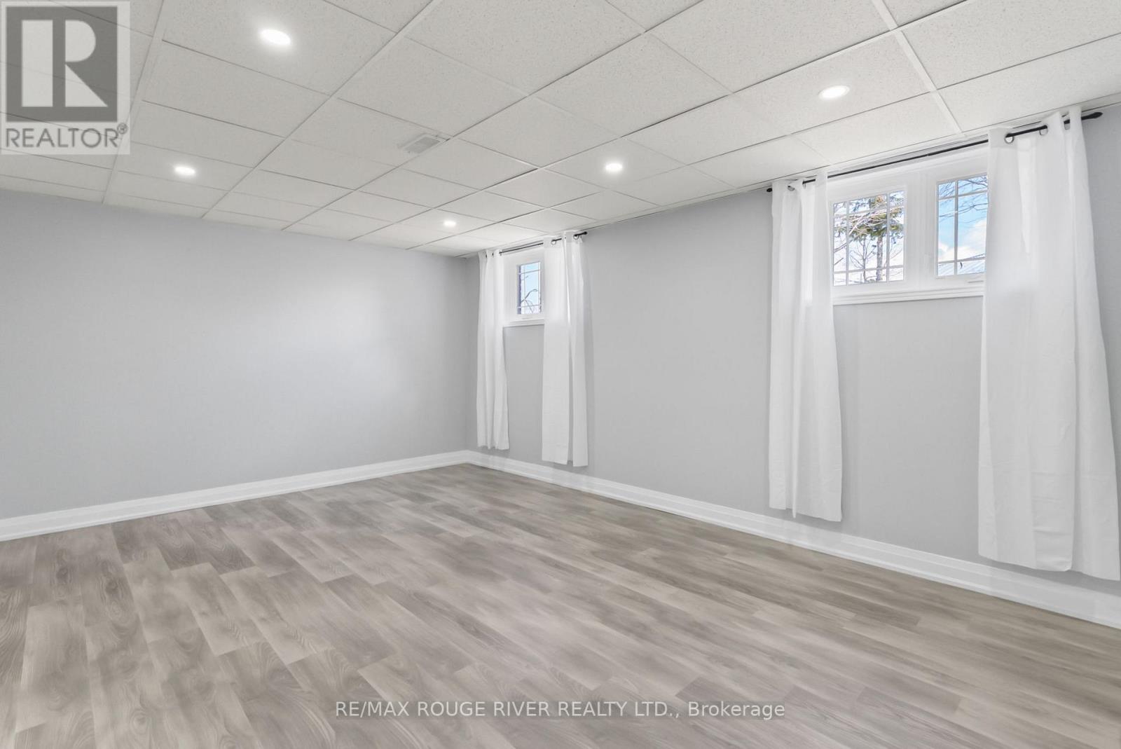 Welcome to this beautifully updated 3+1 bedroom, 2-bathroom raised bungalow situated on an expansive corner lot just steps from Beaverton Harbour. Located in a fantastic neighbourhood by the lake, this home offers a seamless blend of comfort, style, and functionality. Featuring brand new laminate flooring and baseboards throughout, the bright and inviting interior is highlighted by a spacious living room with a large bow window offering picturesque views of the front yard. The modern kitchen is equipped with sleek quartz countertops, a custom backsplash and stainless steel appliances, flowing effortlessly into the dining area complete with pot lights and a walkout to the backyard. The main level includes a generous primary bedroom with a double closet and abundant natural light, along with two additional well-sized bedrooms. The finished basement adds exceptional living space, featuring a large recreation room with pot lights and above-grade windows, an additional room perfect as a games area with a convenient walkout to the garage, and a spacious lower-level bedroom with double closets and ample light. A separate laundry room and additional bathroom enhances convenience. Outside, enjoy the large bi-level deck overlooking a spacious backyard. A 26 x 32 heated garage and workshop perfect for hobbyists or car enthusiasts combined with central air make this home an ideal haven for comfort, creativity, and year-round enjoyment. With a separate entrance, the lower level offers excellent in-law suite or rental potential. This well-appointed home presents an exceptional opportunity for families seeking space, versatility, and proximity to the lake. (id:51158)