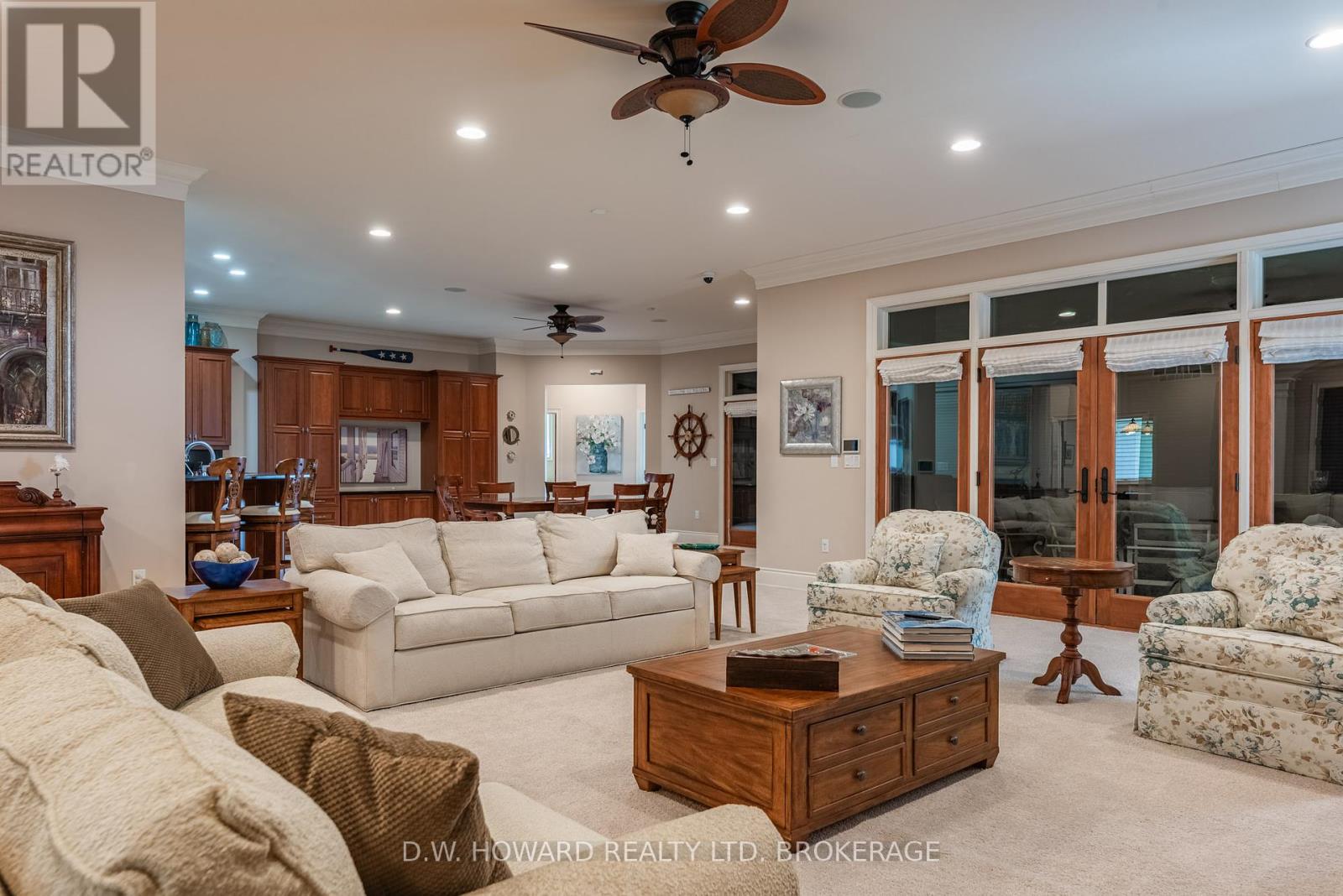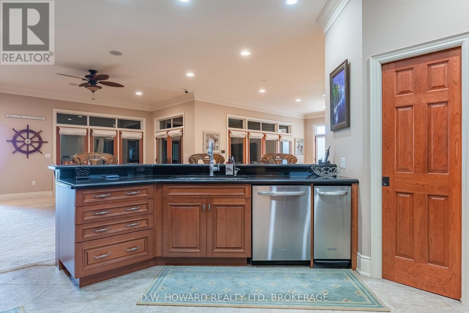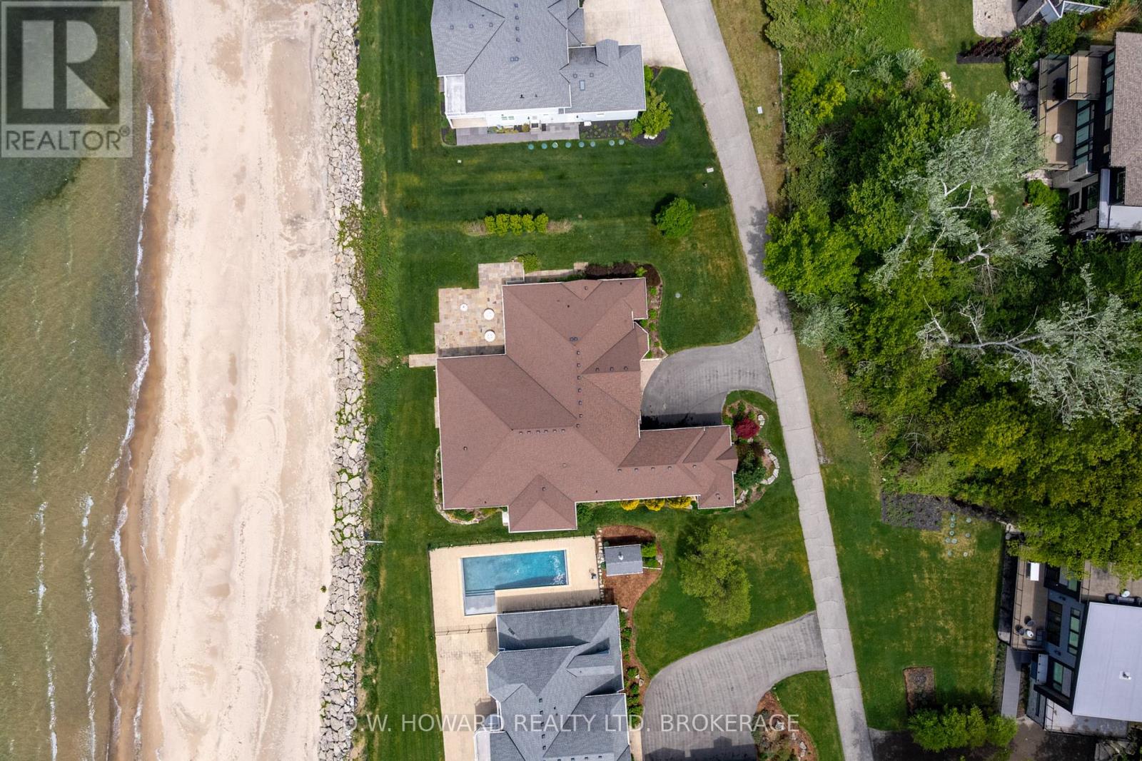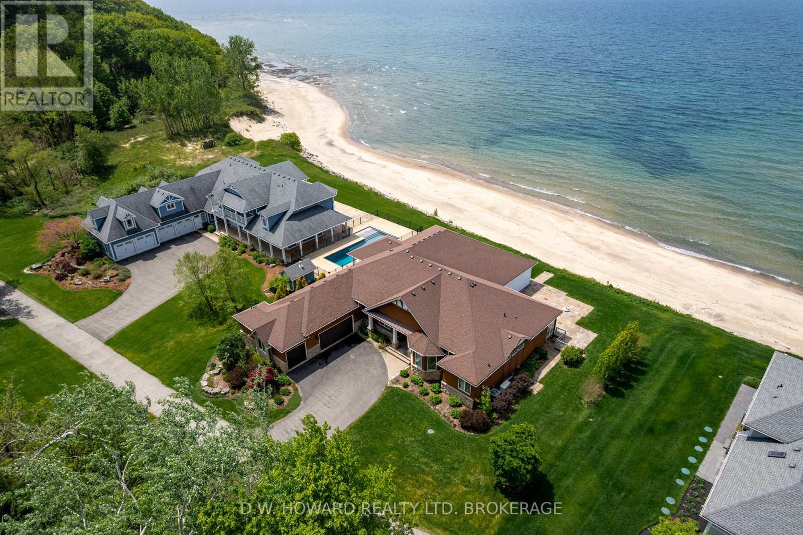 Lakefront luxury in exclusive Abino Dunes with this 4100 sq ft bungalow on a private sand beach. Welcome to Abino Dunes, a rare and private enclave tucked behind the gates of historic Point Abino. Spanning 80 pristine acres with only 28 exclusive residences, this gated lakefront community offers 2,000 feet of private sandy beach along the shores of Lake Erie and some of the most breathtaking water views you'll ever find. Sitting directly on the lake, this year-round bungalow redefines luxury waterfront living. With over 4,100 sq ft of beautifully designed space, the home features a bright, open-concept layout, a fully finished basement, and a long list of high-end features tailored for comfort, safety, and style. Step outside to a large enclosed patio complete with a full outdoor kitchen perfect for entertaining while watching the sunset over the water. The property also boasts hurricane-proof shutters, offering peace of mind in every season. The property is professionally landscaped with underground sprinklers for easy maintenance. Residents also benefit from high speed internet and association services, including lawn care, snow removal from the roads and garbage pickup which contributes to a more enjoyable and stress free lifestyle. The area is a natural wonderland and conveniently located near the charming village of Ridgeway. Photos can only hint at how spacious and spectacular this home truly is. You have to see it in person, as the overall feel of this waterfront package is extraordinary. View with confidence as this is lakefront living at its absolute finest. (id:51158)
