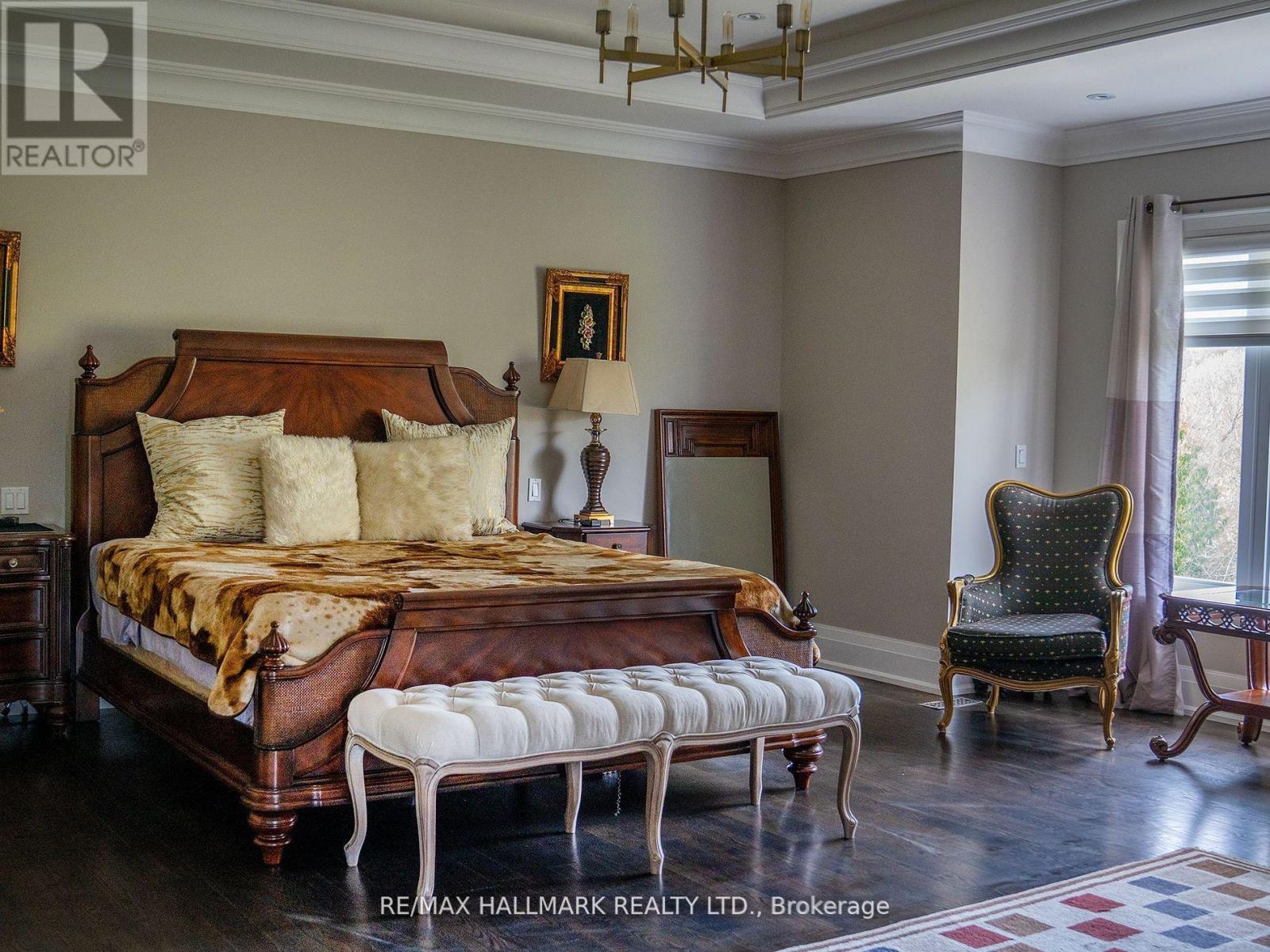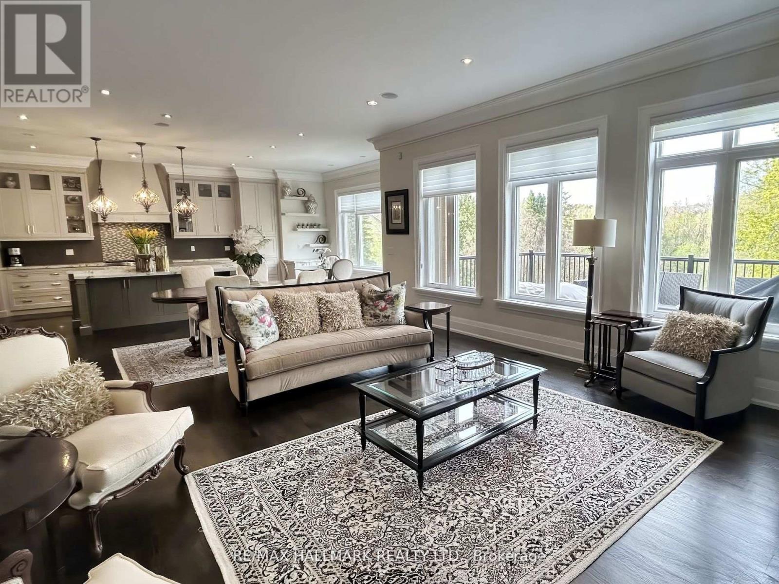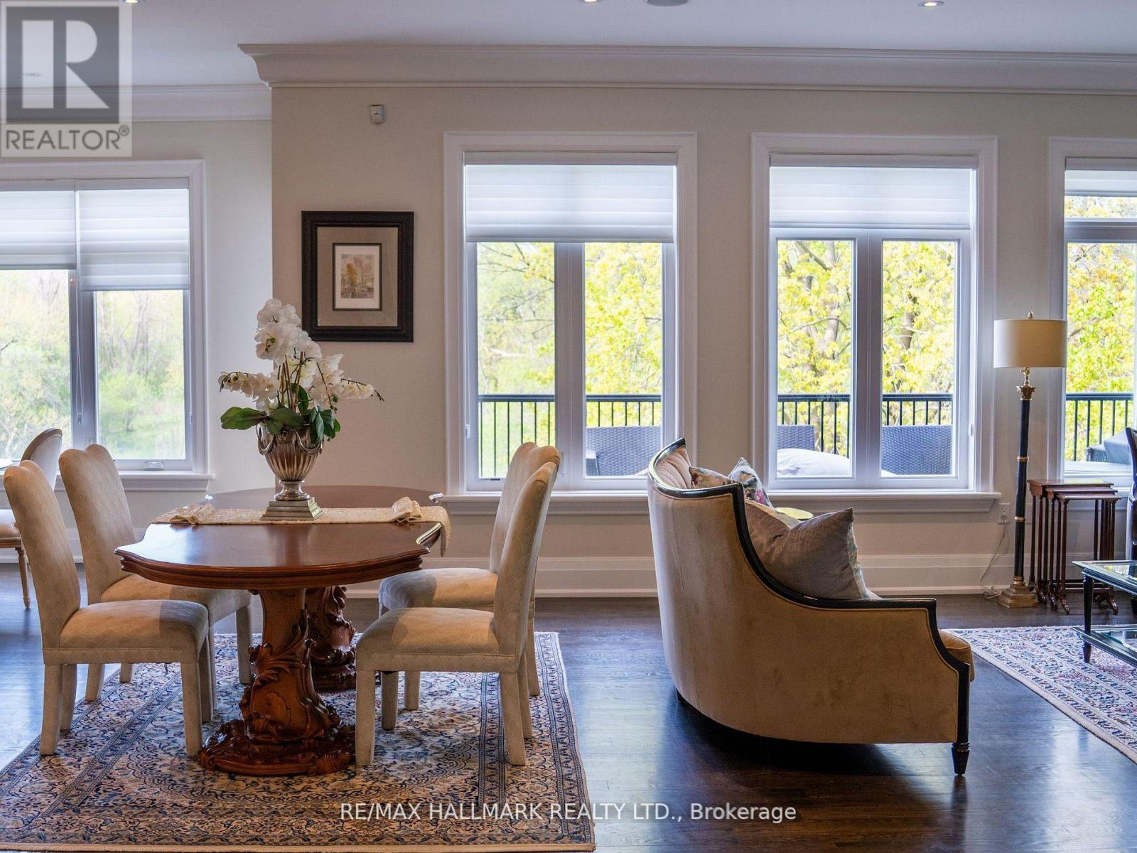 Luxury residence nestled in one of Richmond Hill's most prestigious enclaves. This architecturally stunning estate offers just under 6,000 square feet of impeccably finished living space, including a thoughtfully designed lower level, blending timeless elegance with modern sophistication. Every detail of this custom-built home has been meticulously curated. The main level features 11-foot ceilings, complemented by floor-to-ceiling windows that flood the interiors with natural light. The lower level mirrors this grandeur with 11-foot ceilings of its own, elevated 10 feet above grade to maximize brightness and livability. At the heart of the home lies a state-of-the-art gourmet kitchen, appointed with top-tier appliances, exquisite custom cabinetry, and luxurious countertops. A full second kitchen on the lower level adds functionality for extended family living or seamless entertaining. The residence is adorned with natural marble tile flooring , while heated floors span most bathrooms and the entire basement level, ensuring year-round comfort. Bathrooms are outfitted with imported, top-tier European plumbing fixtures and custom-designed vanity furniture, epitomizing understated luxury. Elegance continues with carefully crafted fireplaces, bespoke millwork, and refined finishes throughout. The attention to craftsmanship is evident in every space, from the principal rooms to the private retreats. Practicality meets design with a private garage accommodating three vehicles one tandem space at the front and two additional at the rear offering convenience without compromising aesthetics. The home is perfectly positioned on a serene ravine lot, offering tranquil views and a sense of seclusion, while remaining minutes from top-ranked schools, premier golf courses, fine dining, shopping, and quick access to Highways 407 and 404. (id:51158)