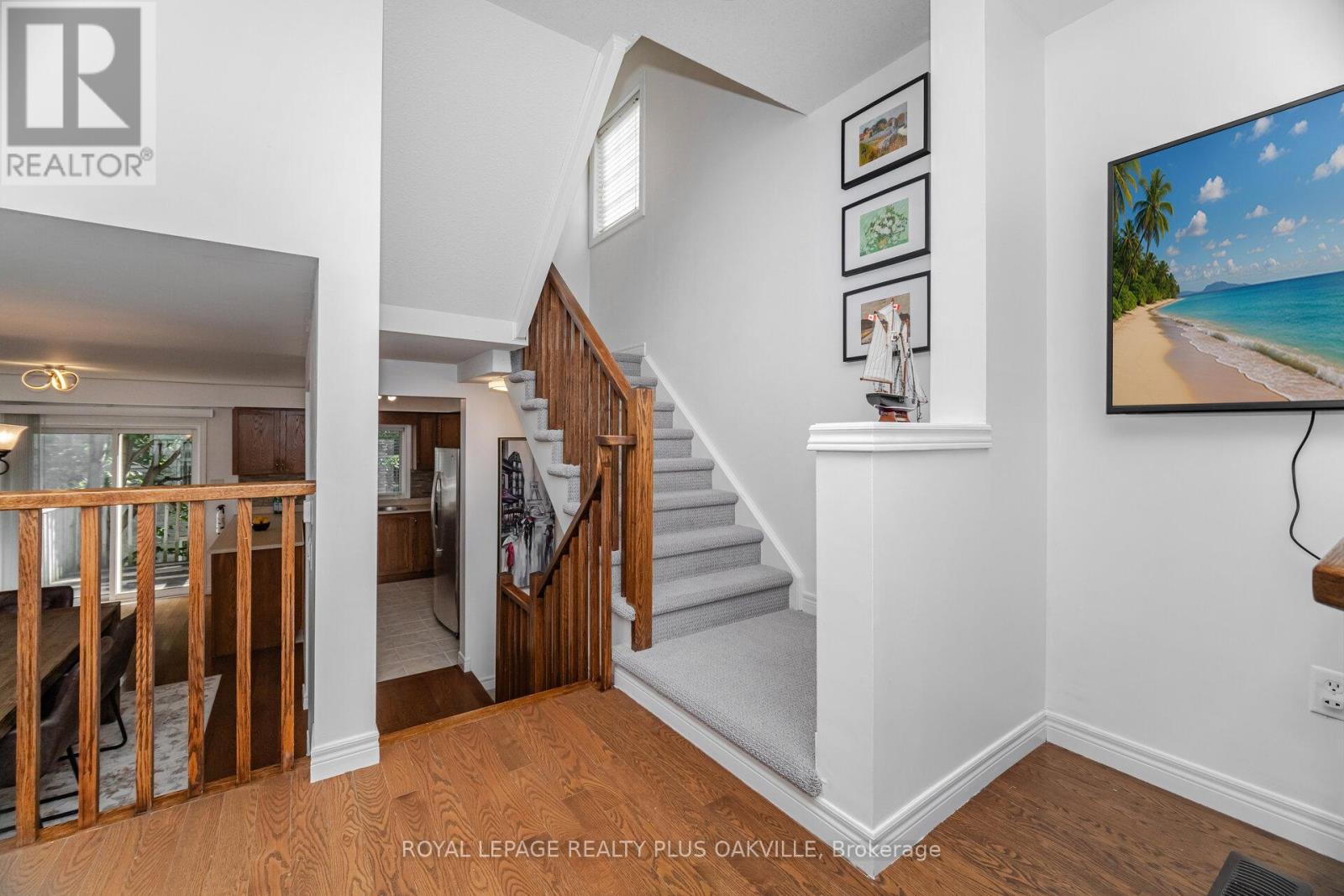 $335.42 MonthlyBeautiful executive End Unit townhome within a small complex in mature neighbourhood setting only a short drive to QEW/403 & Burlington GO station. Decorated in neutral tones and hardwood flooring throughout main level. Updates include furnace and AC (2022 owned), stainless steel stove and rangehood (2023), broadloom (2021) and large family sized kitchen with stainless steel appliances and walk out to a deck overlooking large mature trees. 3 bedrooms and 2 full baths on upper levels. Walk out basement with rec room or office that walks out to the patio. Also featuring a 2 piece bath and inside access to garage. (id:51158)