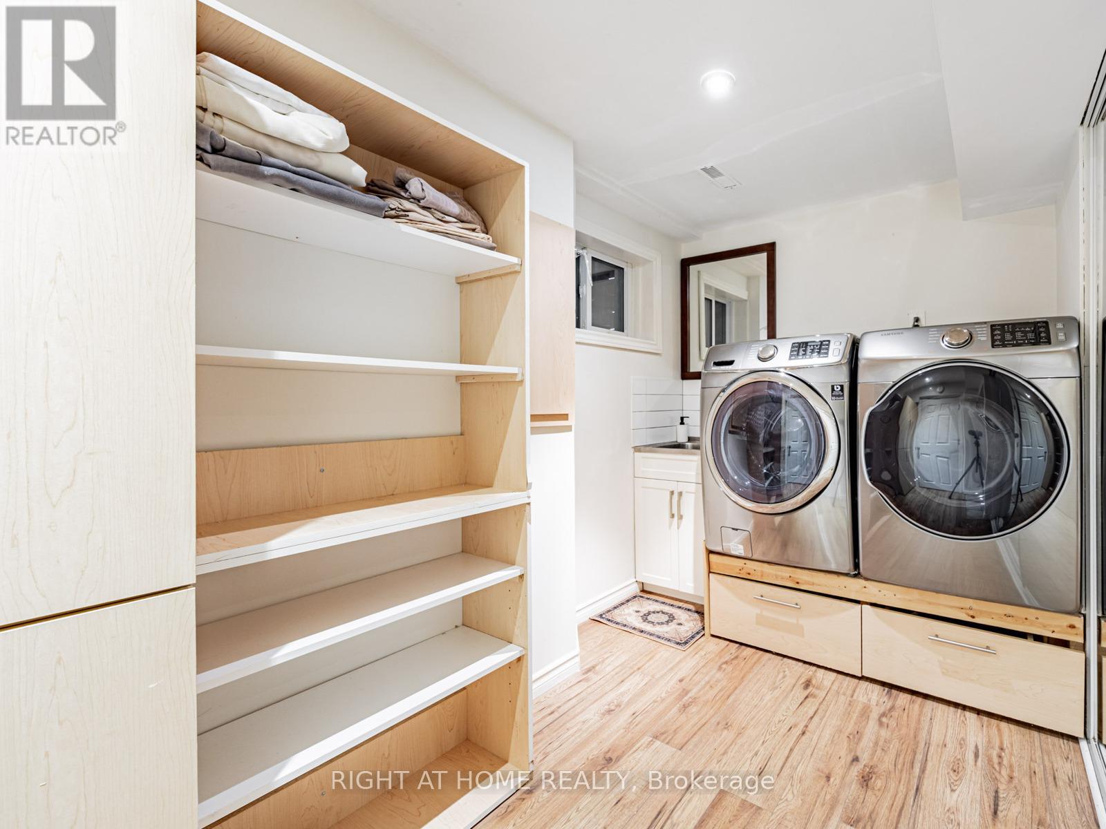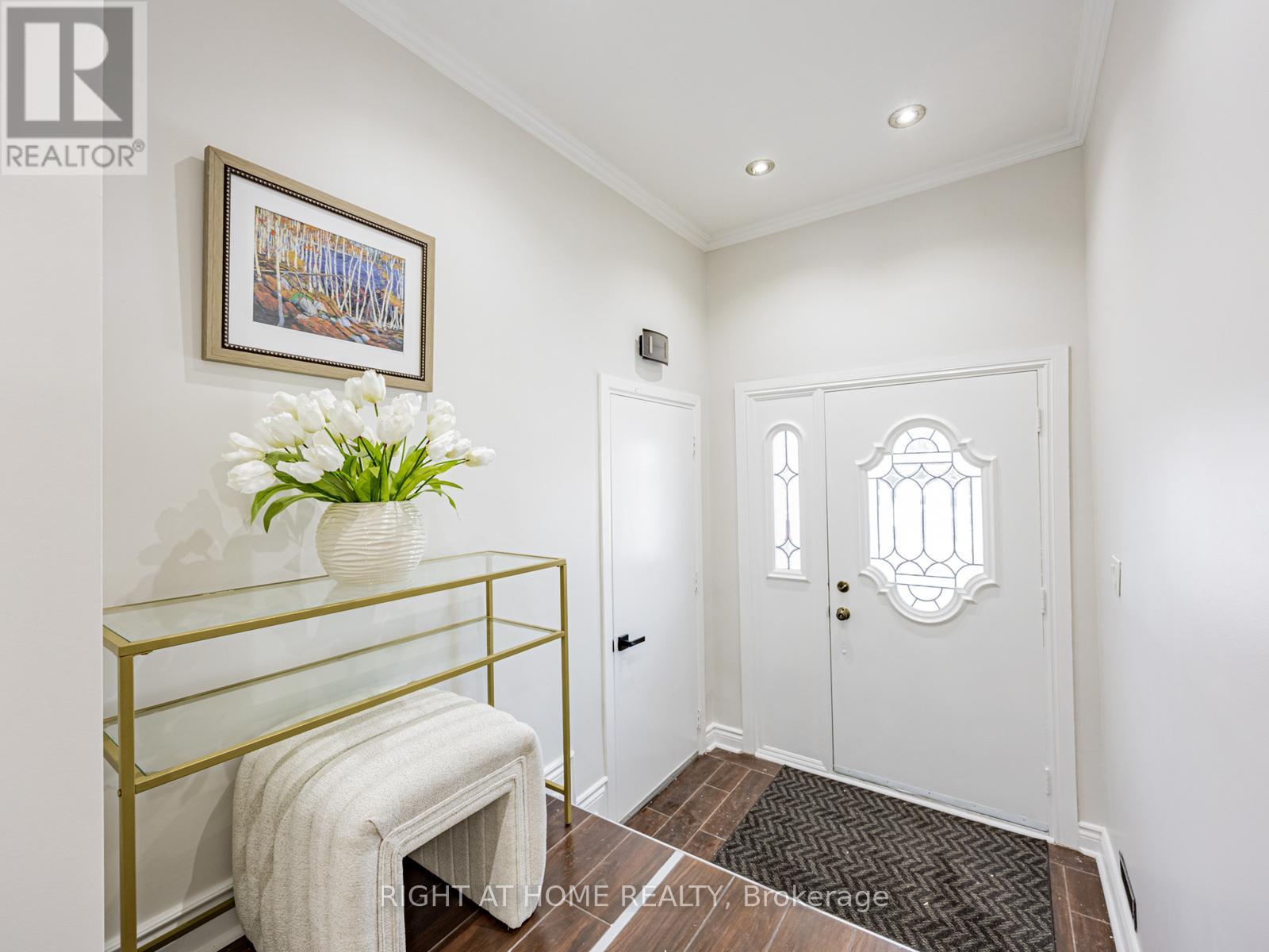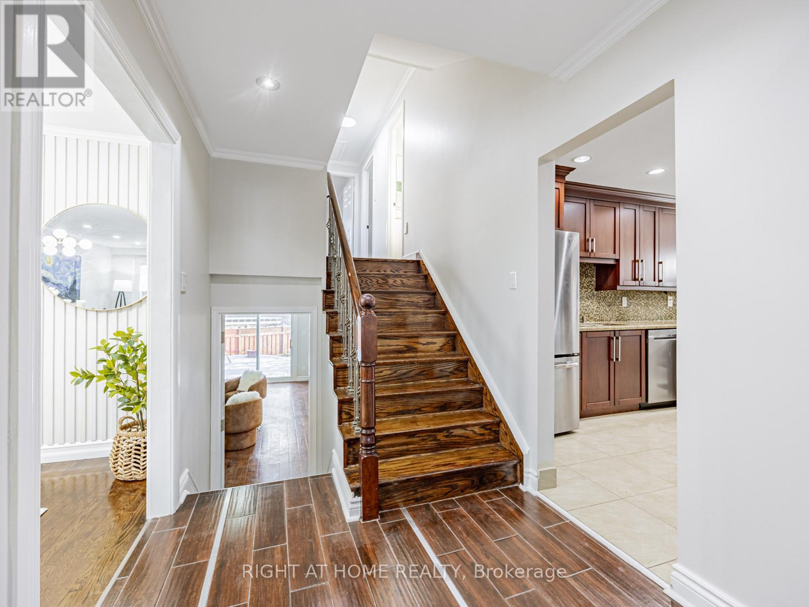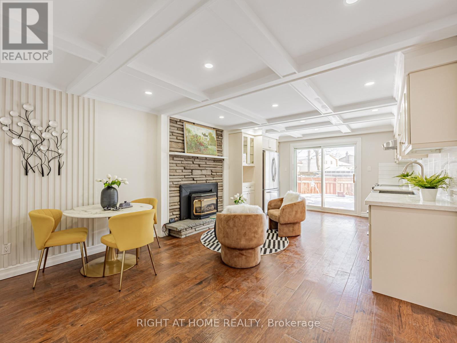 Walk to the lakeshore and the fantastic waterfront trail from this sought-after South Ajax location. This beautiful newly renovated backsplit 4 detached home, with two self contained living quarters/separate entrance/double garage/long driveway, is perfect for a large family or potential rental income. Freshly painted walls/hardwood floor/smooth ceiling/pot lights throughout. Two large eat-in full kitchens with stone countertop/backsplash/SS appliances. Upgraded bathrooms with glass showers and corner jacuzzi upstairs. Open concept cozy family room with fireplace, combined with dining area and 2nd kitchen, walk out to large fenced private backyard. Professional finished basement completed with home theatre with built-in TV/theatre screen/projector/speakers/fireplace. Direct access from garage to large front foyer. Minutes drive to HWY 401/Go Station/Costco/schools/community centre/hospital. (id:51158)