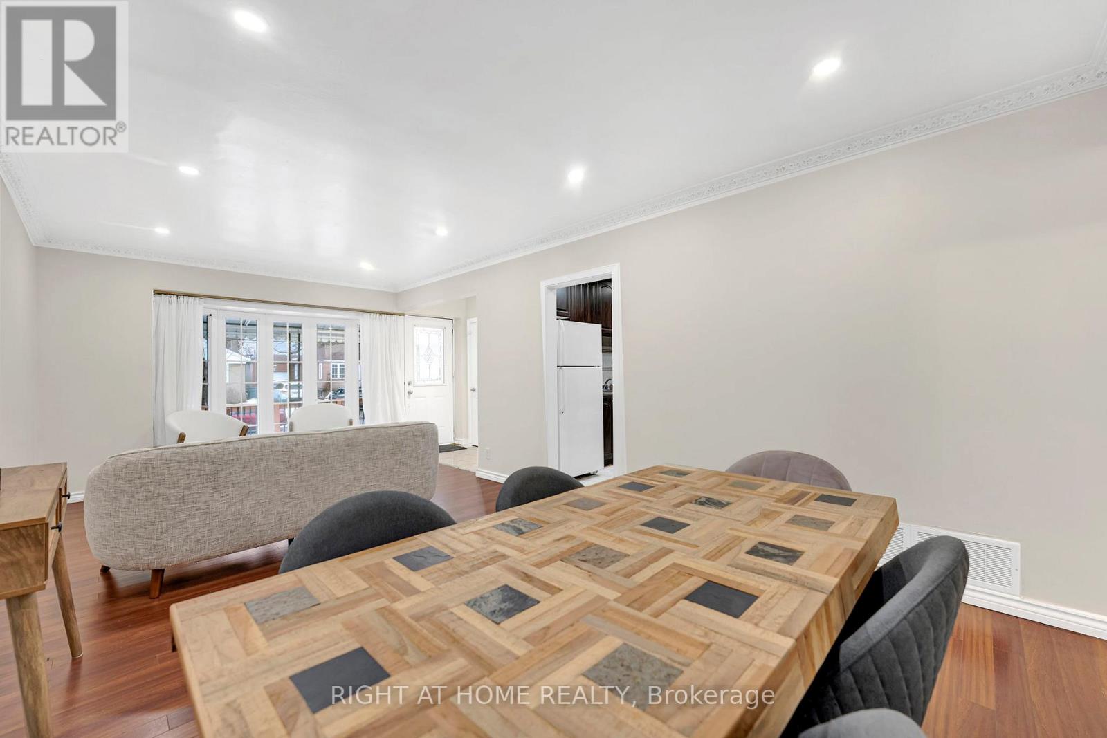 Welcome to 5 Hollingworth Drive, a detached brick bungalow on a 45 x 111 ft lot in the heart of Dorset Park, Scarborough. The main floor offers three bedrooms with laminate flooring throughout, a combined living and dining area with crown moulding, pot lights, and a large bow window, along with a kitchen featuring stainless steel appliances and ceramic flooring. The finished basement has a separate entrance and above-grade windows throughout that bring in generous natural light, making it feel nothing like a typical basement, along with a living area, kitchen, and two bedrooms, making it an ideal setup for in-law or multi-generational living. The property also includes a detached garage and a 4-car private driveway, along with a fully fenced backyard giving you the outdoor space and privacy that is increasingly hard to find in the city. Dorset Park is a well-established and family-friendly community in Scarborough with schools, parks, a public library, and a recreation centre all nearby, along with a variety of restaurants and everyday shopping within close reach. For commuters, TTC bus routes are easily accessible, Kennedy Station puts the subway network within reach, and the upcoming Eglinton Crosstown LRT will make getting around the city even more convenient. Lawrence Avenue and Birchmount Road put Highway 401 just minutes away, making this an excellent opportunity for first time buyers looking to get into the market with a detached home in a well-connected and established Scarborough community. If you are looking for a property that offers a functional layout, a finished basement with separate entrance, and a location that keeps you connected to everything Scarborough has to offer, 5 Hollingworth Drive is worth a serious look. (id:51158)