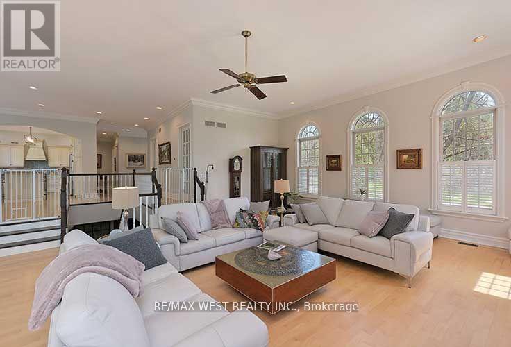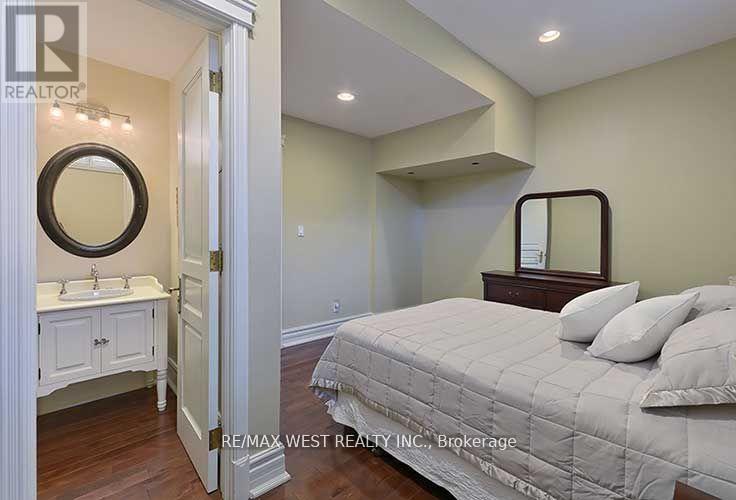 Luxurious Bungalow with 7,352 sq ft of total living space, in Islington Woods, on sought after street. Open concept bright 4+1 bedroom, 5+1 bath with several w/o's. Kitchen with Dual ovens, wine fridge, centre island, sep. breakfast area, w/o to porch. Enclosed dining room with french doors, overlooking front garden. Huge open concept family room on main floor, with sunny cathedral windows, gas fireplace and w/o to covered patio. See trees from every window! Spacious basement offers 10'3" ceilings, custom built solid wood bookcases, wood burning fireplace, and separate entrance and driveway. Private 750 sq ft apartment above garage. Multiple expansive entertaining spaces indoors & out. Fully landscaped with mature trees in an exclusive enclave of unique homes. Many walking trails, parks close by. Minutes to Hwy 427,407, & Pearson airport. (id:51158)