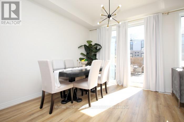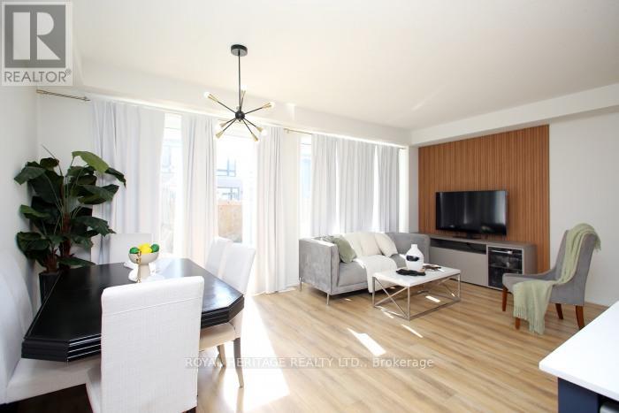 Welcome to 5 Klein Way! Situated in one of Whitby's most desirable Neighborhoods. A Bright & spacious layout with over 2200sq ft of living space and a finished lower level, 3 spacious bedrooms, 4 washrooms and a new patio and convenient second-floor laundry. Enjoy many custom upgrades! Thoughtfully designed open concept living on the main floor allows you to enjoy time with friends & family. Kitchen features White ceramic backsplash, striking navy shaker cabinets, S/S appliances, Caesarstone counters, a satin brass faucet and large Centre Island with breakfast bar. Step out to south facing, fully fenced yard. Upstairs the primary suite features a sitting area with stylish built-in cabinetry & cozy electric fireplace with dramatic feature wall, 5-piece ensuite bath & walk-in closet. Lower level features a fully finished rec room, 4-piece washroom, utility room & a storage room. Private drive with parking for 2 cars, with direct access from home to garage. Just over 2-year-old, balance of Tarion warranty. Walk to transit, parks, shops & restaurants - farm boy, LA fitness and much more...commuters will love short drive to 412, 407 and GO. Don't miss the chance to make this home yours. (id:51158)