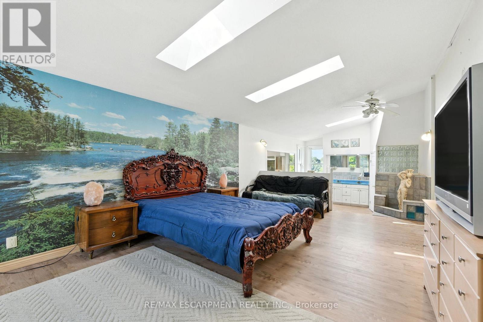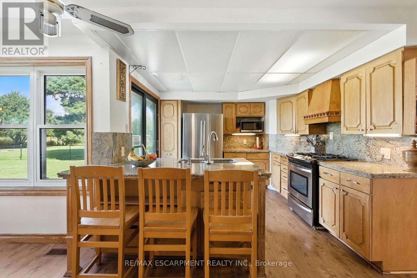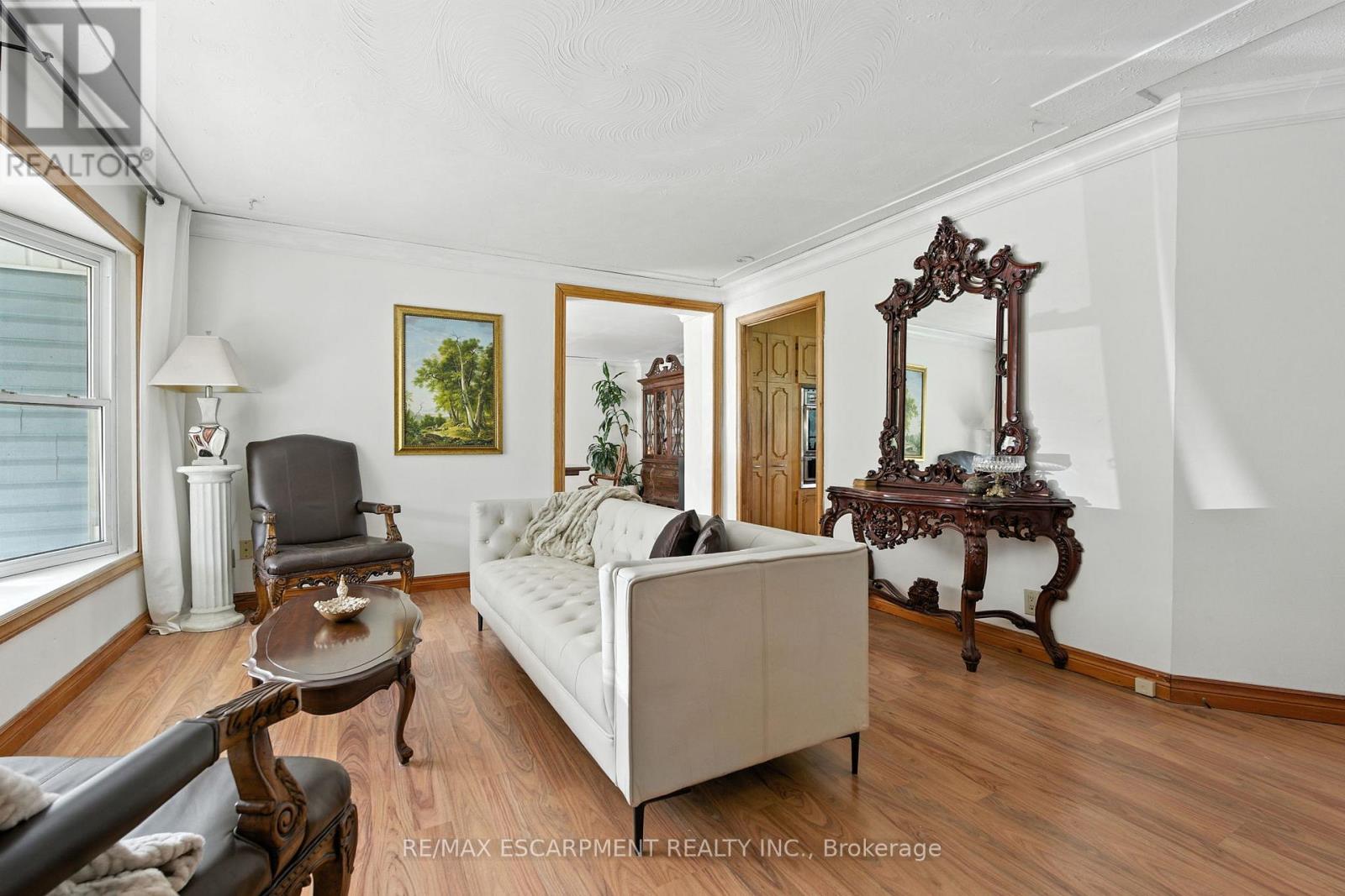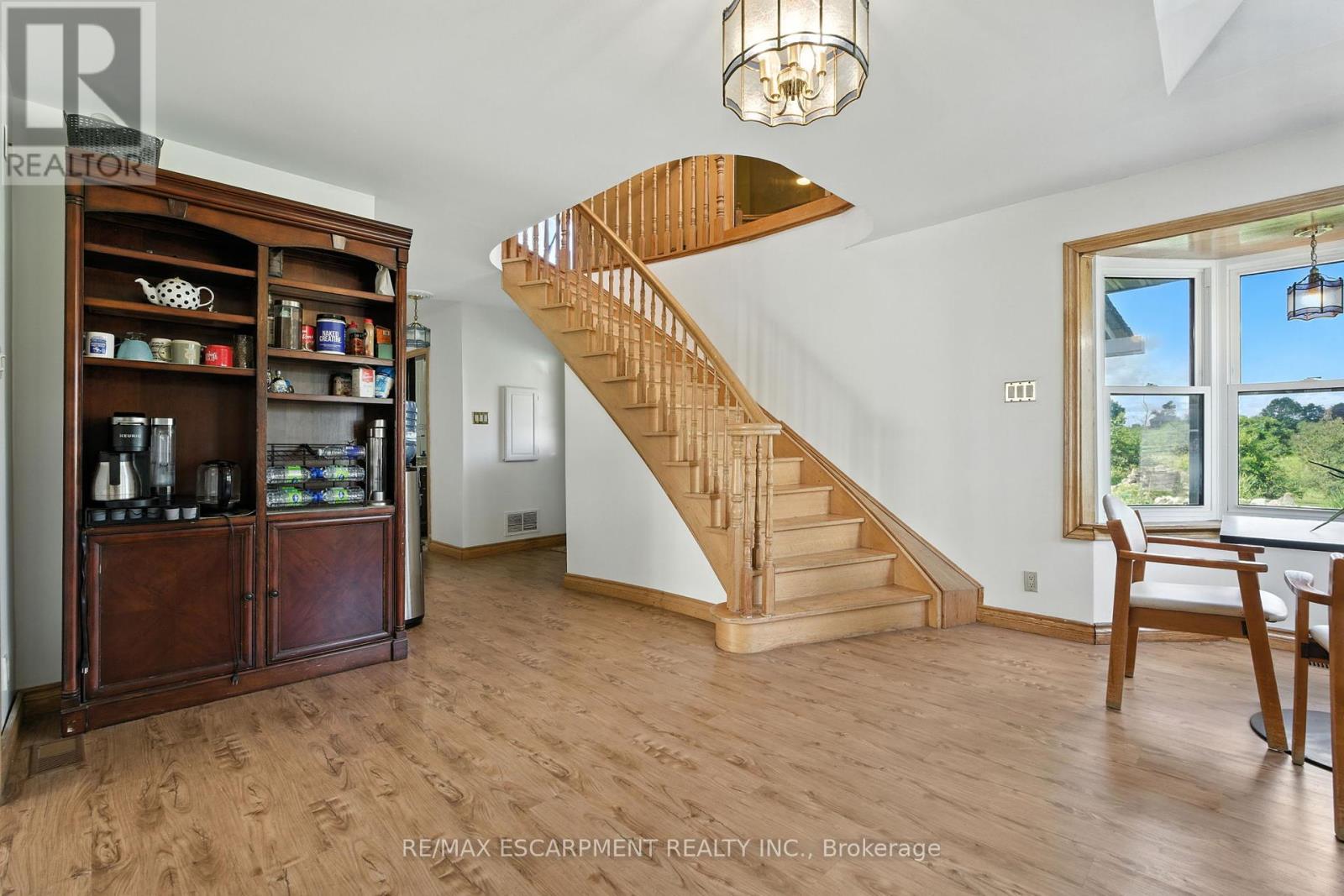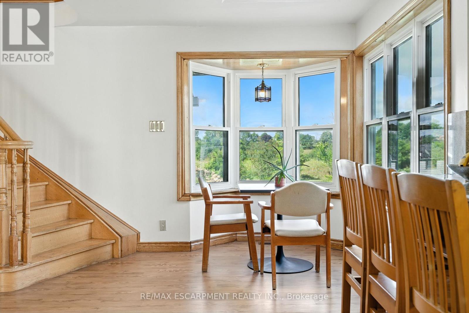 Bring your vision and creativity to this incredibly spacious and unique two-storey home on a premium 100' x 150' lot backing onto open fields! Offering over 3,500 square feet of living space, this one-of-a-kind and functional layout has amazing potential for a multi-generational setup. The main level features a large eat-in kitchen with granite countertops and gas stove, three generously sized bedrooms, main-floor laundry, and oversized living spaces throughout. The upper level is home to a massive primary suite with ensuite - perfect for a private retreat and family room with high ceilings and a wet bar. All rooms are impressively sized, offering endless renovation opportunities. Located just minutes to Dundas, Waterdown, Burlington, Hamilton, major highways and the GO Station - this is a fabulous location to invest in and transform into your dream home! RSA. (id:51158)