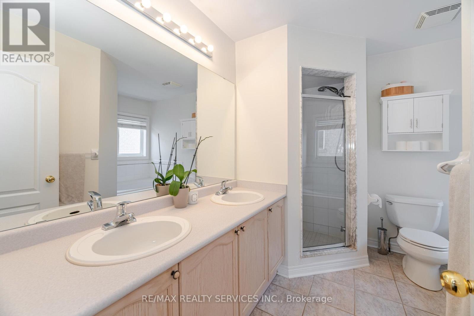 This beautifully maintained 4-bedroom, 4-bathroom home tucked away on a quiet cul-de-sac perfect for families seeking peace, privacy, and a strong sense of community. With no sidewalks and a community park just steps away, it feels like having your very own private green space. Inside, the heart of the home is the Kitchen with a Breakfast room, complete with a walkout to the backyard an ideal space for entertaining or creating your own personal oasis. The kitchen flows seamlessly into a cozy family room with a warm gas fireplace, perfect for relaxing evenings. The living and dining rooms are welcoming and functional designed for real life and everyday use, whether you're hosting guests or enjoying quiet moments. Upstairs, you'll find a spacious primary bedroom featuring a 4-piece ensuite and a walk-in closet. The additional three bedrooms are generously sized with large closets and abundant natural light, making them perfect for kids, guests, or a home office. There are two full washrooms upstairs, a powder room on the main floor, and a powder room with a rough-in shower in the basement. The 2 garage has an entrance to the house via the main floor laundry/mud room. 4 cars can be parked in the driveway making it a total 6 cars can park on the property. This house has been lovely maintained; newer front windows and Door (2023), Zebra Shades (2023), Owned Hot Water Tank (2022), Partially Re-Finished Basement (2021), 2nd Floor Hardwood and Carpets (2020), Refinished stairs (2020), 2nd Floor Pot Lights (2020), Furnace (2019), A/C (2020, Garage Doors (2017) and Roof (2014).This home offers the perfect blend of comfort, space, and community. Dont miss your chance to live in a location where convenience meets tranquility. (id:51158)