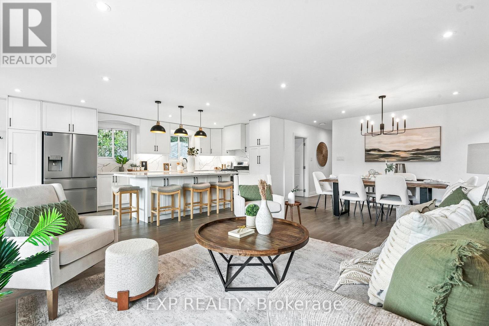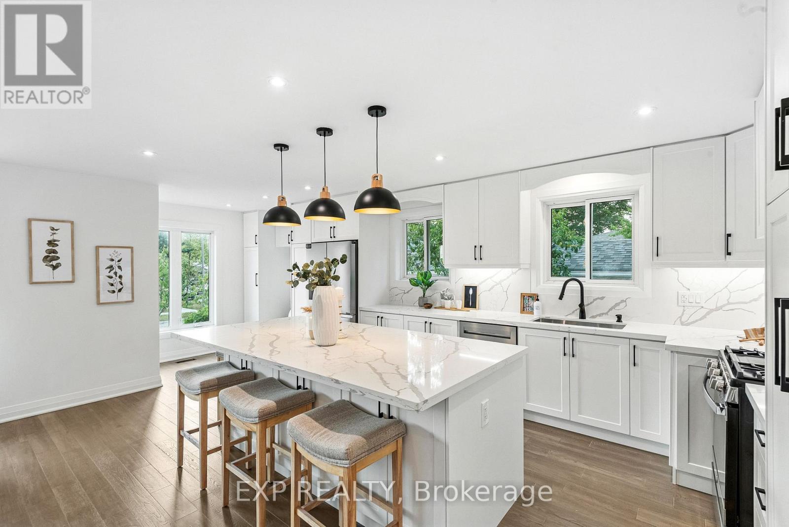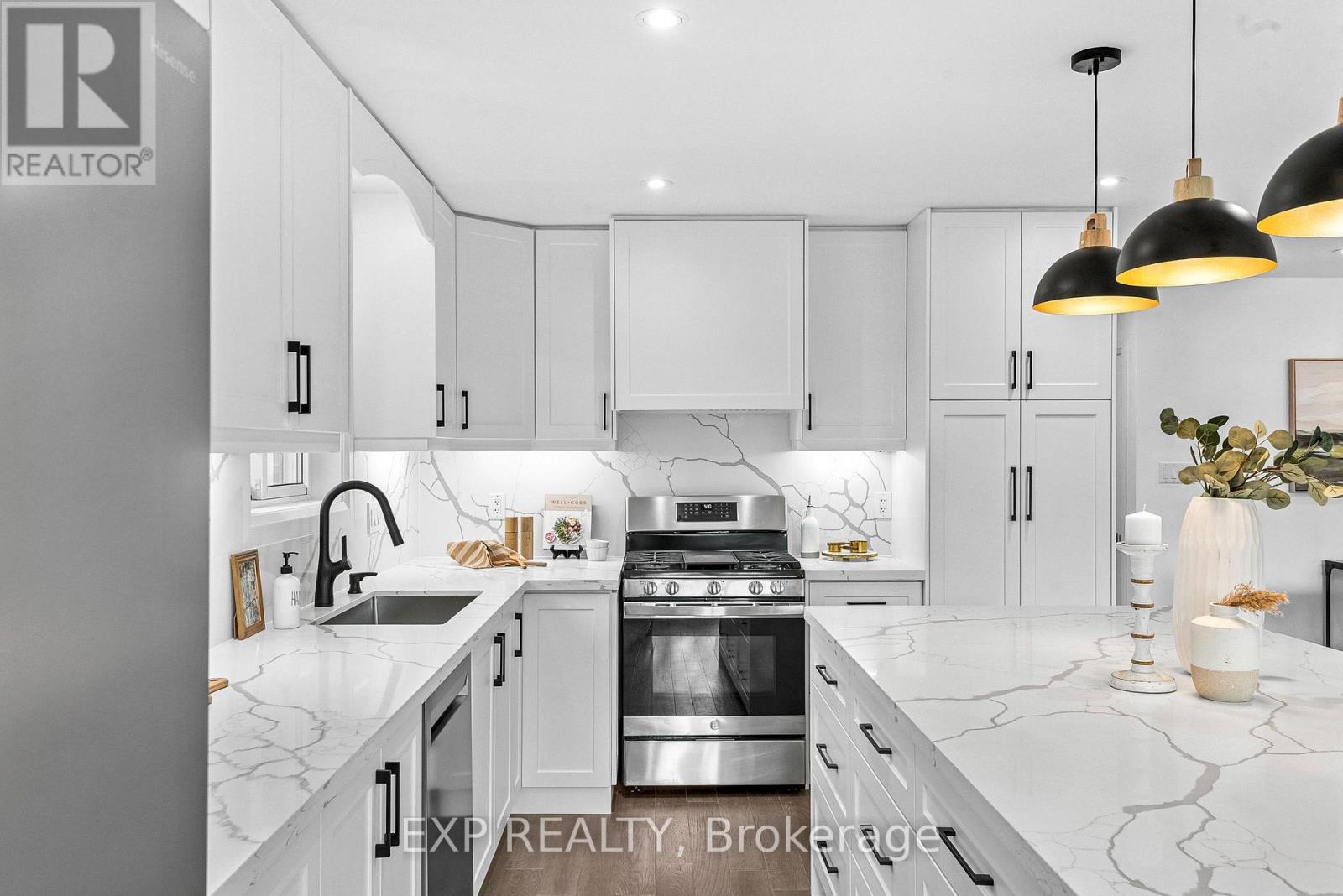 Welcome to this beautifully renovated, move-in-ready 2-unit bungalow in Scarborough, ideally located in a quiet, mature neighbourhood with unmatched convenience. From the outside, the home shines with a brand-new driveway, deck, soffits, eavestroughs, and a concrete walkway. Its location offers excellent accessibility just minutes to shopping, dining, downtown Toronto, the 401, Scarborough Town Centre, hospitals, public transit, and highly rated schools. Inside, the main floor boasts a stunning new kitchen with quartz countertops and backsplash, sleek cabinetry, new flooring, lighting, fridge, dishwasher, and a gas range stove (2022). The open-concept living and dining areas create a welcoming space to relax or entertain, while the primary bedroom offers a peaceful retreat and two additional bedrooms provide flexibility for family, guests, or a home office. The fully rebuilt 5-piece bathroom, redesigned from the studs up, features a double vanity, new tub, toilet, faucets, and modern fixtures for a spa-like experience. The fully finished basement with 2 bedrooms, a kitchen and living room adds exceptional value with its own private entrance, separate laundry, and a self-sufficient layout. Complete with a bright kitchen, spacious living room, two bedrooms, and a fully renovated 5-piece bathroom with tub, this unit is perfect for extended family, guests, or generating rental income. With thoughtful updates throughout, independent utilities, and a functional design, this property offers both lifestyle and investment potential in one incredible package. The home is being sold as a single-family property. (id:51158)