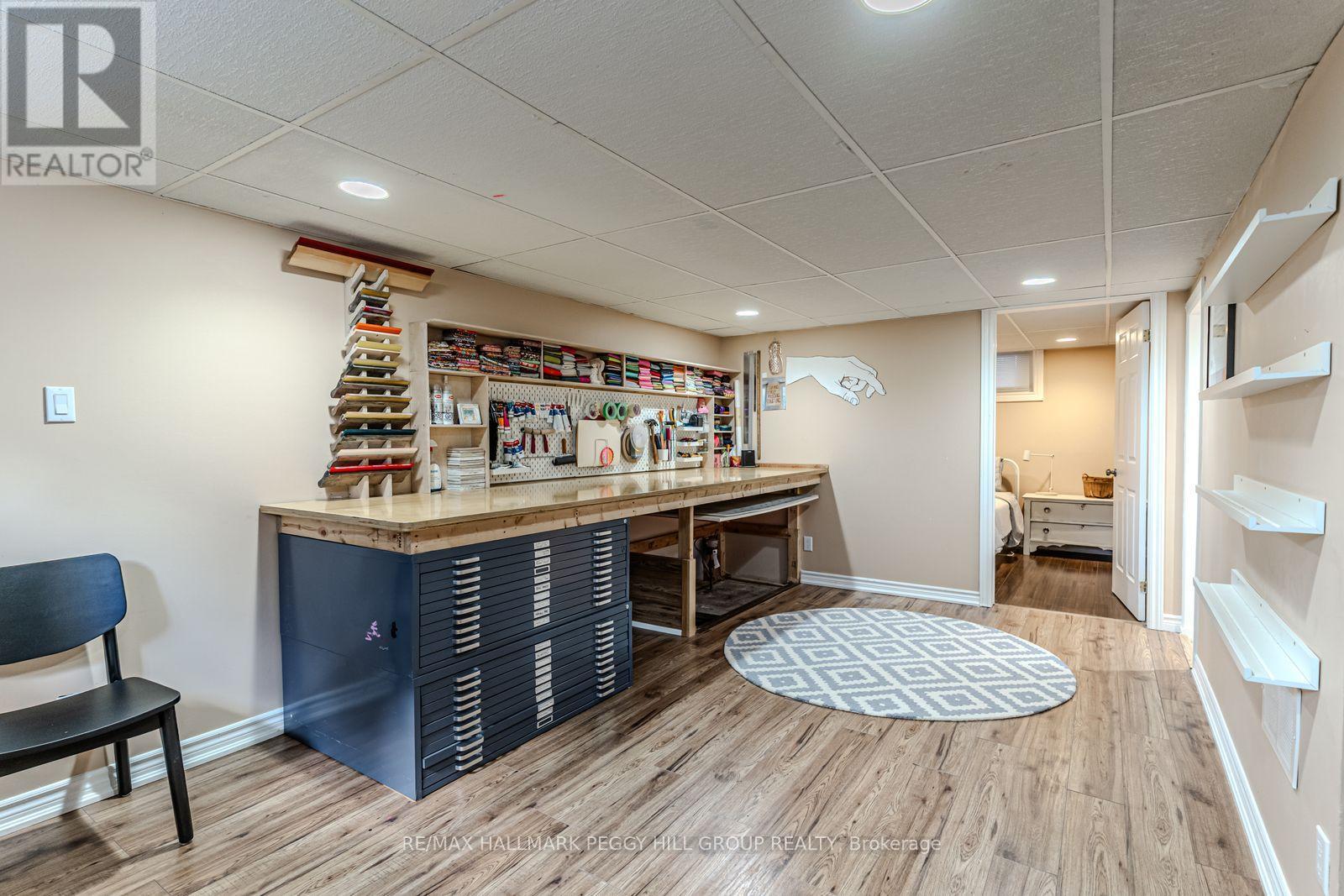 CHARACTER-FILLED EAST END BUNGALOW WITH MODERN UPDATES, A DETACHED GARAGE & BACKING ONTO A SCHOOL! This charming East End bungalow is perfectly situated less than five minutes from downtown shops, dining, Johnson's Beach, the MacLaren Art Centre, and the Barrie Public Library, with parks and recreation close by. Families will love being able to walk to both Oakley Park Public School and Barrie North Collegiate, creating an easy daily routine. The exterior offers curb appeal with vinyl siding in a board and batten style, a welcoming porch, and a tidy lawn, while the fully fenced backyard extends your living space with a large deck, soffit lighting, gas BBQ hookup, and peaceful views backing onto Oakley Park P.S. Natural light fills the living room, complemented by pot lights, crown moulding, and a bay window that adds warmth and charm. The updated kitchen features two-tone cabinetry with plenty of storage, granite counters that carry through to the backsplash, stainless steel appliances, undermount lighting, and patterned flooring. Two comfortable bedrooms are located on the main level, served by an updated bathroom with a modern tile surround, a built-in shower niche, and heated floors. The rear door provides easy access to the basement area, which offers future potential for an in-law suite and currently hosts a third bedroom, a spacious rec room, a full bathroom, and generous storage. A detached 24' x 12' garage is ideal for parking, hobbies, or extra storage, and the driveway fits four vehicles with ease. Move-in ready and full of character, this East End gem is a wonderful place to call home! (id:51158)