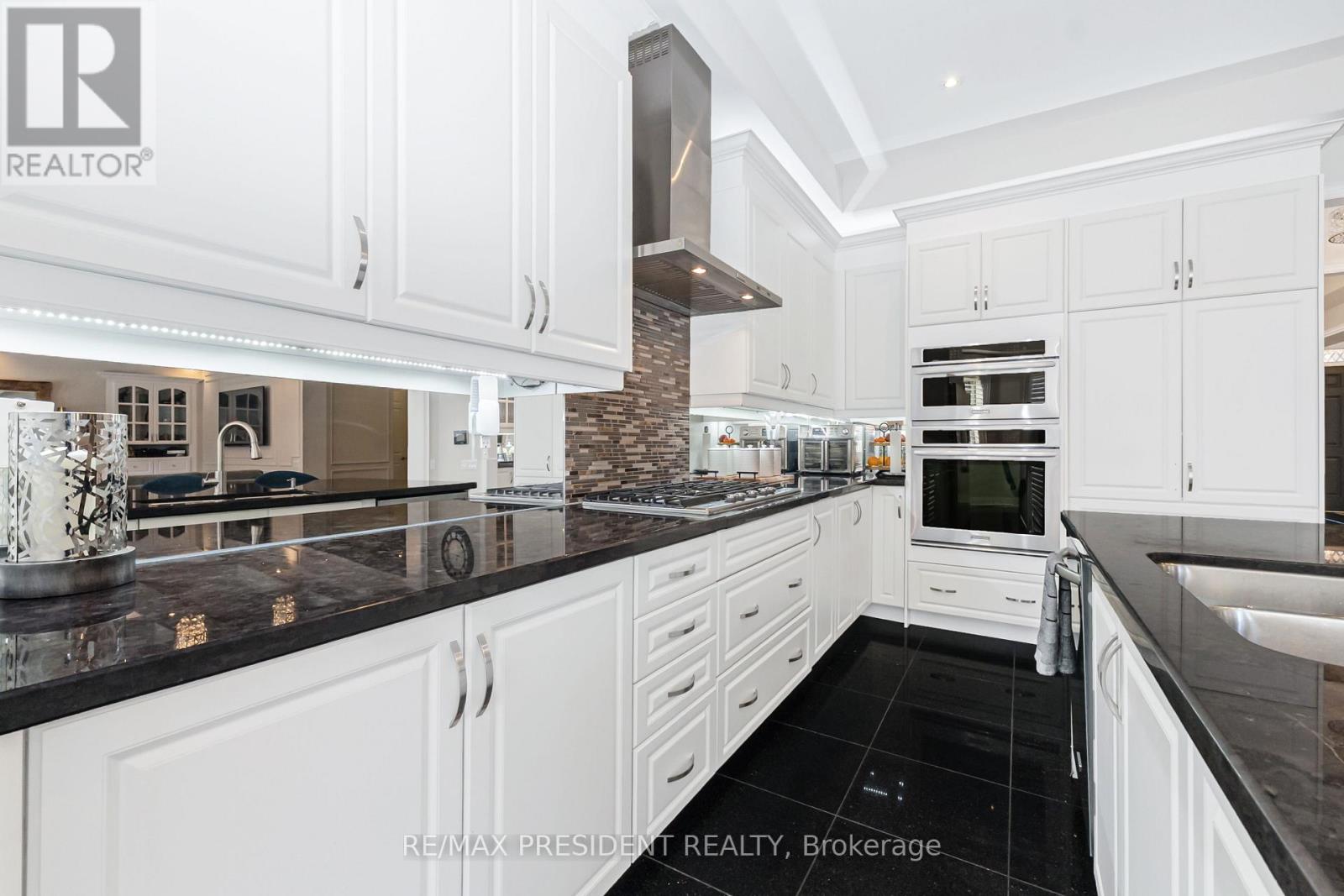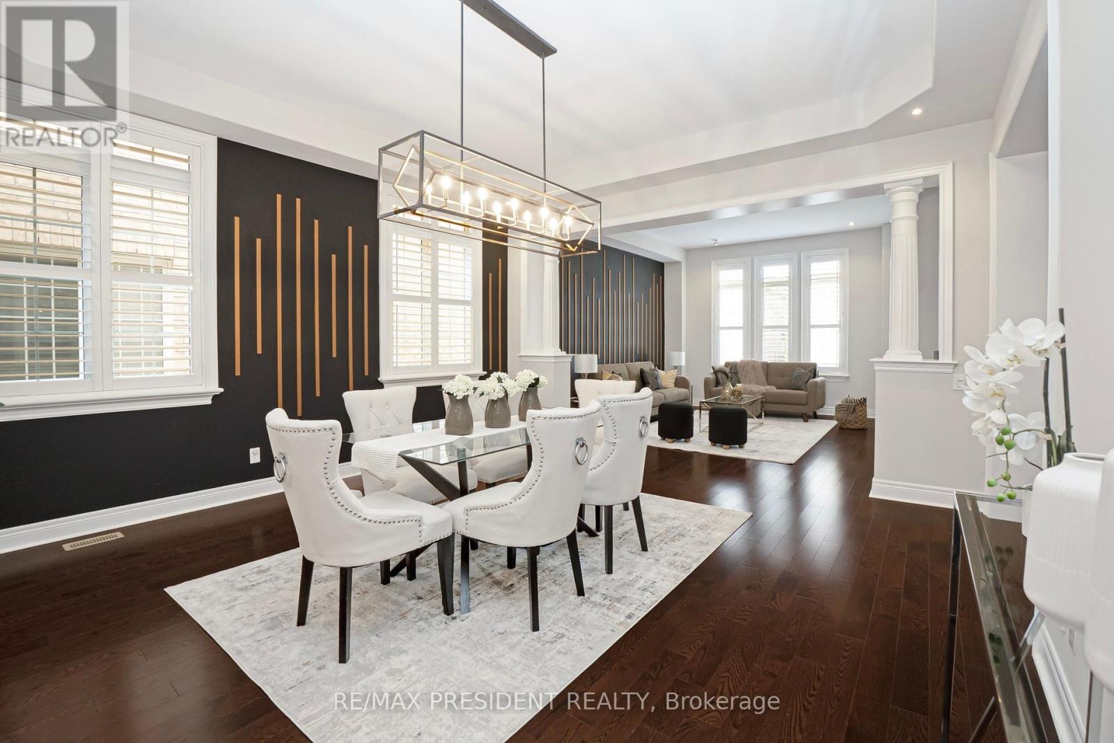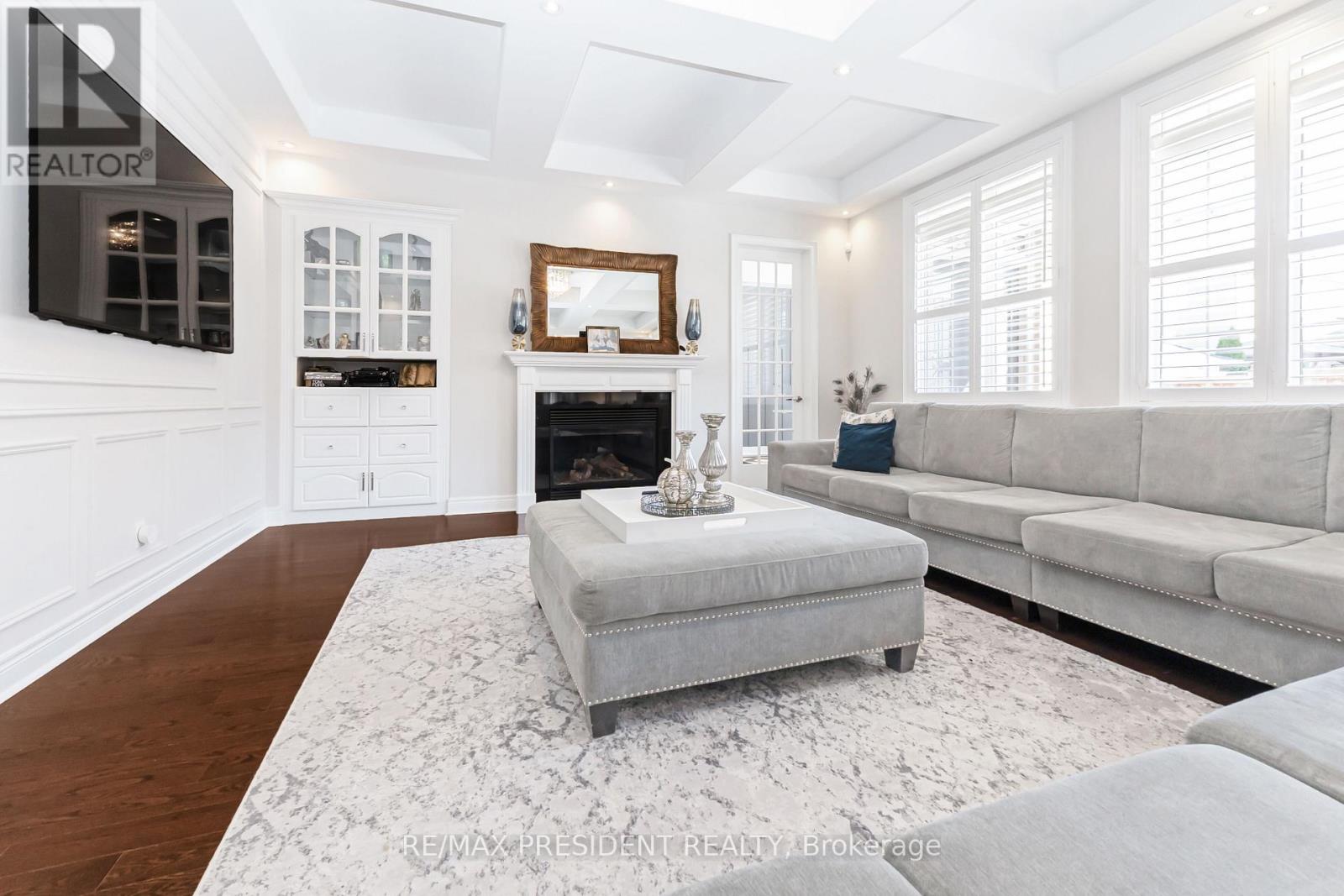 Honeysuckle model, boasting over 5500 sq. ft. of luxury living. Step into elegance with 10 ft. smooth ceilings on the main floor, adorned with granite kitchen countertops and built-in appliances. The upgraded pantry & servery provide convenience, 2 double door walkouts to the covered patio from Kitchen & Den invites outdoor enjoyment. Combined dining & living, family room offers a cozy ambiance with a waffle ceiling & gas fireplace. A full in-law suite on the main floor adds versatility. Hardwood graces the main floor and upper hallway, while ceramic tiles adorn high-traffic areas. Upstairs, 9 ft. ceilings and 8 ft. doors enhance the grandeur. The master bedroom boasts spacious his/her walk-in closets and a spa ensuite, complete with a walkout to covered balcony. Two bedrooms feature his/her closets and full ensuites, while two additional bedrooms share a combined ensuite. This home is meticulously updated with modern lighting and pot lights. Over $250,000 in upgrades. (id:51158)