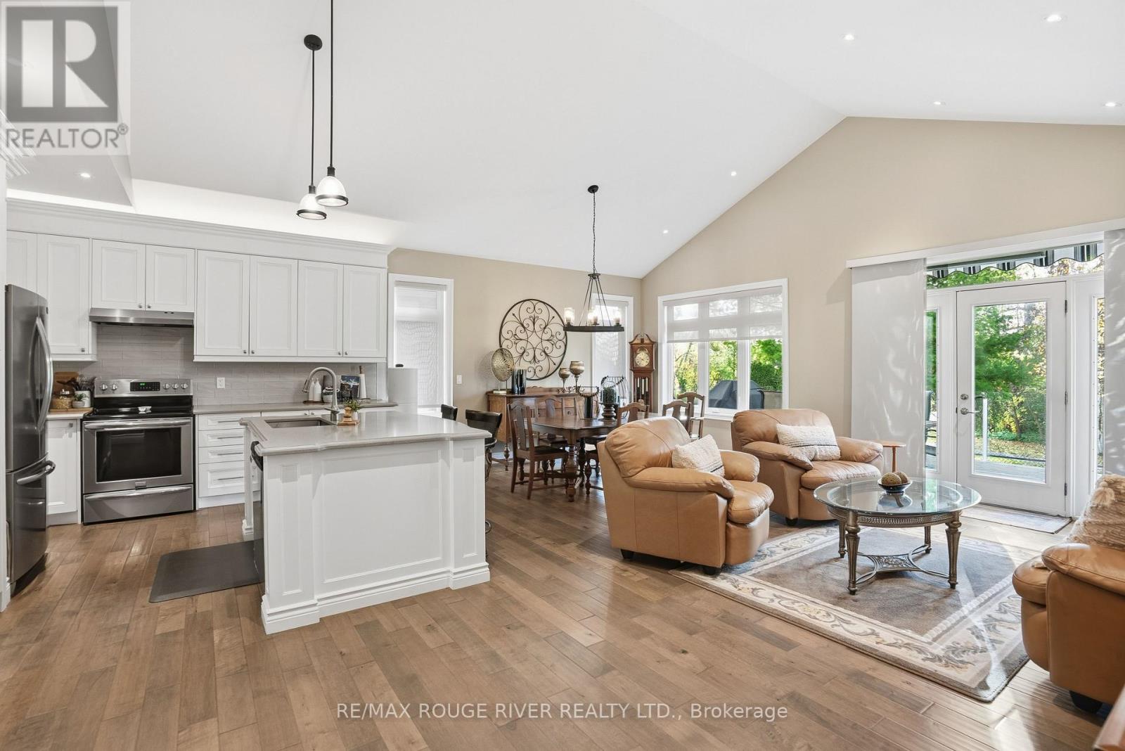 Welcome to 17 Lockside Drive, where Luxury Meets Lifestyle. Discover this stunning 2+2 bedroom, 3-bath raised bungalow nestled in one of Peterborough's most sought-after and peaceful neighbourhoods. This residence blends timeless elegance with modern comfort, all while offering picturesque views of the Otonabee River. Step inside and be greeted by soaring vaulted ceilings and an abundance of natural light that highlight the refined finishes throughout. The gourmet kitchen is a chef's delight, featuring a center island, quartz countertops, premium stainless-steel appliances, and plenty of storage, ideal for everything from relaxed family meals to elegant entertaining. The open-concept living and dining areas, illuminated by thoughtfully placed pot lights, create a warm, inviting atmosphere, perfect for gatherings or quiet evenings at home. Enjoy the convenience of garage access and a main floor laundry room, thoughtfully designed for everyday ease. The bathrooms feature upgraded counters, adding a touch of luxury to each space. Downstairs, the bright lower level impresses with high ceilings, lots of pot lights, a cozy stone fireplace, and two spacious bedrooms, ideal for guests, family, or a home office or studio. Step outside to your private backyard oasis with direct access to the riverside trail and water, perfect for kayaking, morning walks, or simply enjoying the serene natural setting. A gas hook-up for your BBQ on the large deck and easy door access from the garage make outdoor entertaining effortless and enjoyable. 17 Lockside Drive isn't just a home - it's a lifestyle. Every detail has been thoughtfully designed to offer beauty, comfort, and enduring appeal. (id:51158)