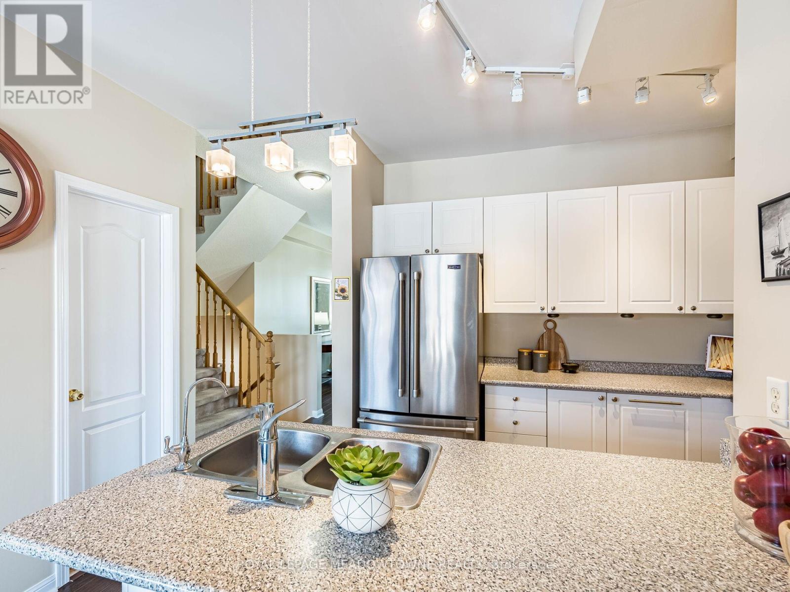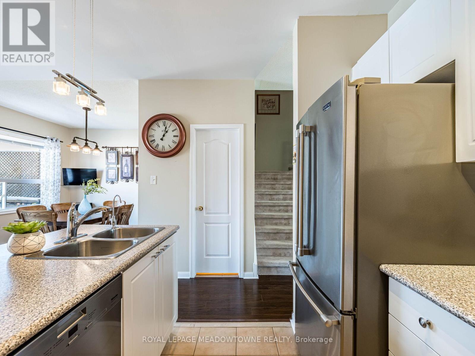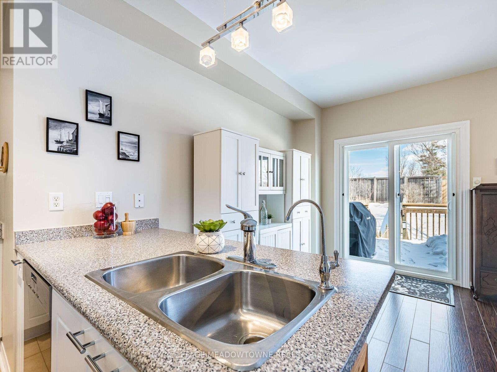 Welcome to this beautifully maintained 3-bedroom townhome in the heart of Georgetown a rare opportunity featuring a 2-car garage, an exceptional find in townhome living. Thoughtfully upgraded and meticulously cared for, this home blends comfort, functionality, and modern convenience.Step inside to soaring 9-ft ceilings, durable laminate flooring, and a bright, open-concept main level designed for both everyday living and effortless entertaining. The kitchen truly stands out with soft-close cabinetry, smart storage solutions, stainless steel appliances, a premium JennAir induction/convection oven, Miele dishwasher, and a gas line ready for your BBQ on the walkout deck. New patio doors and high-efficiency windows including several Magic Windows with triple-pane glass and blackout shades fill the home with natural light while creating a quiet, energy-efficient retreat.Upstairs, you'll find 3 spacious bedrooms. The primary suite offers a large closet and private 4-piece ensuite complete with a relaxing soaker tub. A semi-ensuite main bath with a tiled shower serves the additional bedrooms, providing comfort and convenience for family or guests.The versatile lower level features large windows, a finished storage room, laundry/utility area, and direct access to both the backyard and garage perfect for organized, functional living. Additional highlights include a brand-new A/C, furnace (2022), owned tankless water heater (no rental fees), Culligan water purification system, water softener, central vacuum, Ecobee thermostat, 220V garage outlet, belt-drive opener, and a fully fenced backyard.Located just minutes from vibrant downtown shops, restaurants, parks, trails, schools, and the GO station, this home offers the perfect balance of small-town charm and commuter convenience.With rare garage space, extensive upgrades, and an unbeatable location, this is a standout opportunity you won't want to miss, book your private showing today and experience it for yourself. (id:51158)