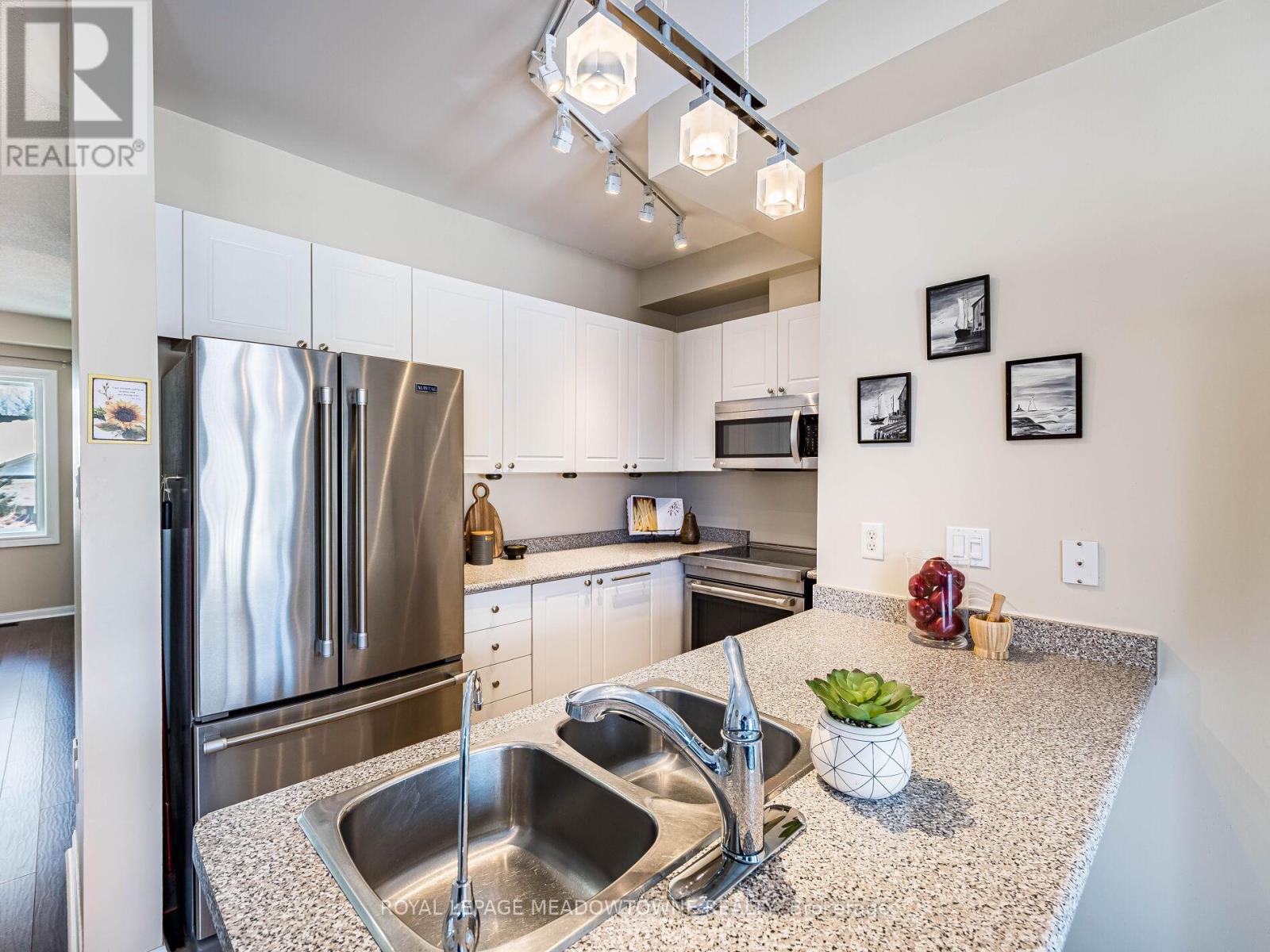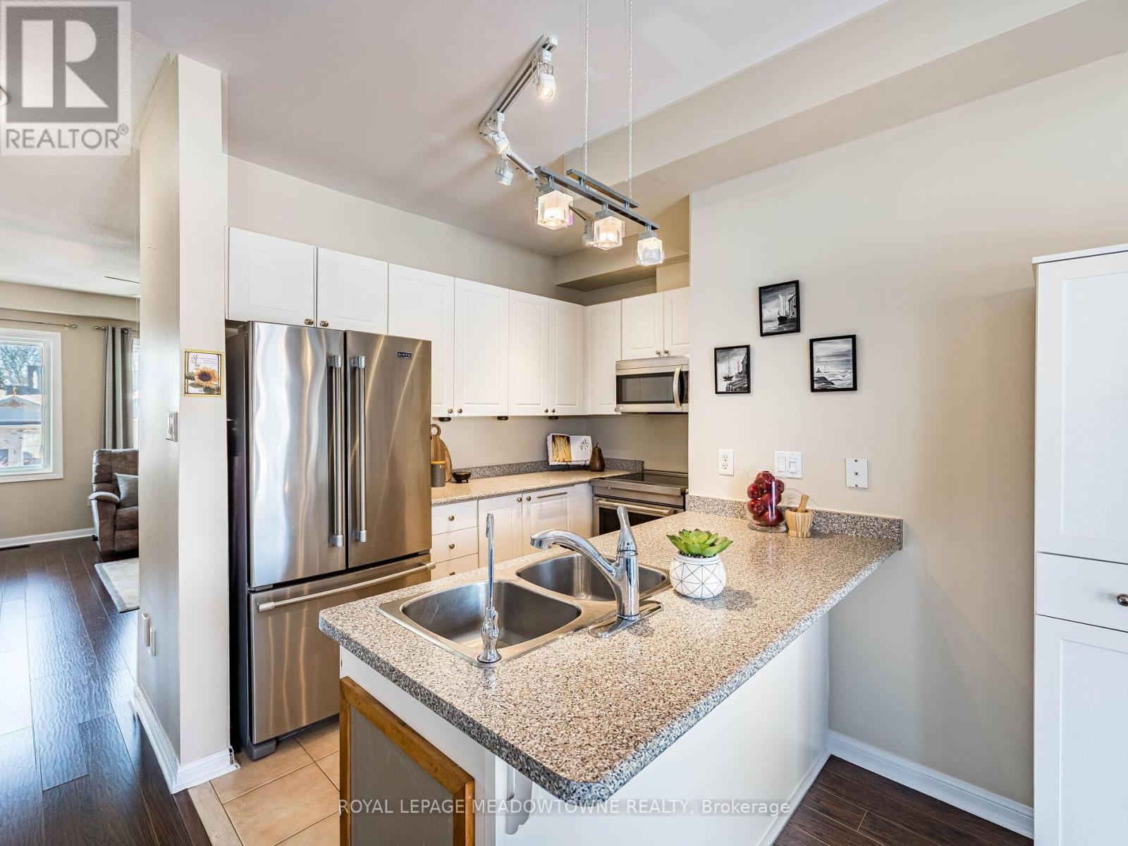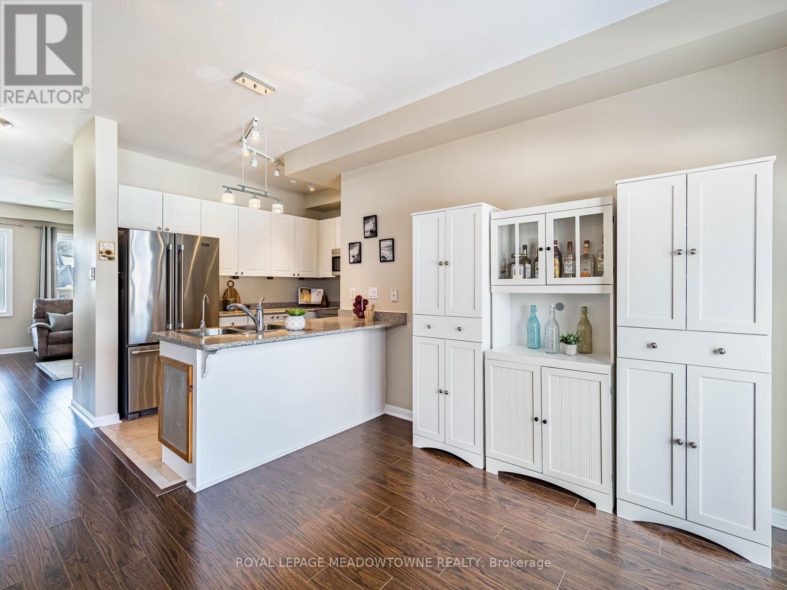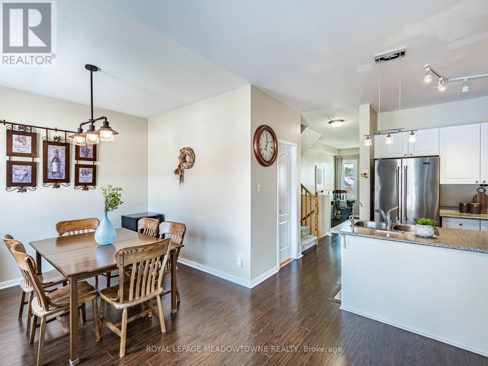 Welcome to this beautifully maintained 3-bedroom townhome in the heart of Georgetown a rare opportunity featuring a 2-car garage, an exceptional find in townhome living. Thoughtfully upgraded and meticulously cared for, this home blends comfort, functionality, and modern convenience.Step inside to soaring 9-ft ceilings, durable laminate flooring, and a bright, open-concept main level designed for both everyday living and effortless entertaining. The kitchen truly stands out with soft-close cabinetry, smart storage solutions, stainless steel appliances, a premium JennAir induction/convection oven, Miele dishwasher, and a gas line ready for your BBQ on the walkout deck. New patio doors and high-efficiency windows including several Magic Windows with triple-pane glass and blackout shades fill the home with natural light while creating a quiet, energy-efficient retreat.Upstairs, you'll find 3 spacious bedrooms. The primary suite offers a large closet and private 4-piece ensuite complete with a relaxing soaker tub. A semi-ensuite main bath with a tiled shower serves the additional bedrooms, providing comfort and convenience for family or guests.The versatile lower level features large windows, a finished storage room, laundry/utility area, and direct access to both the backyard and garage perfect for organized, functional living. Additional highlights include a brand-new A/C, furnace (2022), owned tankless water heater (no rental fees), Culligan water purification system, water softener, central vacuum, Ecobee thermostat, 220V garage outlet, belt-drive opener, and a fully fenced backyard.Located just minutes from vibrant downtown shops, restaurants, parks, trails, schools, and the GO station, this home offers the perfect balance of small-town charm and commuter convenience.With rare garage space, extensive upgrades, and an unbeatable location, this is a standout opportunity you won't want to miss, book your private showing today and experience it for yourself. (id:51158)