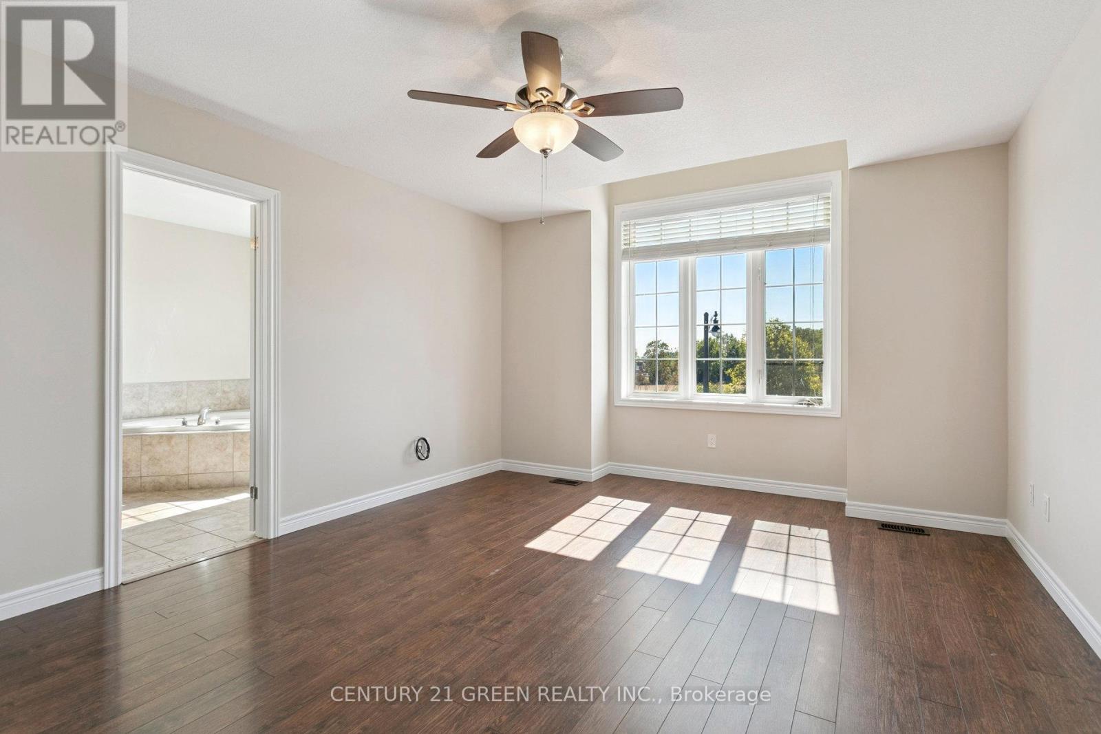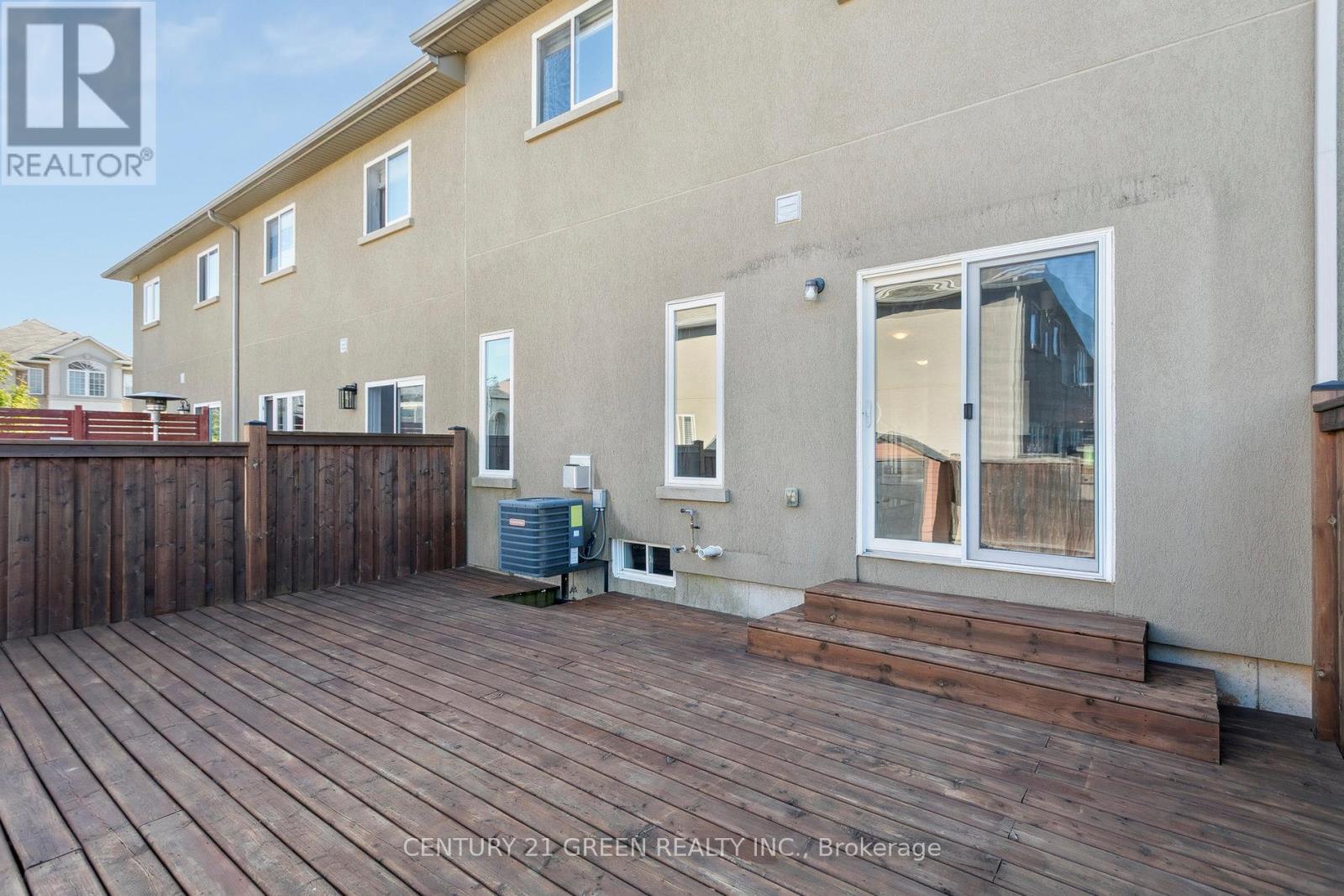 Welcome to this beautifully maintained freehold townhouse located in the sought-after Waterdown West community. Nestled in a quiet, family-friendly area with no front neighbors, this home offers the perfect balance of peaceful living and urban convenience. Just minutes from Hwy 403,Hwy 6, GO Station, grocery stores, shopping centres, restaurants, and community amenities, it also boasts walking-distance access to both elementary and secondary schools, nearby recreational facilities including the YMCA and a senior activity centre, plus ample parking available on the front street. This spacious home features 3 generously sized bedrooms, a versatile den ideal for a study or home office, and 2.5 bathrooms. The primary bedroom includes a 4-piece ensuite and walk-in closet, while the second floor offers an additional 3-piecebathroom. The modern kitchen is equipped with stainless steel appliances and granite countertops, opening to a cozy living room with a gas fireplace. The dining area walks out to a fully fenced backyard with a large deck, perfect for entertaining or relaxing outdoors. Additional highlights include a 1.5 car garage with inside entry and remote access, and a spacious unfinished basement ready to be customized to suit your needs. (id:51158)