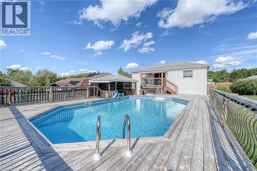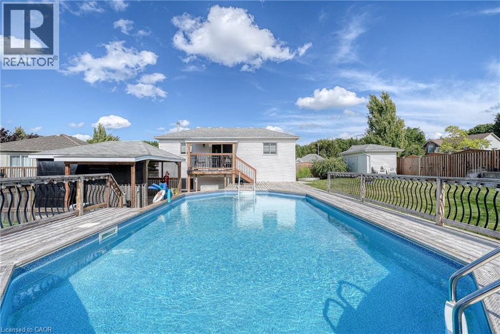 For the first time ever on the market, this one-owner raised bungalow is being offered to the next fortunate buyers who will call it home. Tucked onto a quiet court in Woodstock, it is surrounded by a welcoming community where children still ride bikes on the street, neighbours wave as they pass by, and there is an undeniable sense of belonging. The curb appeal begins with manicured landscaping, an inviting front porch that is perfect for morning coffee, an attached garage, and a property that has been cared for with pride over the years. Step inside and you are greeted by a bright and spacious living room, highlighted by oversized windows that allow natural light to pour in throughout the day. The adjoining dining area offers plenty of room and flows into a beautifully updated kitchen with quartz countertops, sleek cabinetry, and a layout that makes both cooking and entertaining effortless. The main level also features a comfortable bedroom and a convenient powder room, offering flexibility for guests, family, or even a home office. The lower level is partially finished and designed for versatility, providing 2 additional bedrooms, a full 4-piece bath, generous storage, laundry space, and a large primary suite that could also serve as a second living area. The design allows for privacy while maintaining connection to the rest of the home. Outside is where the property becomes unforgettable. The expansive lot provides endless possibilities, with space for gardening, entertaining, and family activities. A sparkling on-ground pool serves as the centerpiece, complemented by a gazebo area that can be enclosed to create a cozy retreat even in the colder months. Imagine summer afternoons spent poolside, winter evenings enclosed in the gazebo, fresh vegetables from your own garden, and the joy of outdoor living year-round. With its thoughtful layout, abundant space, and community setting, this property is more than a house, it is the lifestyle you have been searching for. (id:51158)