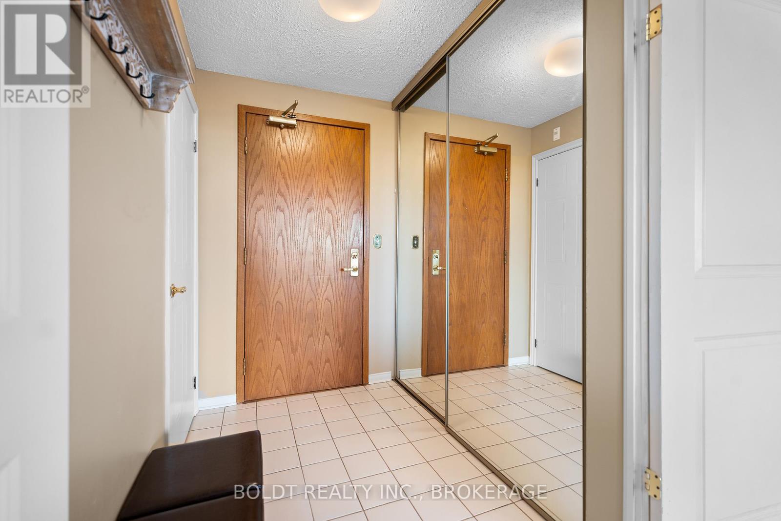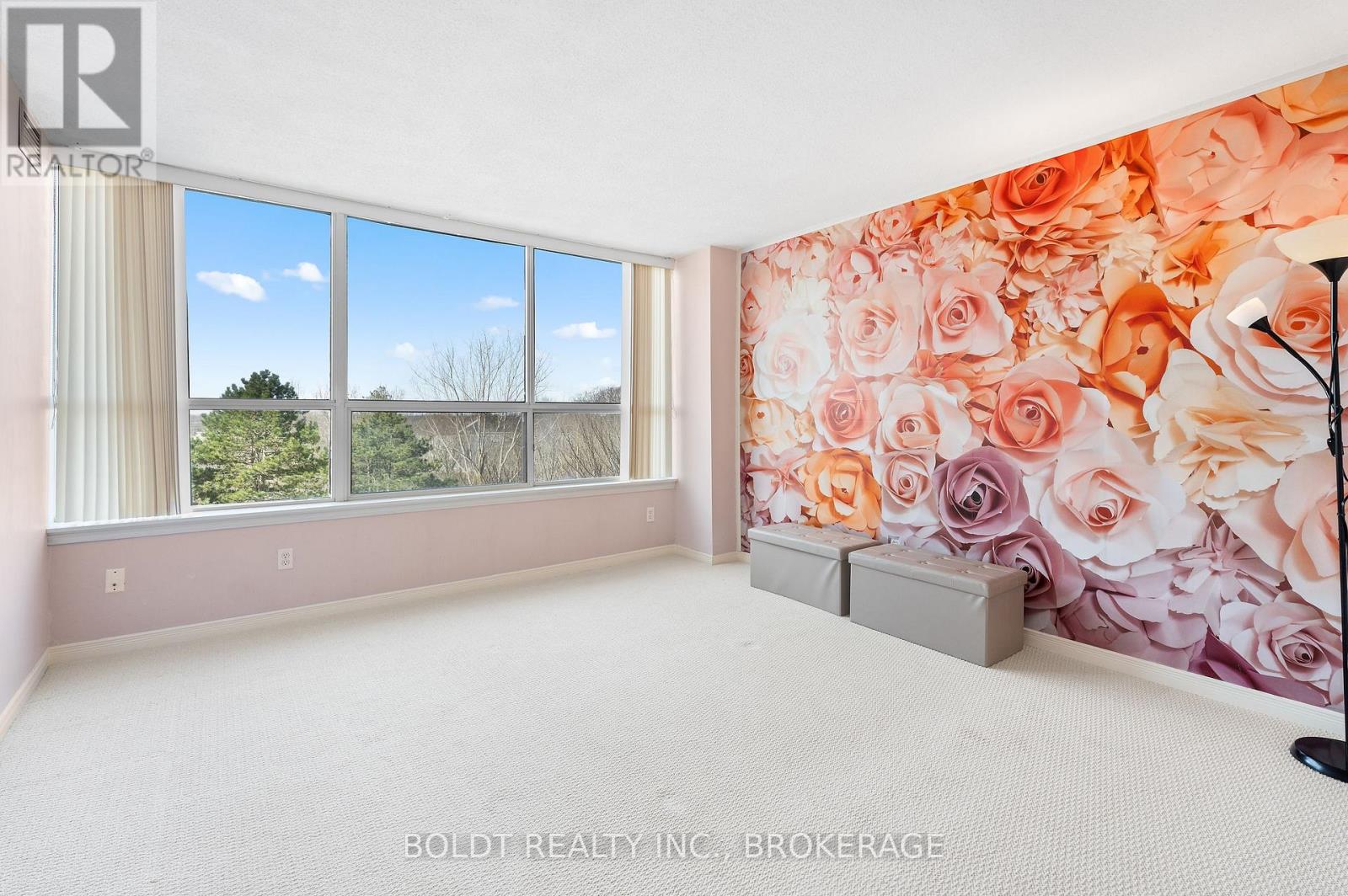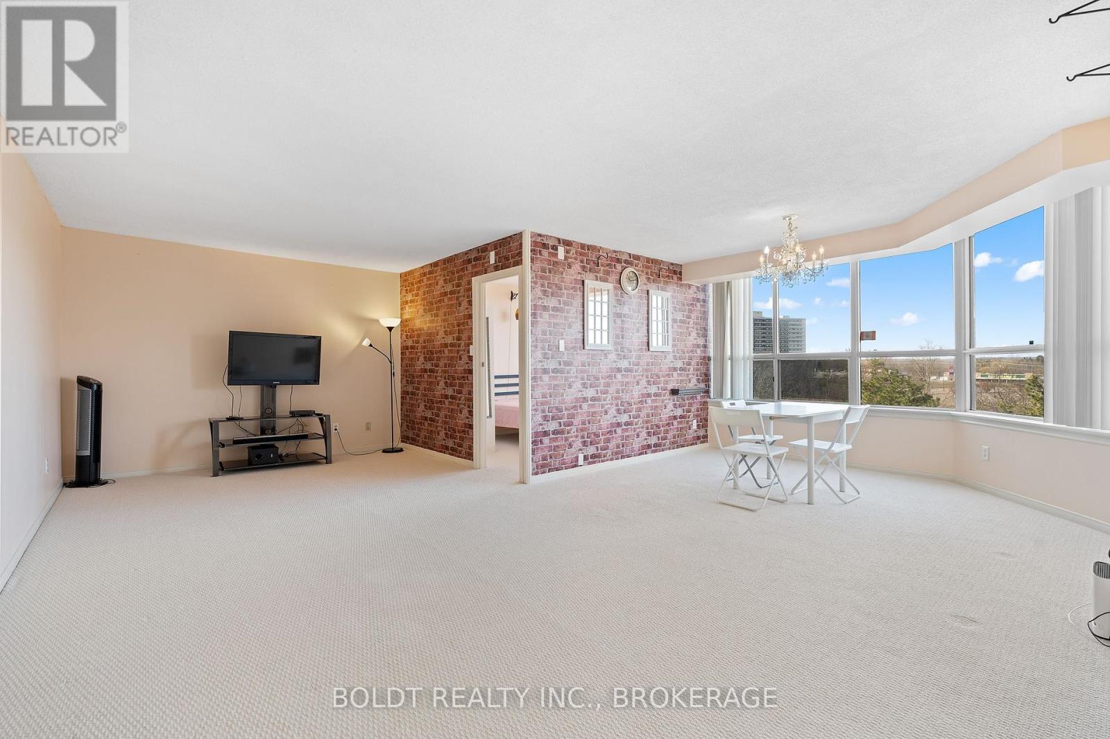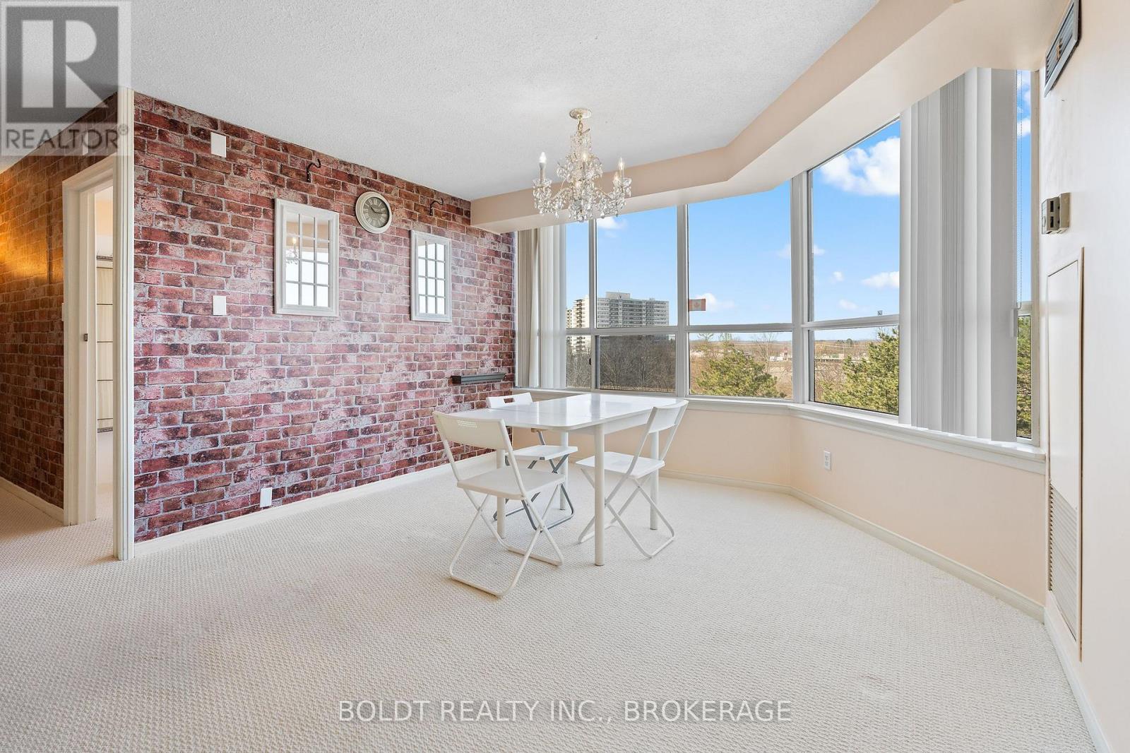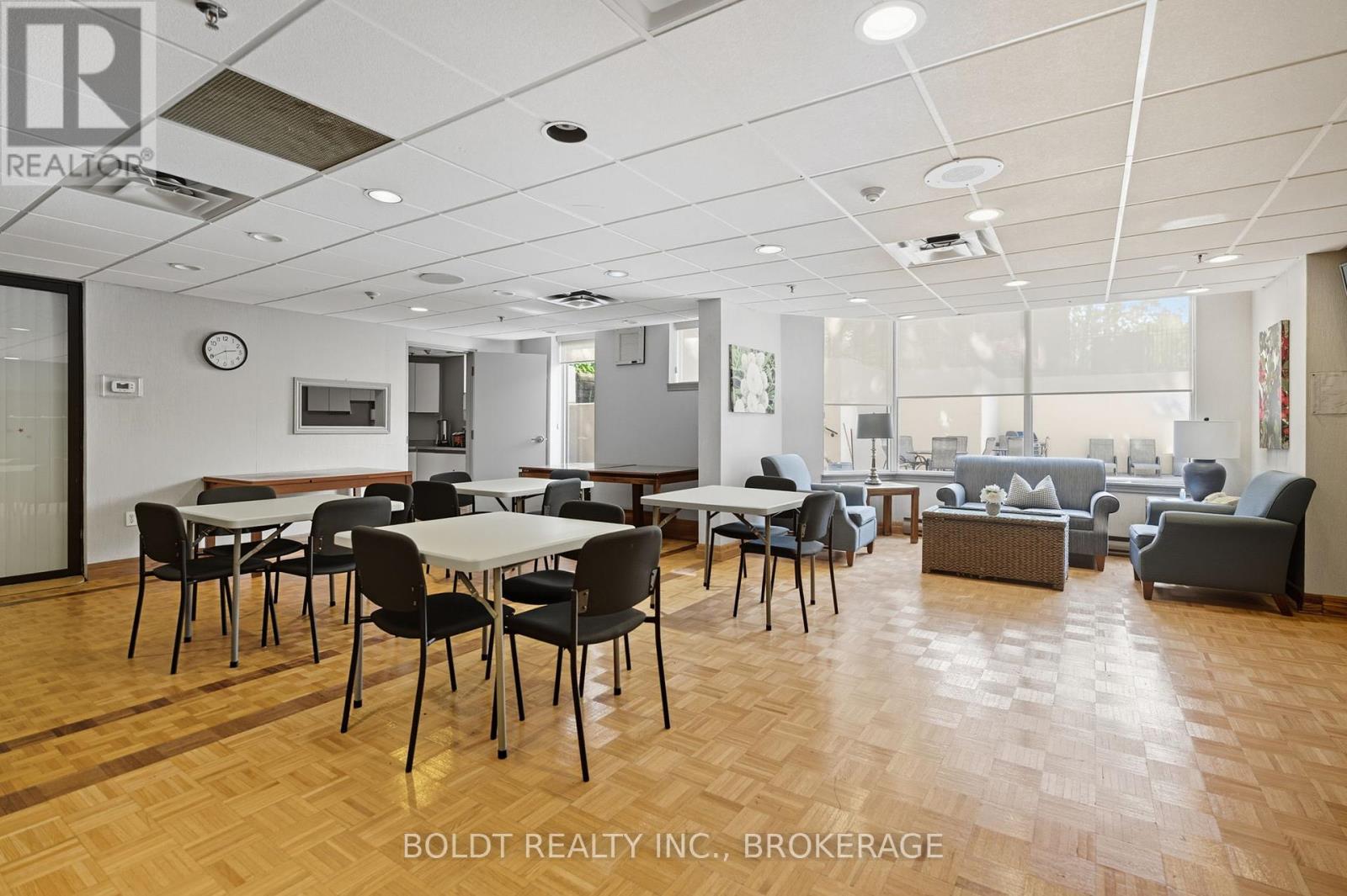 Nestled at prestigious Southgate Condominium, amongst the Burgoyne Woods is a fabulous opportunity to enjoy this 1125 sq ft, 2 bedroom, 1.5 bathroom. It's the only suite like it in the complex. Walking in you will appreciate the open space and brightness of all of the principle rooms. Off the entrance foyer is a large separate insuite laundry and storage room. The combined living and dining room has been opened to the kitchen making it easy to be part of the conversation when entertaining. Directly off this space is the second bedroom that could also be utilized as a quiet TV room or private office. You will pass the second powder room on your way down the hall to the large primary bedroom with a full ensuite bath, updated walk-in shower and a spacious walk-in closet. All new carpet installed in all principle rooms within the last year. Take advantage of the spa-like recreation facilities with indoor pool, whirlpool, sauna, exercise/party/craft/games rooms, library and workshop. Close to shopping, downtown, sports/event arena, Performing Arts Centre and major highways. Indoor parking, separate storage locker. PET FREE building. (id:51158)