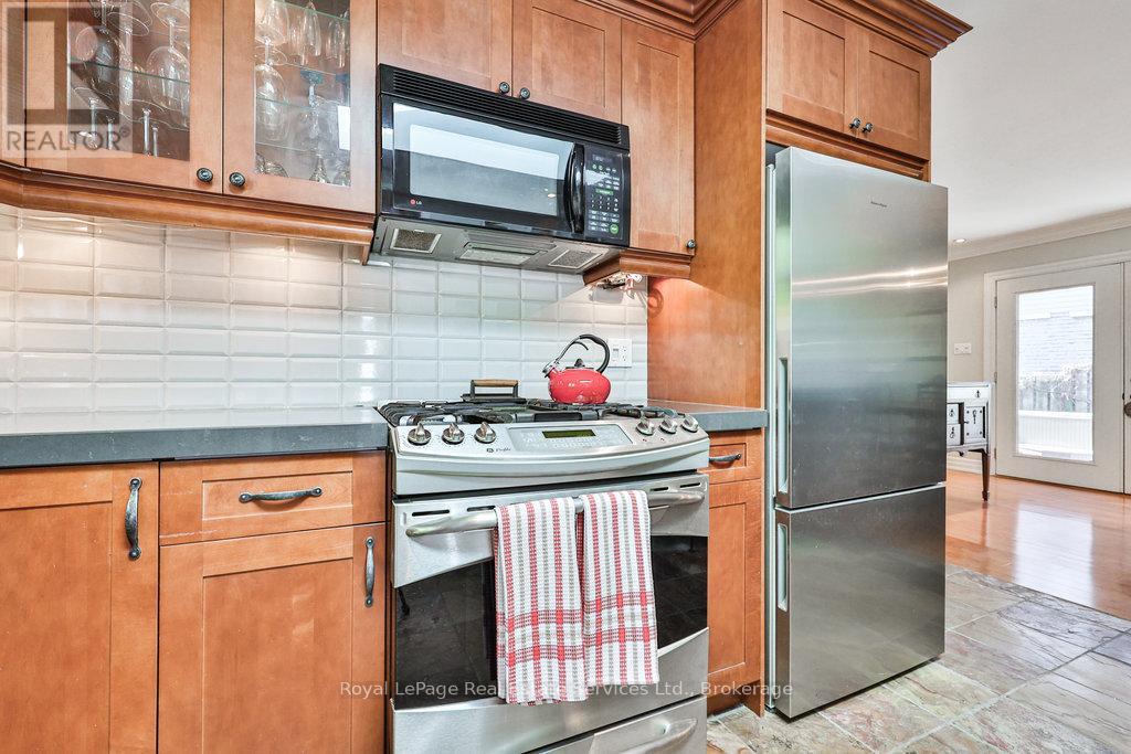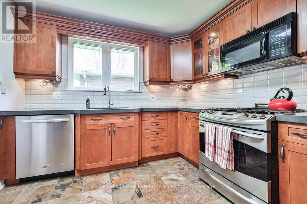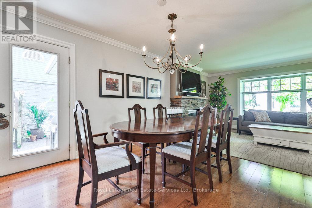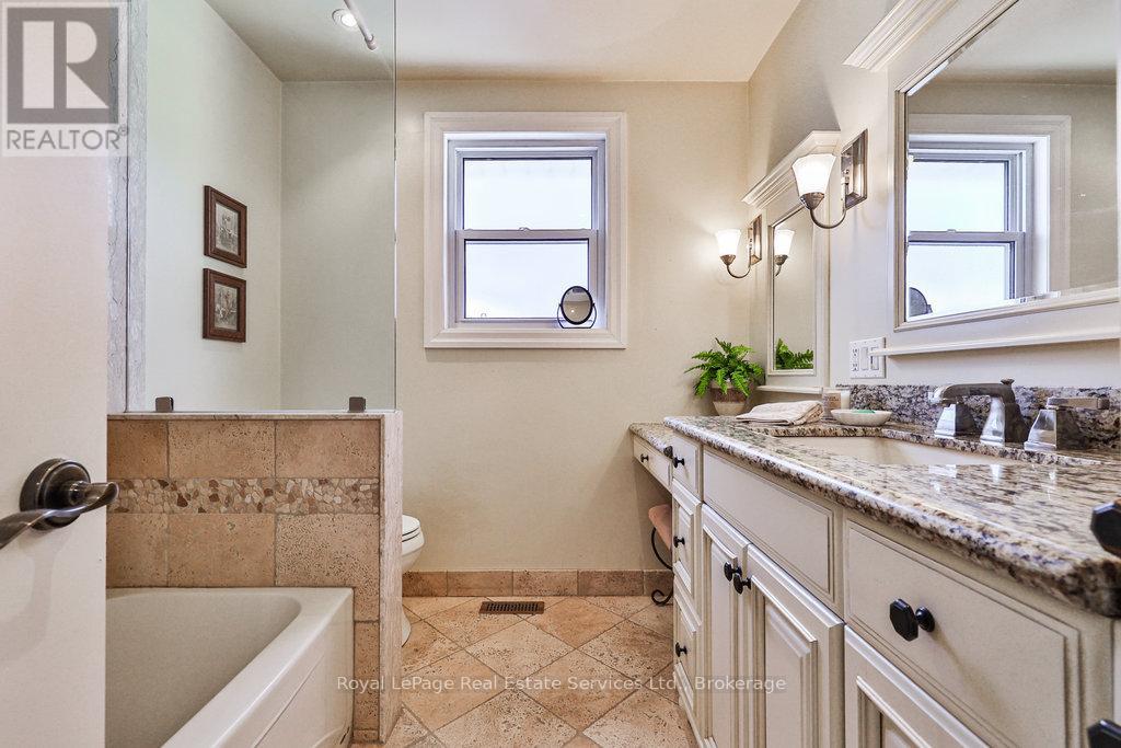 Nestled on a quiet, tree-lined street in prestigious Old Oakville, this beautifully updated, move-in ready home offers an open-concept main floor, featuring a gourmet kitchen with high-end finishes, a generous dining area and a cozy living room with a stone gas fireplace. Double doors lead to a private, professionally landscaped backyard oasis complete with a hot tub, terrace and relaxing lounge areaideal for entertaining or unwinding in peace. The main level also includes a spacious primary bedroom with walkout access to the garden, a second bedroom and full bathroom. An open staircase leads to the bright and expansive lower level, where youll find a stunning recreation room with stone fireplace, a third bedroom and bathroom featuring a walk-in steam shower. Oversized windows and stone retaining walls fill the space with natural light, creating a warm and welcoming ambiance. Located in one of Oakvilles most desirable neighbourhoods, this property is within walking distance to downtown shops and restaurants, the lakefront, GO station, Whole Foods plaza and top-ranked schools including Oakville Trafalgar High School, Linbrook & St Mildreds-Lightbourn. (Note: 2 bedrooms on main floor can be converted back to 3). (id:51158)
