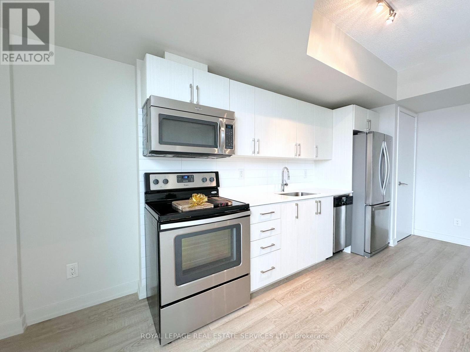 Bright and inviting 1-bedroom suite with a sunny west-facing views. Enjoy an open-concept layout with light-toned flooring throughout, a modern kitchen featuring stainless steel appliances and crisp white cabinetry, plus the convenience of ensuite laundry. A leisurely walk to Woodbine Park or Woodbine Beach with easy access to the TTC streetcar right outside your doorstep. Great building amenities including a fully equipped fitness centre and a beautiful 3rd-floor terrace complete with barbecues. Parking available to rent. Tenant to pay hydro and water (id:51158)