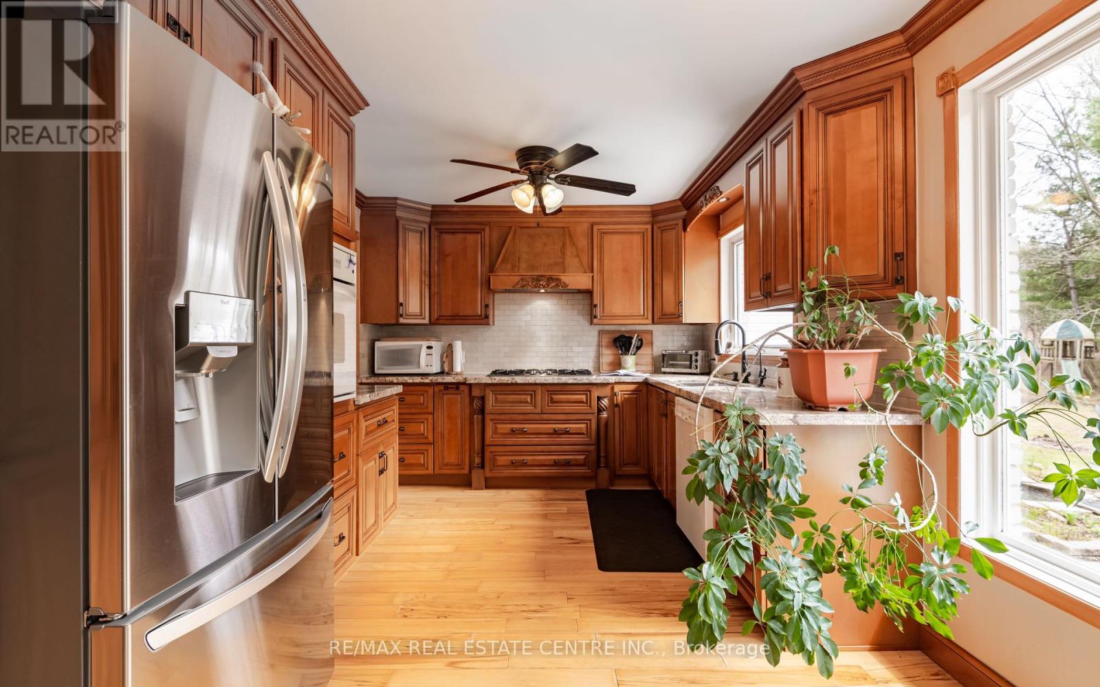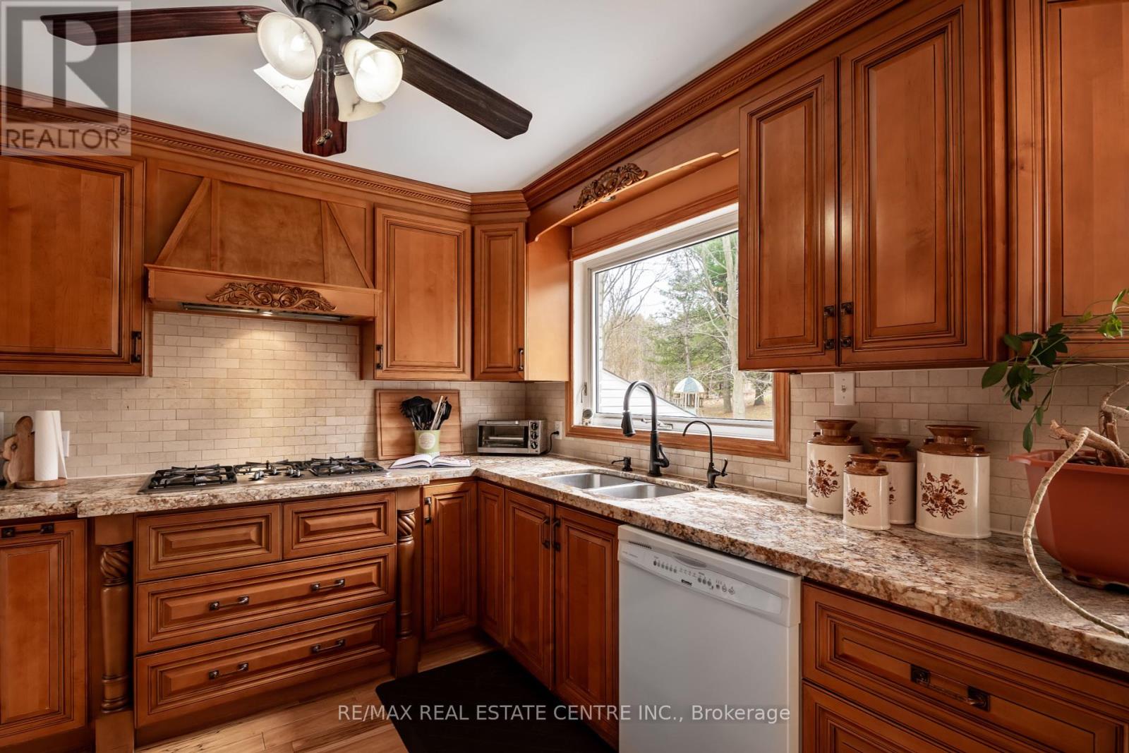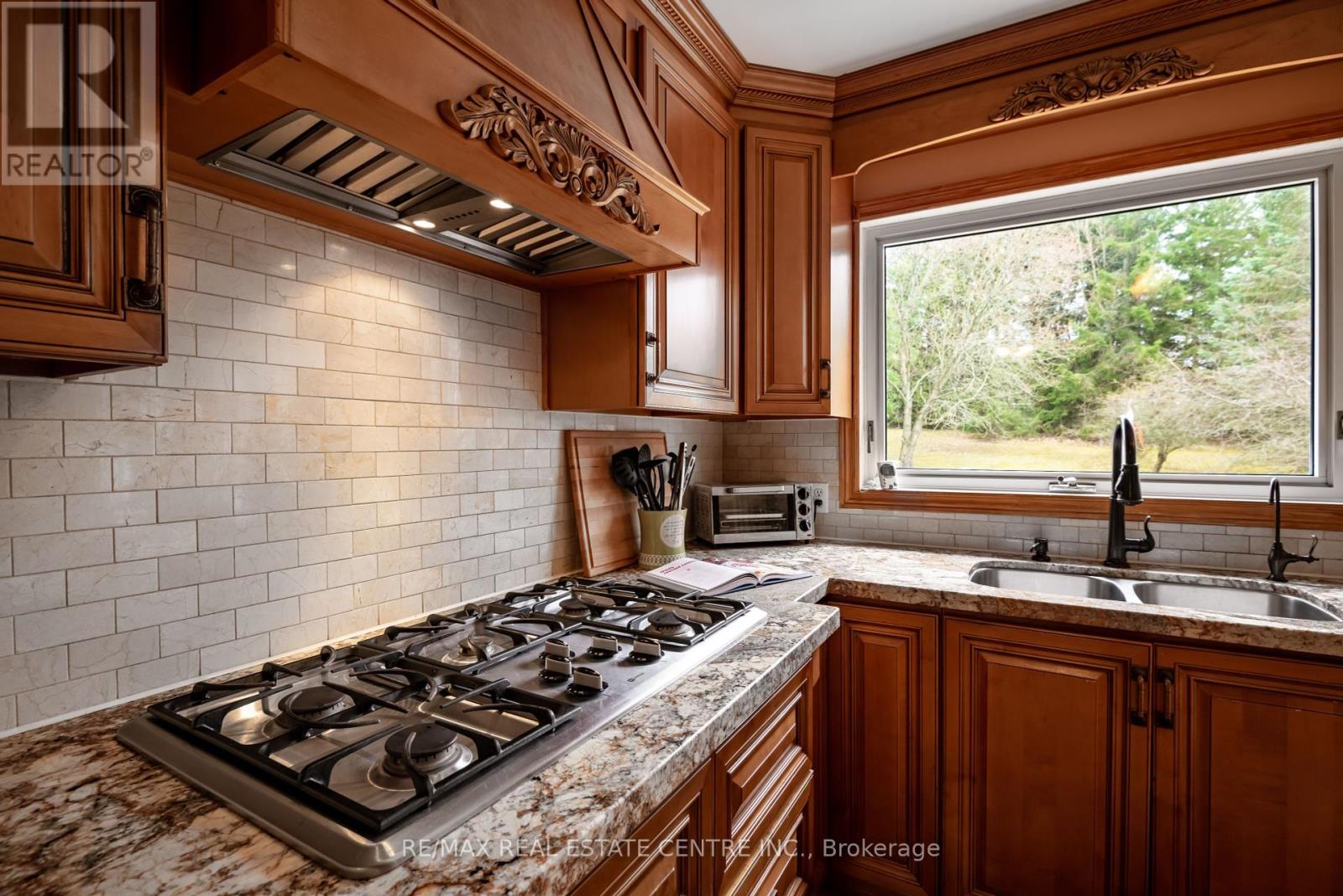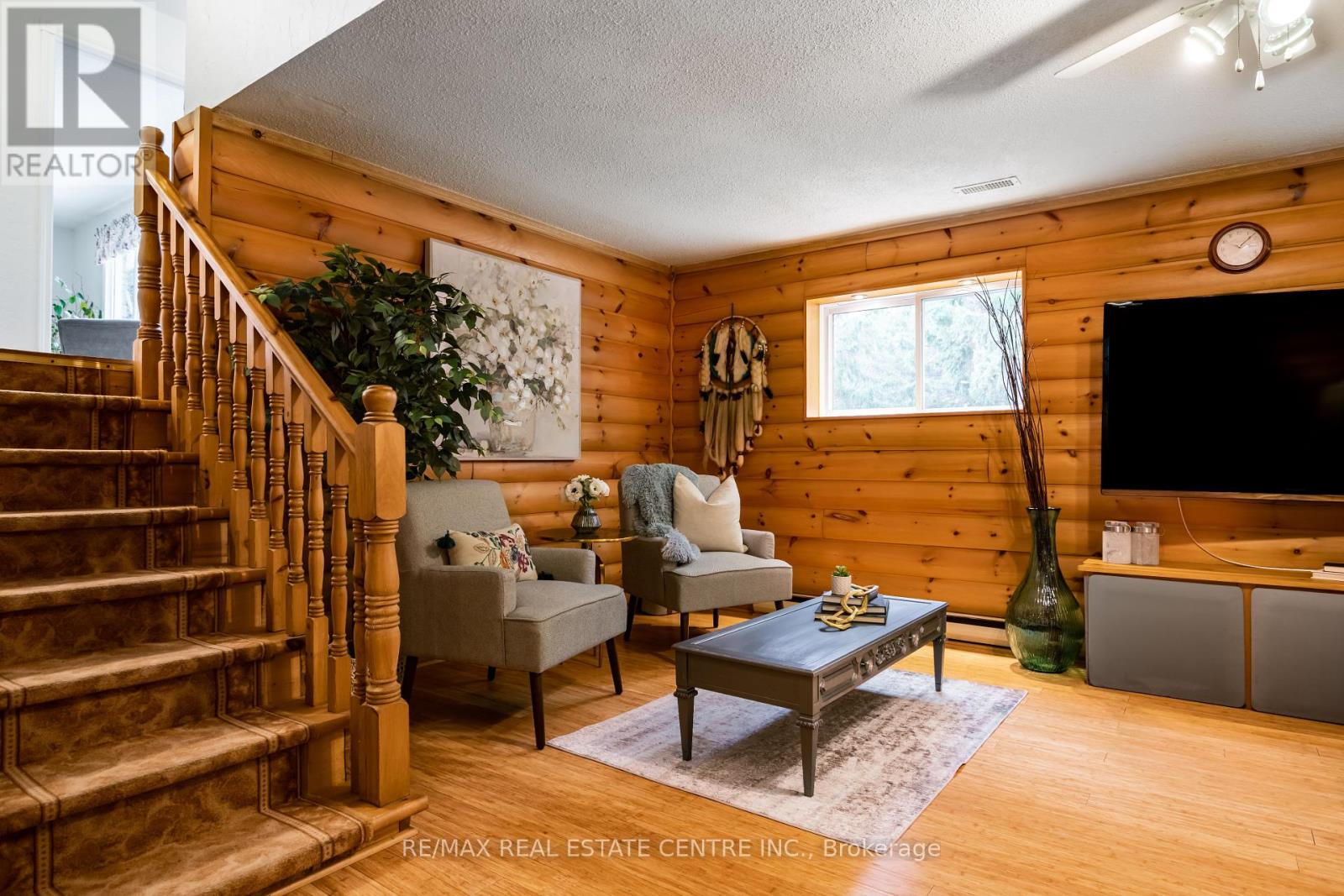 Welcome to Your Private Countryside Retreat! Set on over 18 acres of serene countryside, this exceptional property offers the perfect balance of rural charm and modern comfort. Surrounded by mature trees for shade and privacy, the estate features a reinforced steel barn with 5 stalls, multiple paddocks, and plenty of storage ideal for equestrian enthusiasts, hobby farmers, or anyone who values space and freedom. The stunning side split home boasts a newly built two-level front porch and an inviting interior designed for both comfort and style. A spacious country kitchen with granite countertops, ample cabinetry, and a natural gas cooktop flows into the bright, open family room with hardwood floors perfect for entertaining or gathering with loved ones.Upstairs, discover three generously sized bedrooms with large windows that fill the rooms with natural light, along with a rustic cedar 4-piece bath that adds warmth and character. The lower level offers a cozy log cabin-inspired living room with a gas fireplace and salvaged barn-beam mantel, a full office, powder room, and a sunlit hot tub room with panoramic views of the property your very own year-round relaxation escape.The finished basement includes a games room, laundry, and direct garage access, providing plenty of functional living space for a growing family.Step outside to enjoy the above-ground pool with wrap-around deck, an entertainers dream in the summer months, while a natural gas generator ensures comfort and peace of mind during all seasons. The property also includes a detached double garage and ample parking for 20+ vehicles, making it perfect for guests and large gatherings.This is more than a home its a lifestyle. Whether you dream of country living, equestrian pursuits, or simply a private retreat surrounded by nature, this Mono estate truly has it all. (id:51158)
