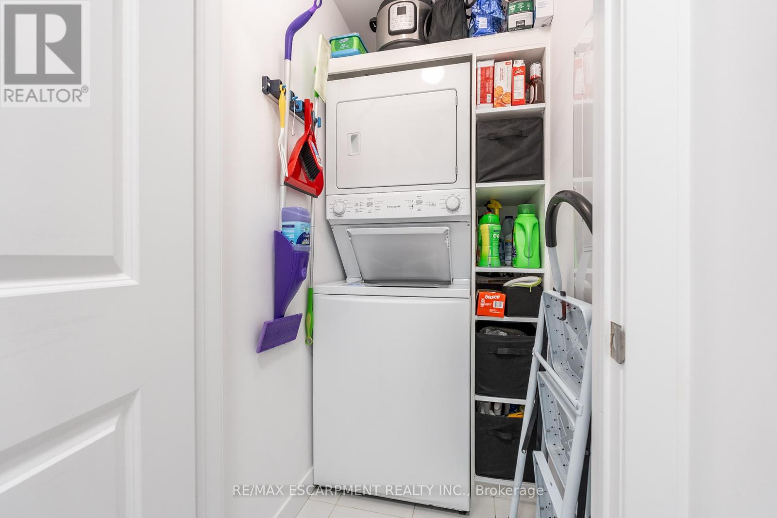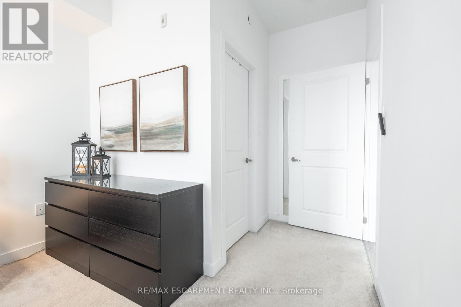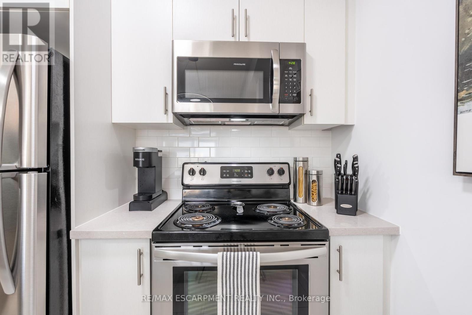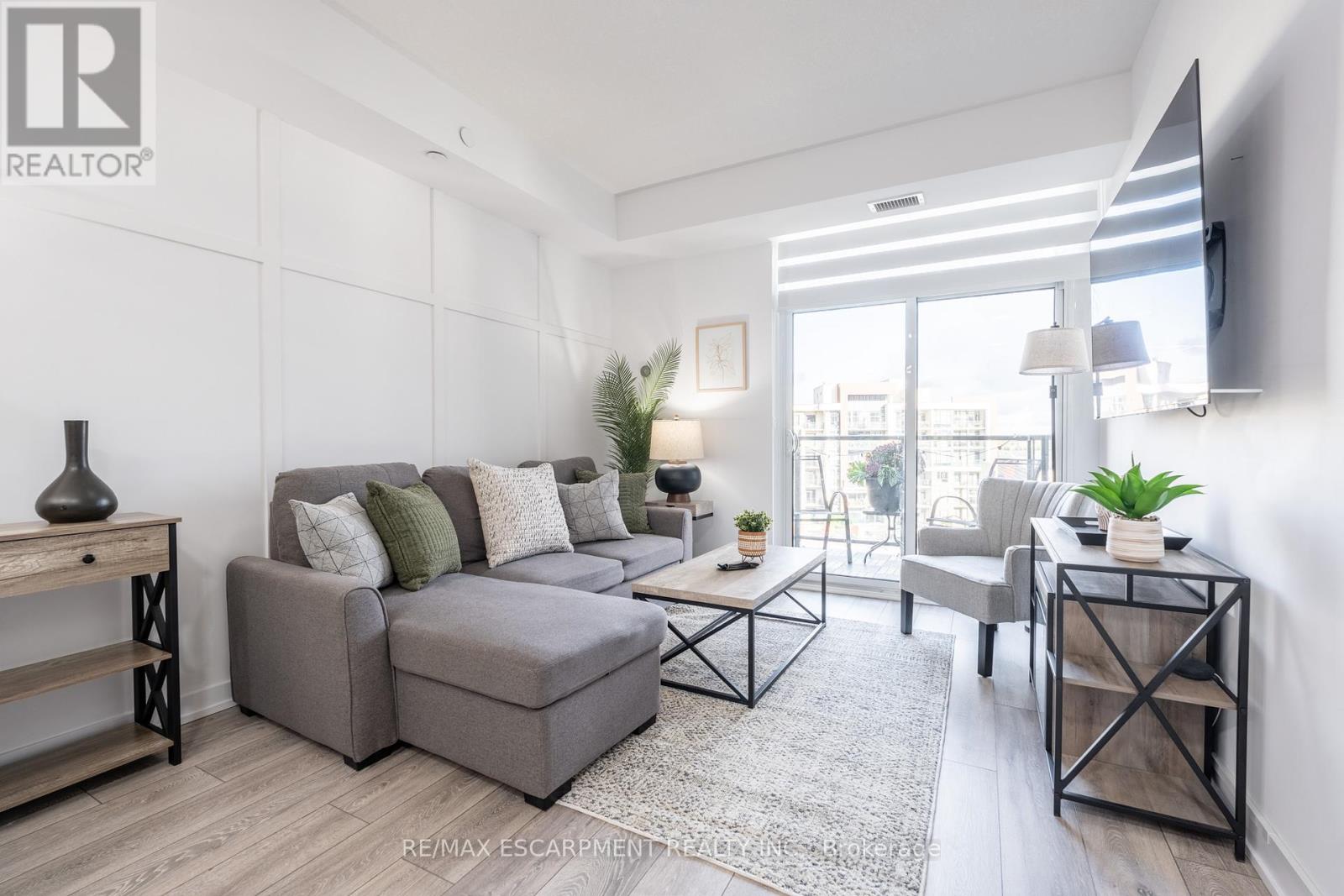 $536.93 MonthlyThis 668 square foot lakeside condo in the Community Beach area of Stoney Creek combines style and convenience. It features a bright, open layout with one bedroom and a flexible den- perfect for a home office or reading nook. The modern kitchen is equipped with quartz countertops, subway tile backsplash and stainless-steel appliances, while the living room is highlighted by a stylish feature wall. The primary bedroom comes with a walk-in closet and ceiling fan and the bathroom includes a quartz vanity. Not to be missed are the updated light fixtures, laminate floors that provide warmth and ease of maintenance, and floor-to-ceiling windows providing loads of natural sunlight. Step out onto your private balcony where you can take in views of Lake Ontario. Residents can enjoy building amenities such as a rooftop patio, gym, and a party room for gatherings. This unit comes with one underground parking space and one locker. You'll love the location being able to walk along the waterfront, going to the beach and parks and quick access to the highway. RSA. (id:51158)