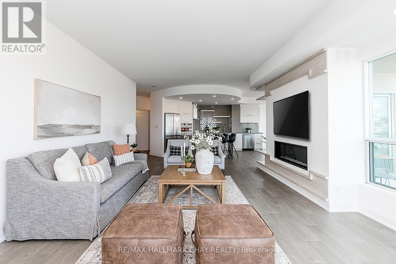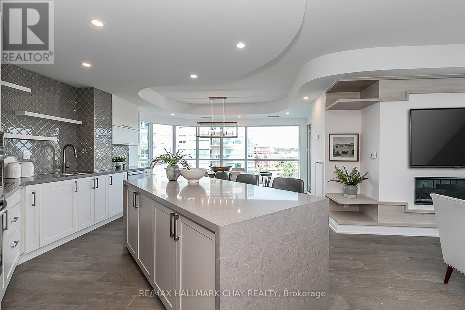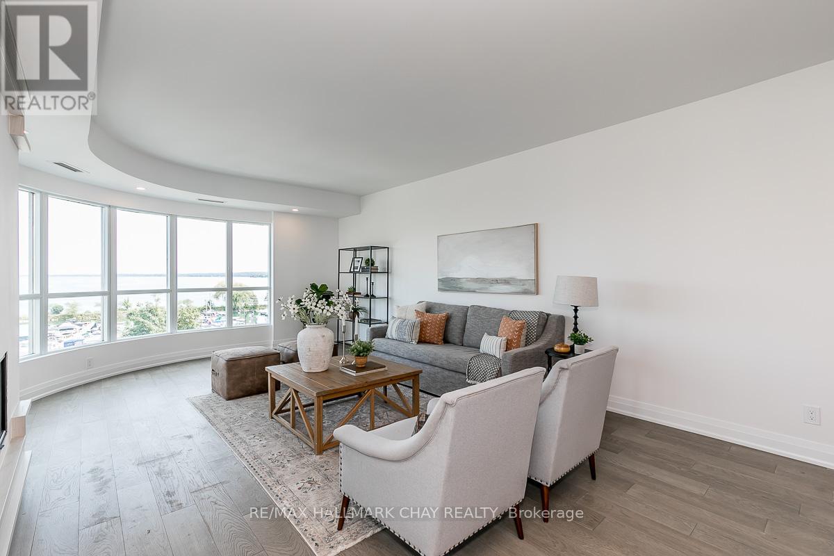 Welcome to Grand Harbour, where sophistication meets the serenity of waterfront living. Suite 509 - the Driftwood Model - offers an unparalleled blend of elegance, comfort, and breathtaking views of Kempenfelt Bay, the marina, and Barrie's scenic waterfront. Luxury Waterfront Condo Living at Grand Harbour! Spanning 1,500 sq. ft., this meticulously updated two-bedroom, two-bath residence invites you into a world of refined living. Expansive floor-to-ceiling windows flood the space with natural light, showcasing stunning lakefront vistas, while engineered hardwood floors add warmth and timeless beauty. The heart of the home, a modernized kitchen, boasts premium finishes, seamlessly flowing into a spacious living area featuring a gas fireplace - the perfect setting for relaxation or entertaining. A full-sized dining room with walkout access leads to a private outdoor open balcony, ideal for enjoying serene waterfront sunrises. Unwind in the principle suite, complete with ample closet storage and a spa-like ensuite designed for ultimate tranquility. A second bedroom, full guest bath, and convenient in-suite laundry complete this exceptional layout. Indulge in Grand Harbour's exclusive amenities, including a indoor pool, sauna, hot tub, gym, library, games room, and elegant party room. With secure indoor parking and a private storage locker, convenience is at your fingertips. Step outside and immerse yourself in Barrie's vibrant boardwalk, trails, and waterfront lifestyle. From easy access to GO Transit, public transit, and major commuter routes, to the city's casual and fine dining restaurants, services, shopping, entertainment and year-round recreation, this is the perfect balance of luxury and convenience. Welcome to Grand Harbour - waterfront living at its finest. Step away from cutting grass - shoveling snow - maintenance of properties larger than you need - step into the luxury, convenience, simplicity of condo life! NOTE: This property is also listed for sale. (id:51158)