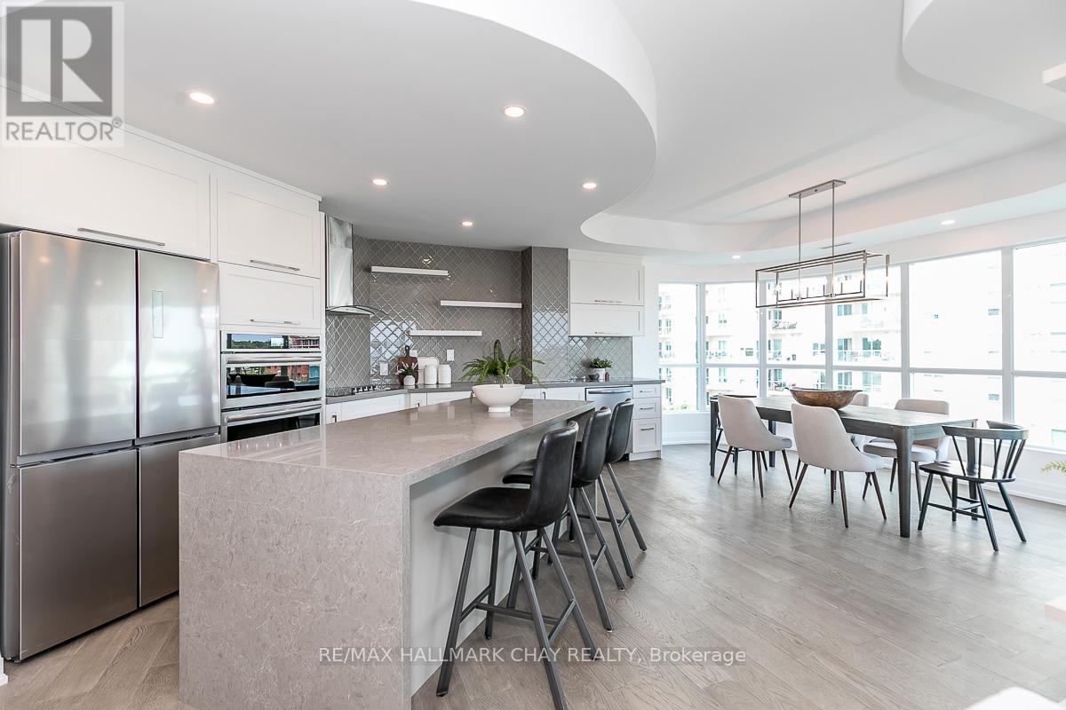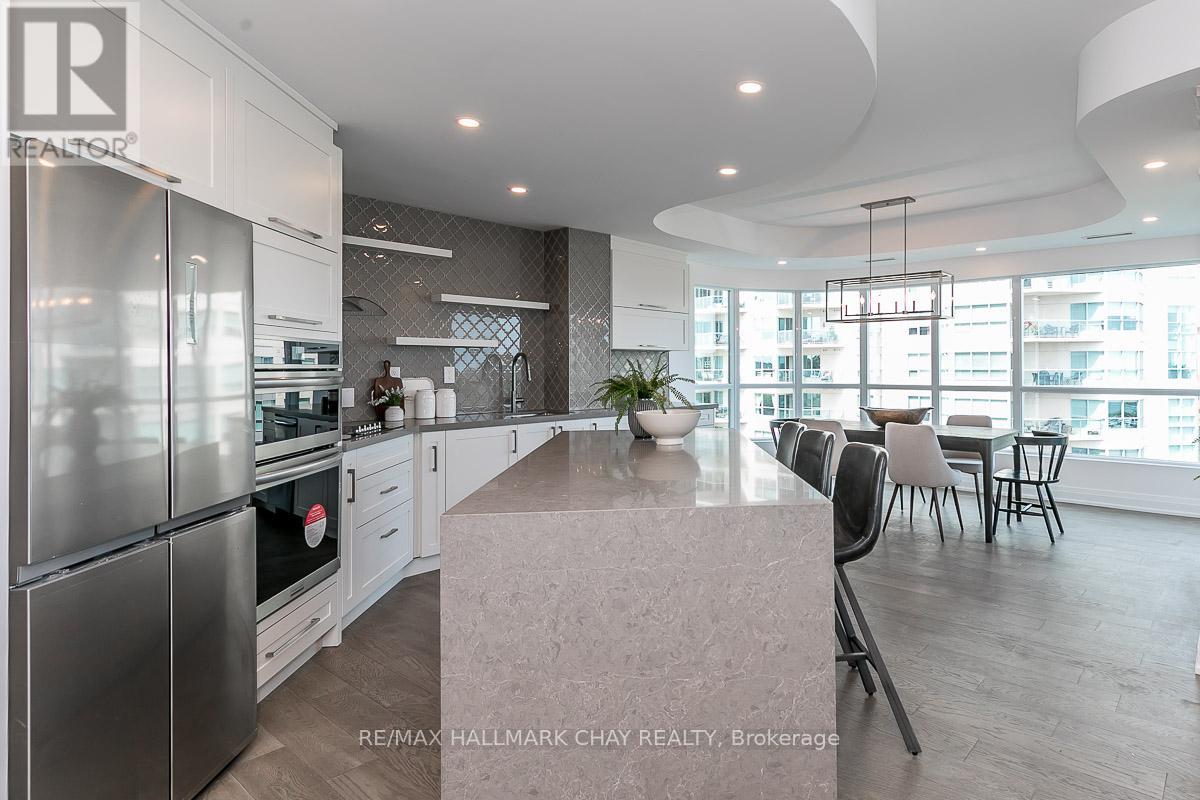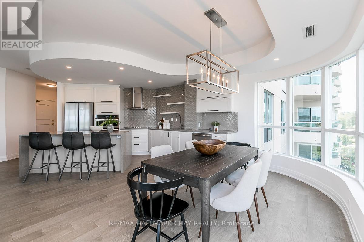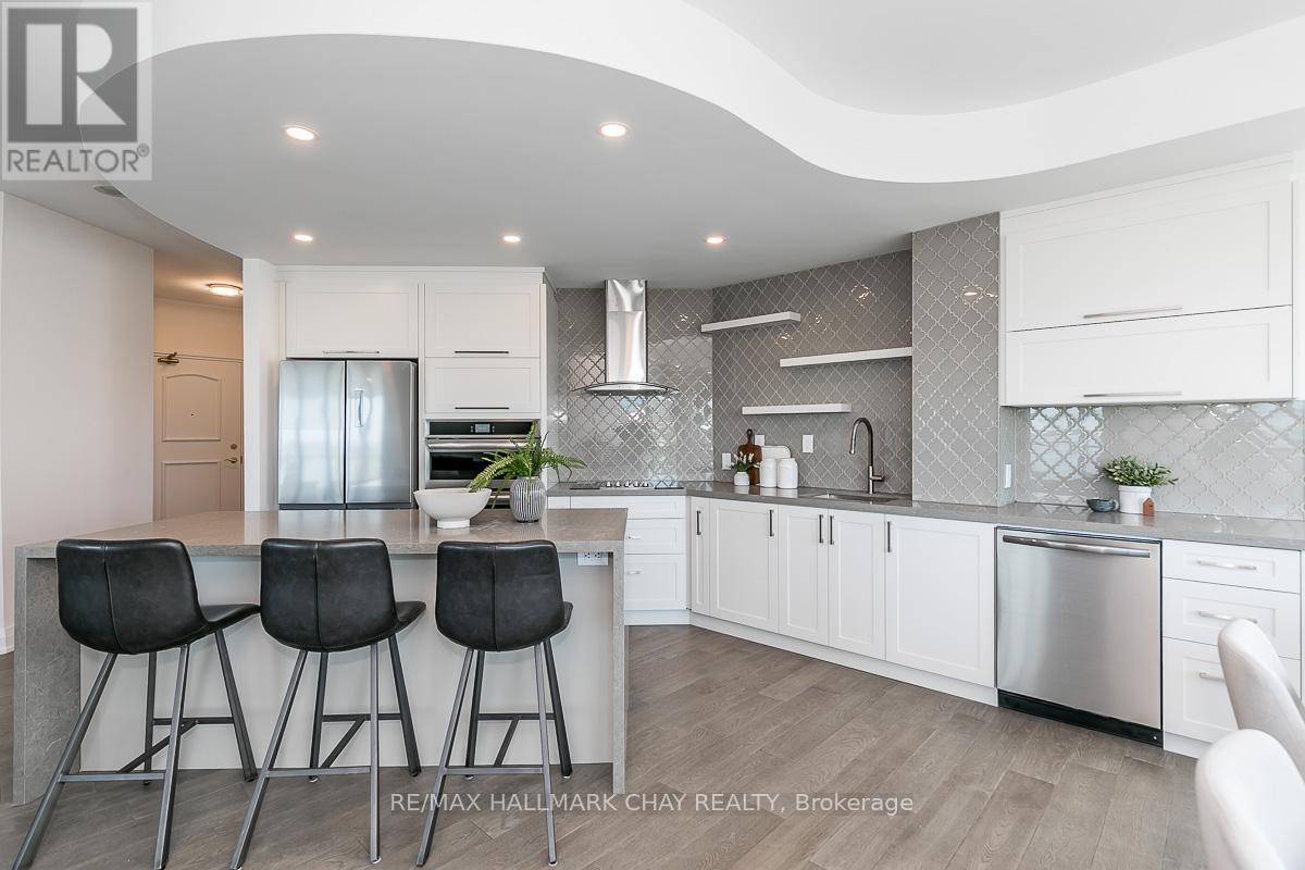 Welcome to Grand Harbour, where sophistication meets the serenity of waterfront living. Suite 509 - the Driftwood Model - offers an unparalleled blend of elegance, comfort, and breathtaking views of Kempenfelt Bay, the marina, and Barrie's scenic waterfront. Luxury Waterfront Condo Living at Grand Harbour! Spanning 1,500 sq. ft., this meticulously updated two-bedroom, two-bath residence invites you into a world of refined living. Expansive floor-to-ceiling windows flood the space with natural light, showcasing stunning lakefront vistas, while engineered hardwood floors add warmth and timeless beauty. The heart of the home, a modernized kitchen, boasts premium finishes, seamlessly flowing into a spacious living area featuring a gas fireplace - the perfect setting for relaxation or entertaining. A full-sized dining room with walkout access leads to a private outdoor open balcony, ideal for enjoying serene waterfront sunrises. Unwind in the principle suite, complete with ample closet storage and a spa-like ensuite designed for ultimate tranquility. A second bedroom, full guest bath, and convenient in-suite laundry complete this exceptional layout. Indulge in Grand Harbour's exclusive amenities, including a indoor pool, sauna, hot tub, gym, library, games room, and elegant party room. With secure indoor parking and a private storage locker, convenience is at your fingertips. Step outside and immerse yourself in Barrie's vibrant boardwalk, trails, and waterfront lifestyle. From easy access to GO Transit, public transit, and major commuter routes, to the city's casual and fine dining restaurants, services, shopping, entertainment and year-round recreation, this is the perfect balance of luxury and convenience. Welcome to Grand Harbour - waterfront living at its finest. Step away from cutting grass - shoveling snow - maintenance of properties larger than you need - step into the luxury, convenience, simplicity of condo life! NOTE: This property is also listed for sale. (id:51158)
