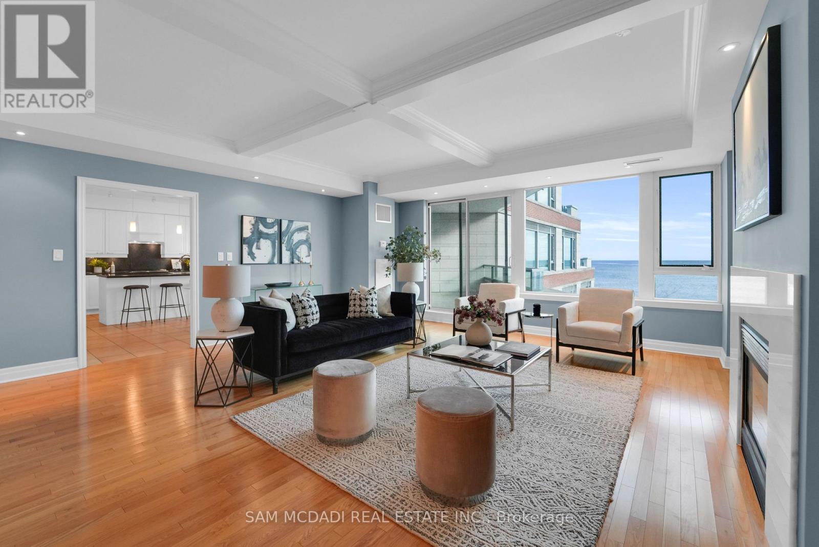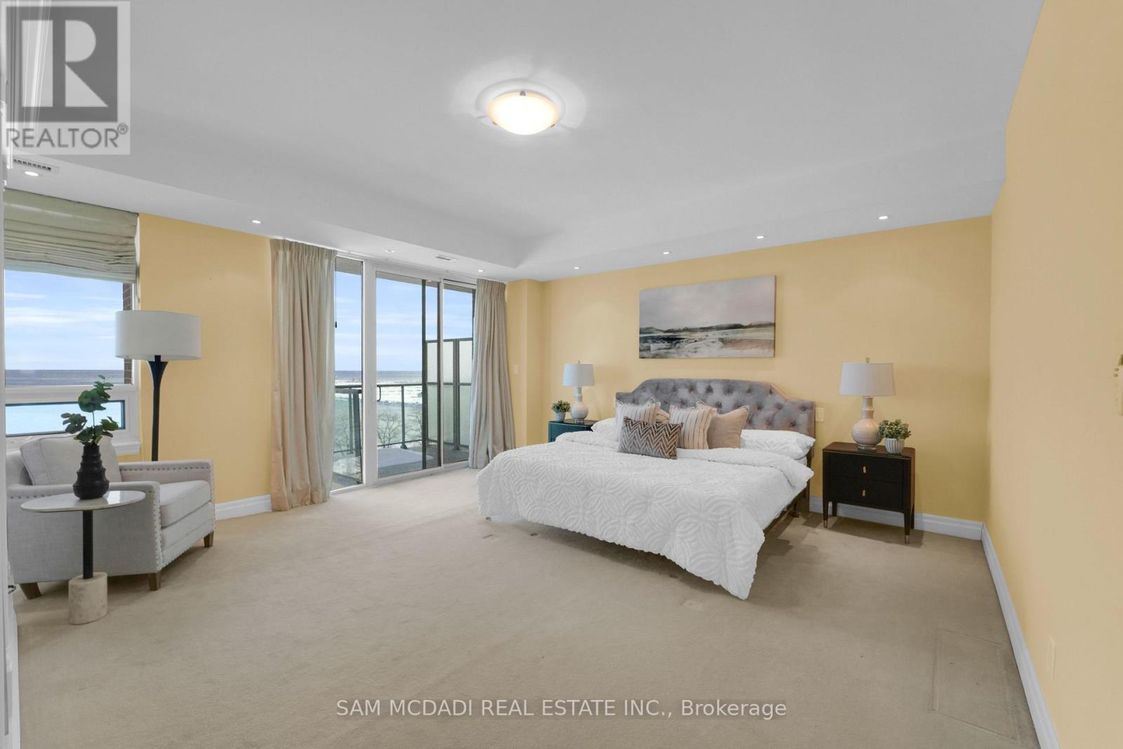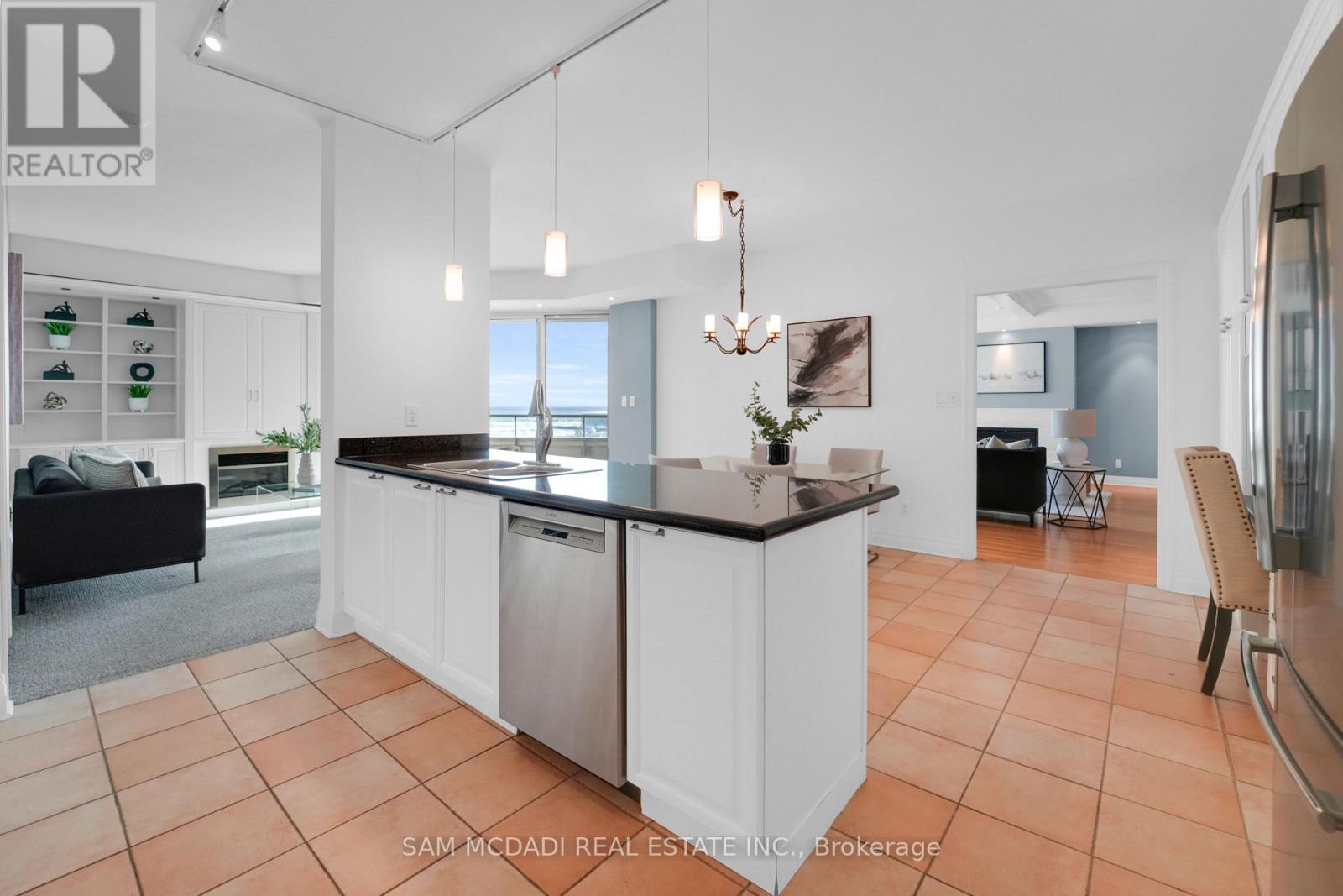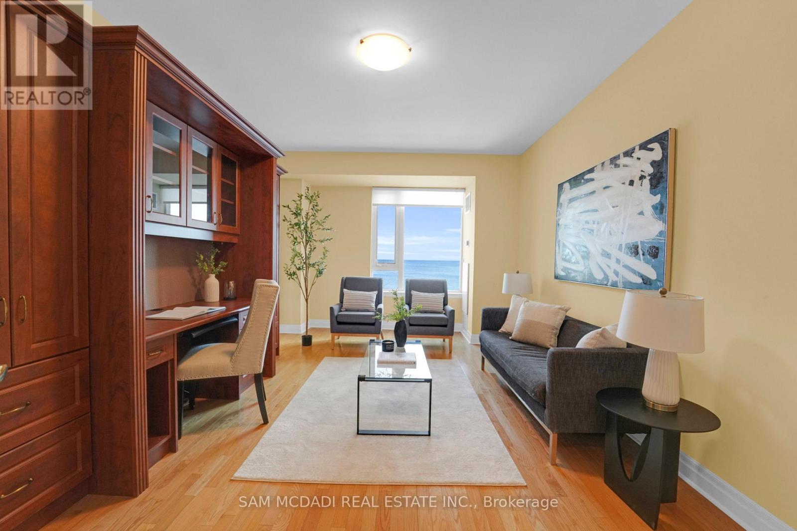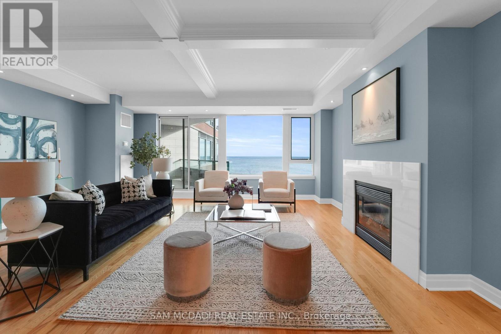 Experience lakeside living at its finest in the sought-after Port Credit community.This expansive 2+1 bedroom, 3-bath residence at the iconic Regatta Condos offers over 2,600 sq ft of beautifully designed living space, framed by panoramic lake views from every room. Inside, soaring vaulted ceilings and oversized principal rooms create an airy, open feel, ideal for both relaxing and entertaining. The custom kitchen is a chef's dream complete with granite countertops and stainless steel appliances. It opens gracefully into a spacious dining area and sun-filled living room, where one of three fireplaces sets a cozy, elegant tone. Retreat to the serene primary suite featuring a spa-like ensuite with a walk-in shower, generous closet space, and your own private balcony overlooking the water. A second bedroom, flexible den, and two additional full baths offer versatility for guests, work-from-home, or personal hobbies. Two private balconies invite you to unwind, all while soaking in the tranquil lake views. Enjoy the convenience of ensuite laundry, two parking spaces, and a locker, all within one of Port Credits most desirable addresses. Steps to waterfront trails, the marina, dining, shops, and GO Stations, this is your opportunity to enjoy the charm and vibrancy of South Mississauga living. (id:51158)