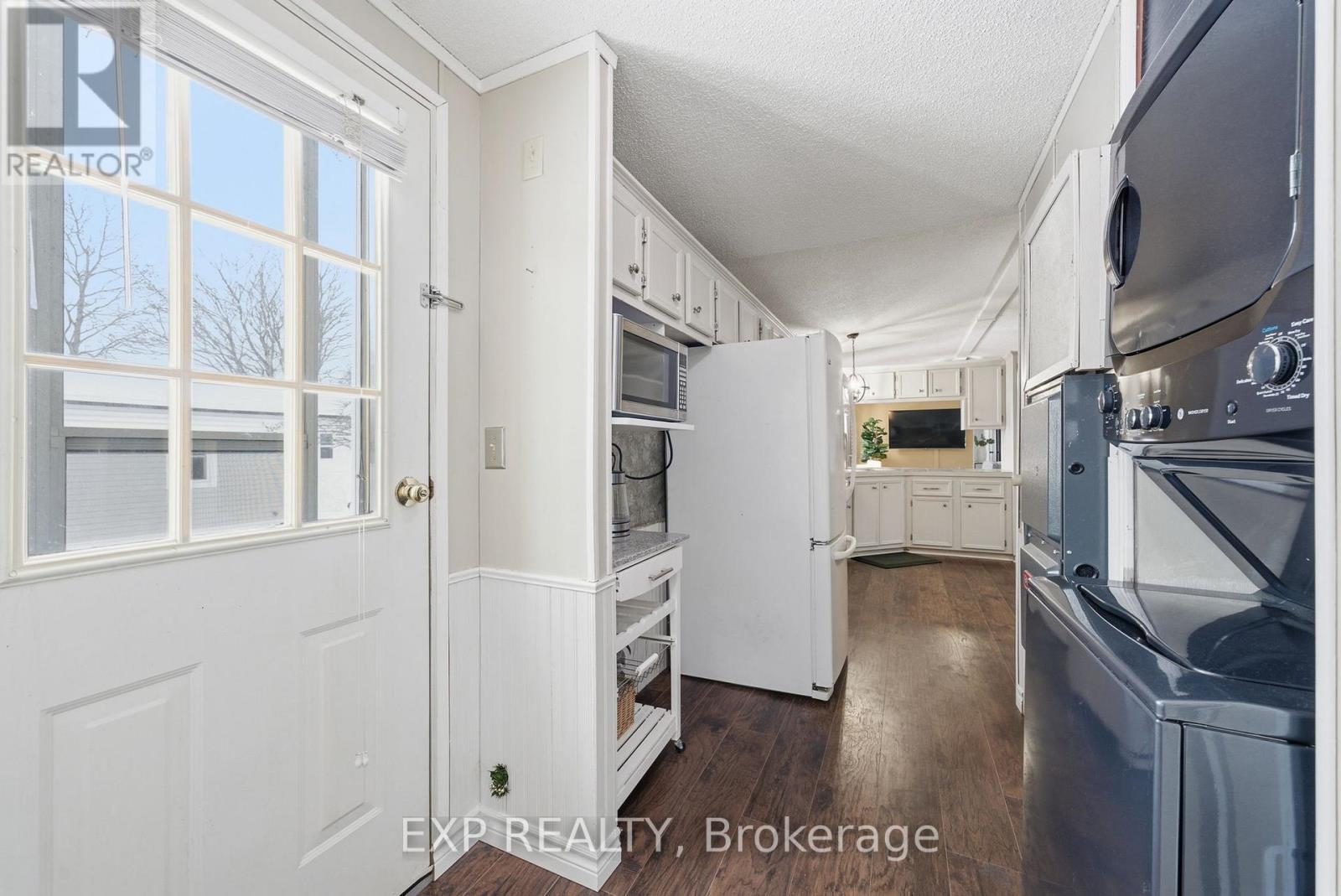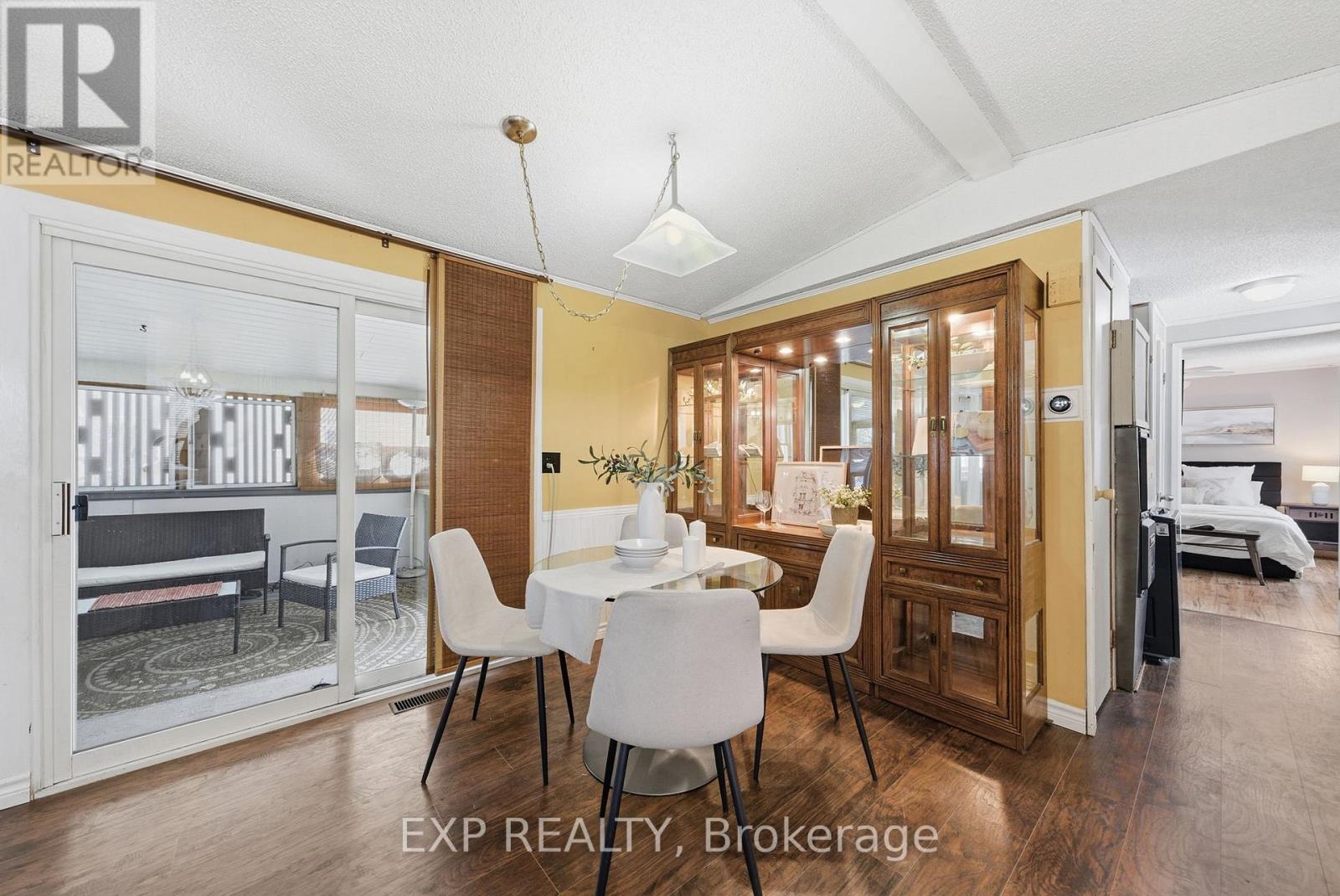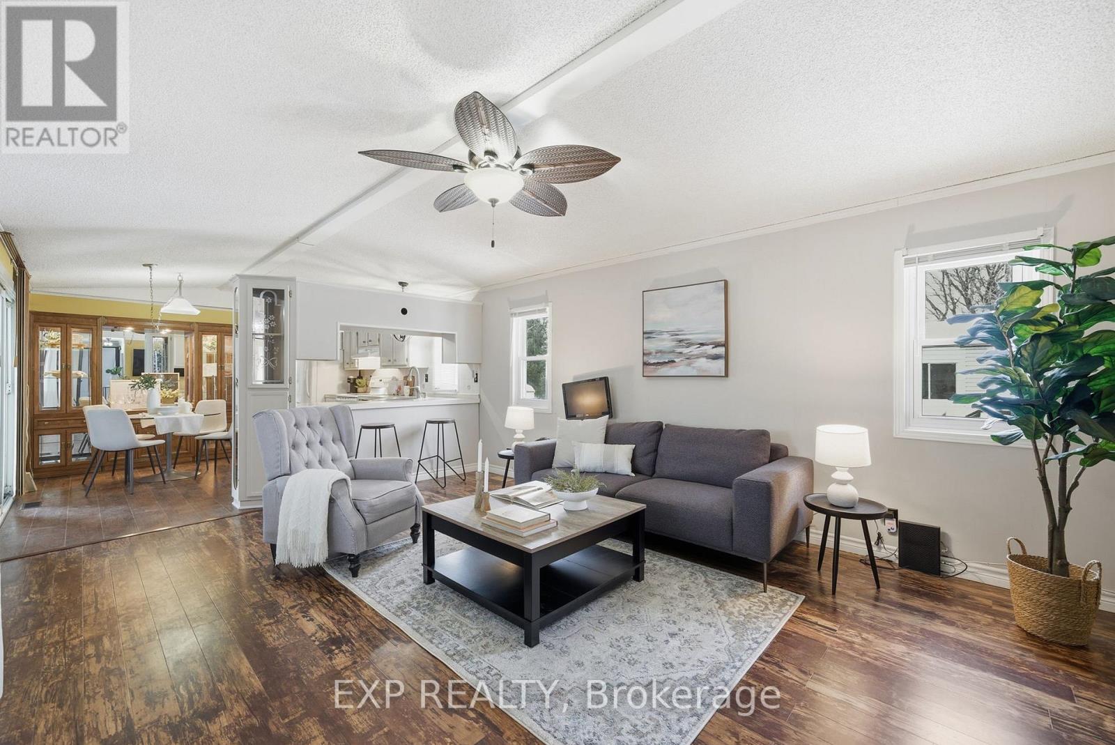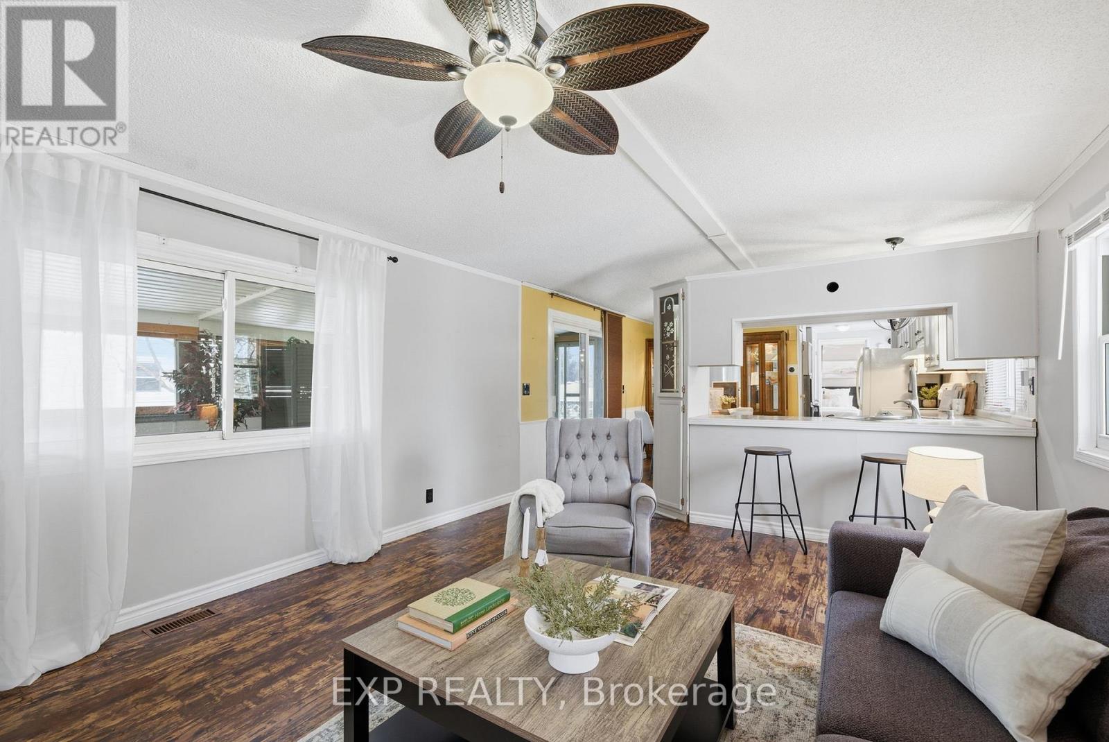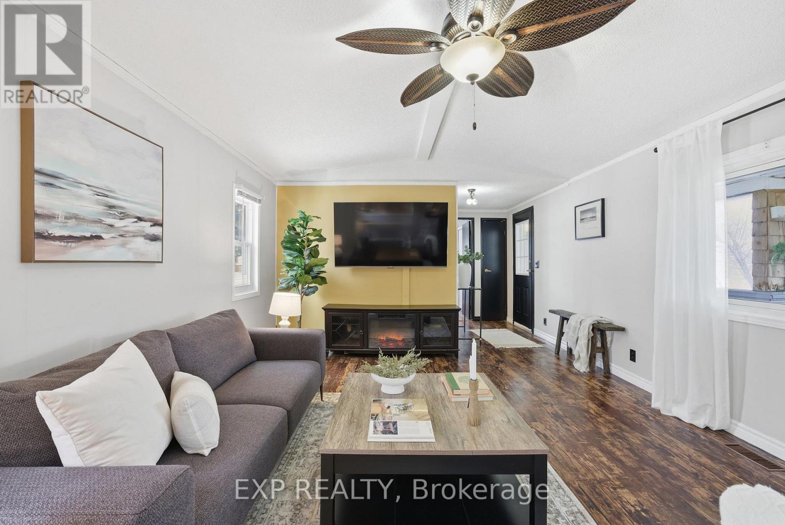 Welcome to 509 Cunningham Crescent, a well-maintained bungalow-style mobile home offering over 900 sq. ft. of comfortable living space in a quiet, friendly neighbourhood just minutes from the amenities of Cobourg and Port Hope. This 2-bedroom, 2-bathroom home features a thoughtful layout designed for everyday living and entertaining. Walk in through the large screened-in porch before entering the bright, open-concept living area, where the spacious living room flows effortlessly into the eat-in kitchen, creating a warm and inviting central hub of the home. Set on one of the most private lots in the neighbourhood, the property is surrounded by mature trees and beautifully maintained gardens, offering peaceful views and exceptional outdoor enjoyment. The fully fenced yard is ideal for pets, while the fully enclosed three-season deck provides an additional space to relax and unwind. Two additional sheds offer excellent storage solutions, including one insulated shed finished with drywall, perfect for a workshop, hobby space, or extra storage. With its functional layout, private setting, and close proximity to shopping, services, and downtown Cobourg and Port Hope, this home presents an excellent opportunity for those seeking an affordable, low-maintenance lifestyle in a desirable location. (id:51158)