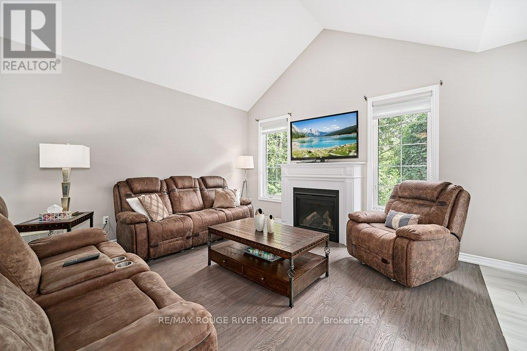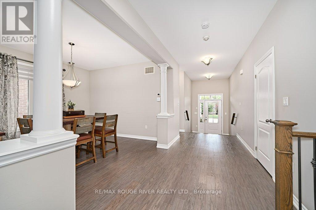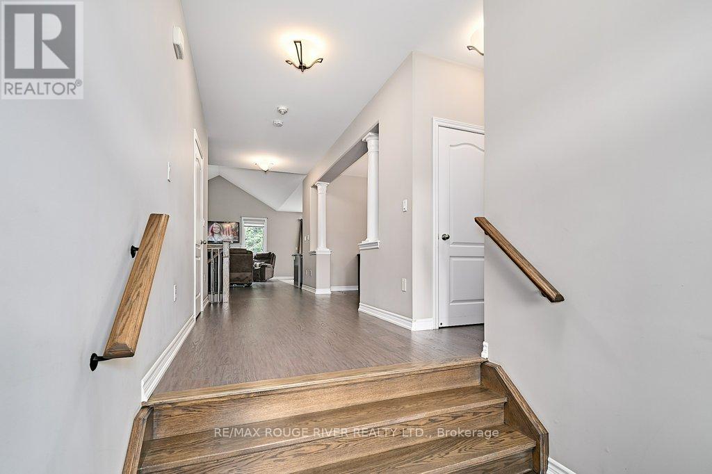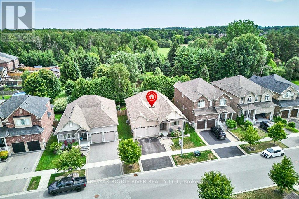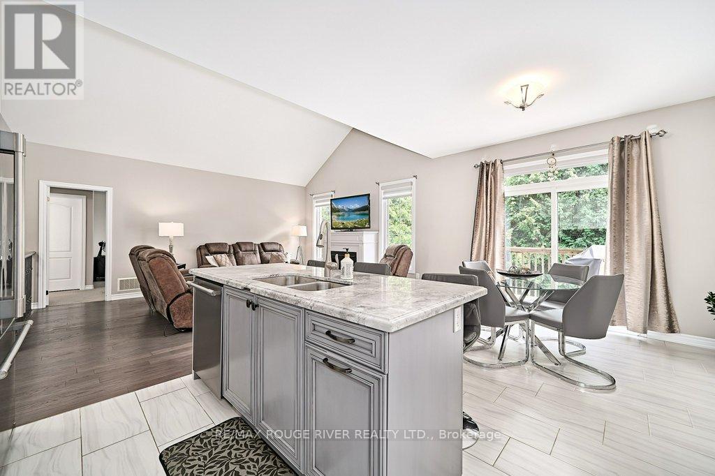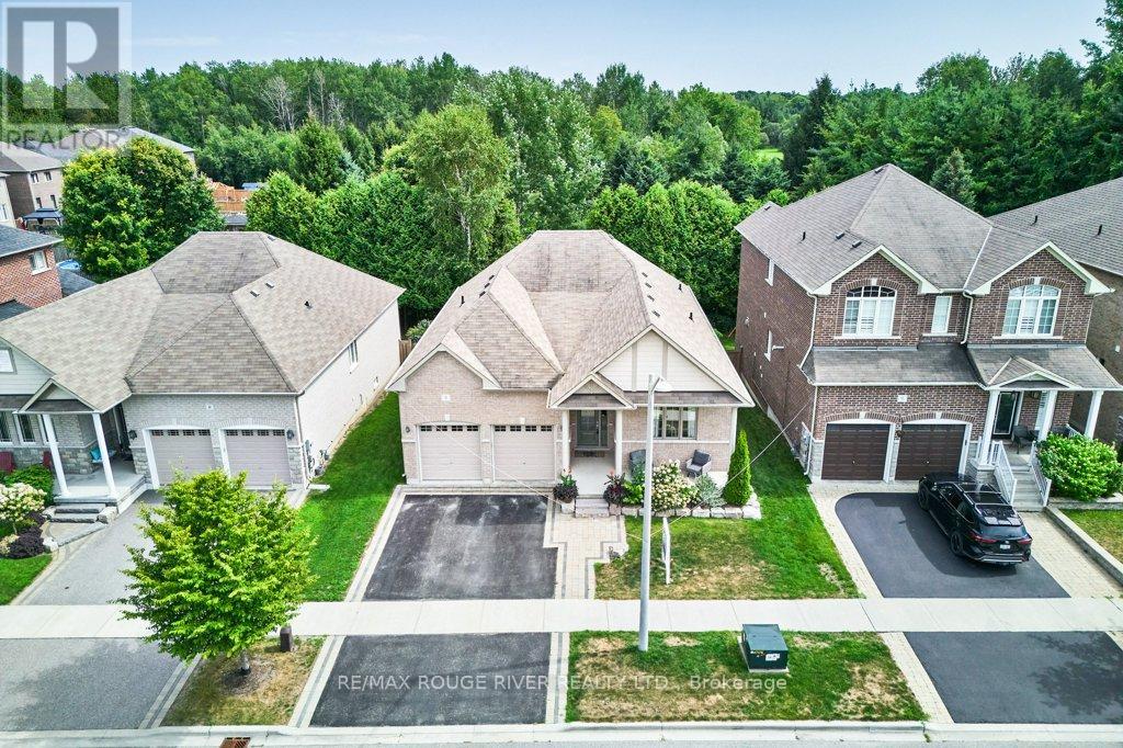 Finally ... A Bungalow with a Dining Room! Quality All Brick Helminen Built Home. The Featured "I Wants": 9 Ft Flat Ceilings, a Cathedral Ceiling, Main Floor Laundry to name a few. All on a 53 Ft Frontage backing on to a Green Space in a Quiet Enclave just off Courtice Rd. Ample Parking and 9 Ft Doors to Double Heated Garage and Direct Entry to Home. Generous 1726 Ft Floorplan Plus a further 1467 Sq Feet on the Lower Level. Finished Landing and with a Rough-in Bath and 4 Large Bright Windows This Offers Huge Potential for Additional Living. The Primary Bedroom is complete with an En-suite and Double Glass Shower, a Walk-in Closet and Overlooks the Quiet Pond and Greenspace. Soaring Cathedral Ceiling in the Family Room with Gas Fireplace also Overlooks the Private backyard. The 2nd Bedroom offers Teens or Guests quiet Enjoyment overlooking the Porch. A 4 Pce Bath at the door for convenience. The Open Kitchen Features Ample Granite Counterspace plus Ceramic Backsplash and S/S Fume Hood. The Granite Topped Island overlooks the Family Room and the Breakfast Room with its Sliding Glass Door to Bbq Deck and Yard and Features a Sink and Dishwasher. A Bonus to this Home is the Spray Foamed Insulated Exterior Walls Up and Down plus The Heated Garage Ceiling and R-70 Insulation in the Homes Ceilings ... Very Comfortable and Economical Heating and Cooling plus Much Quieter indoors :) Clean Tidy and Ready For You. Please Enjoy the Virtual Tour for More Detail. 15 Minutes to Bowmanville or Oshawa and 4 Min Access to Highway 418 to the 401 and 407 :) (id:51158)
