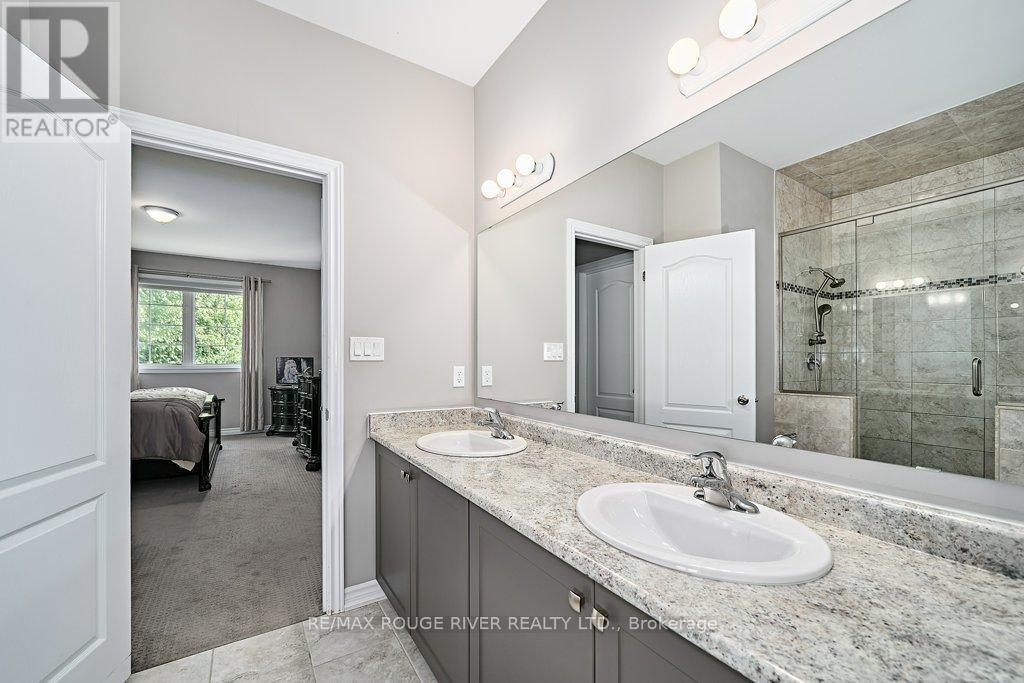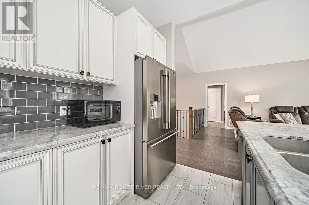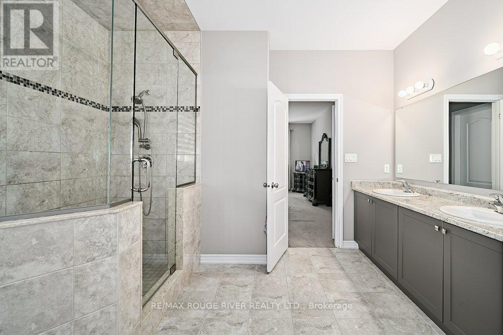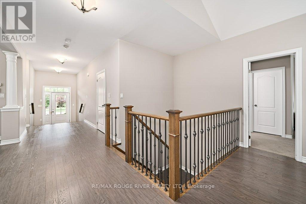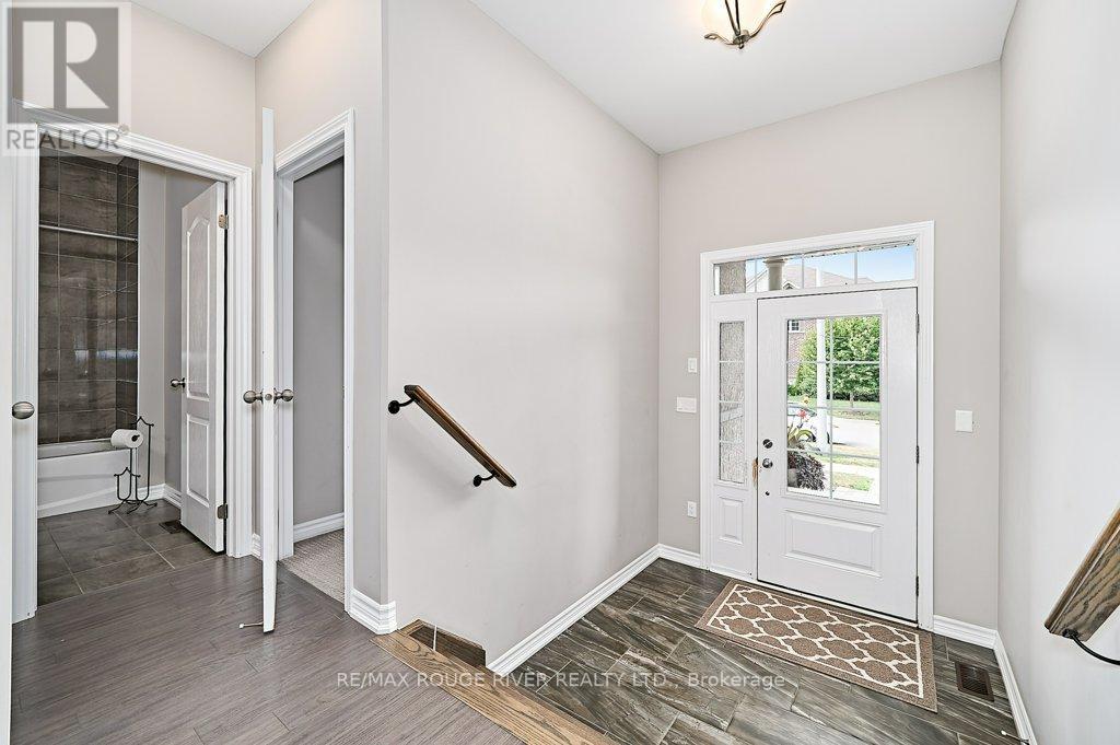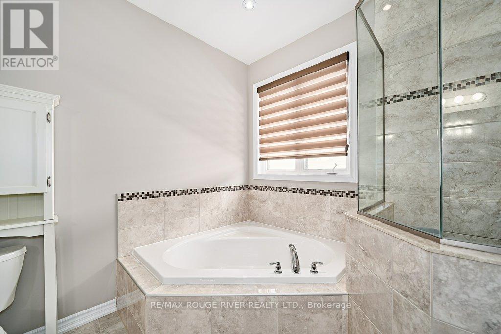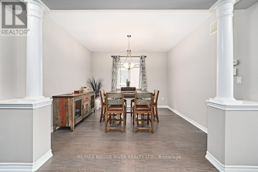 Finally ... A Bungalow with a Dining Room! Quality All Brick Helminen Built Home. The Featured "I Wants": 9 Ft Flat Ceilings, a Cathedral Ceiling, Main Floor Laundry to name a few. All on a 53 Ft Frontage backing on to a Green Space in a Quiet Enclave just off Courtice Rd. Ample Parking and 9 Ft Doors to Double Heated Garage and Direct Entry to Home. Generous 1726 Ft Floorplan Plus a further 1467 Sq Feet on the Lower Level. Finished Landing and with a Rough-in Bath and 4 Large Bright Windows This Offers Huge Potential for Additional Living. The Primary Bedroom is complete with an En-suite and Double Glass Shower, a Walk-in Closet and Overlooks the Quiet Pond and Greenspace. Soaring Cathedral Ceiling in the Family Room with Gas Fireplace also Overlooks the Private backyard. The 2nd Bedroom offers Teens or Guests quiet Enjoyment overlooking the Porch. A 4 Pce Bath at the door for convenience. The Open Kitchen Features Ample Granite Counterspace plus Ceramic Backsplash and S/S Fume Hood. The Granite Topped Island overlooks the Family Room and the Breakfast Room with its Sliding Glass Door to Bbq Deck and Yard and Features a Sink and Dishwasher. A Bonus to this Home is the Spray Foamed Insulated Exterior Walls Up and Down plus The Heated Garage Ceiling and R-70 Insulation in the Homes Ceilings ... Very Comfortable and Economical Heating and Cooling plus Much Quieter indoors :) Clean Tidy and Ready For You. Please Enjoy the Virtual Tour for More Detail. 15 Minutes to Bowmanville or Oshawa and 4 Min Access to Highway 418 to the 401 and 407 :) (id:51158)