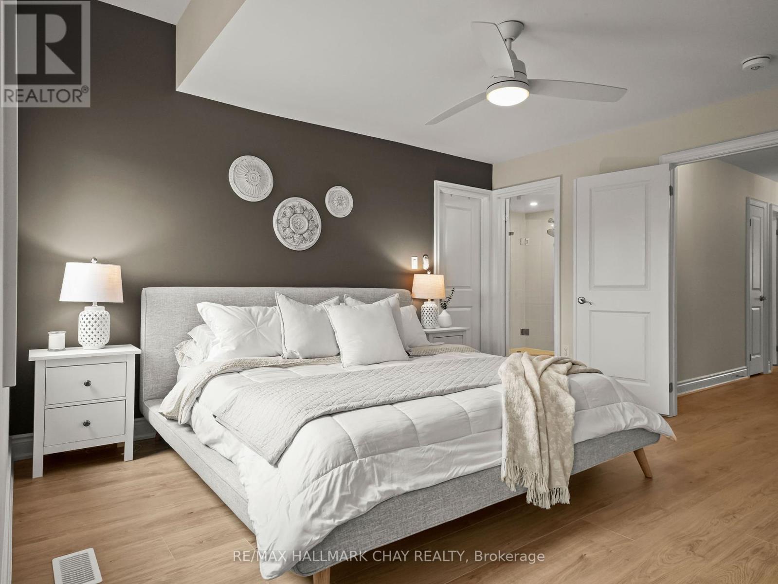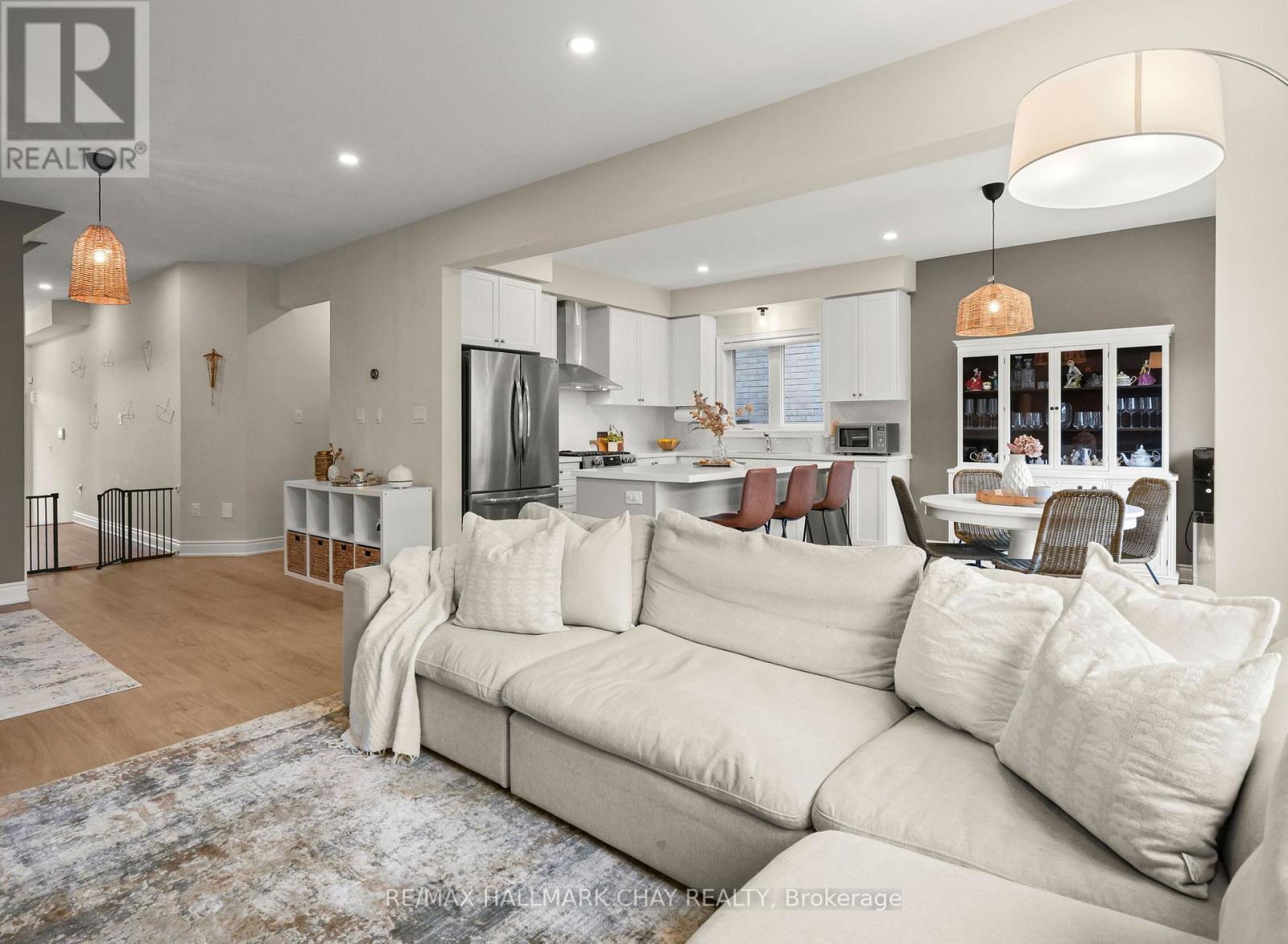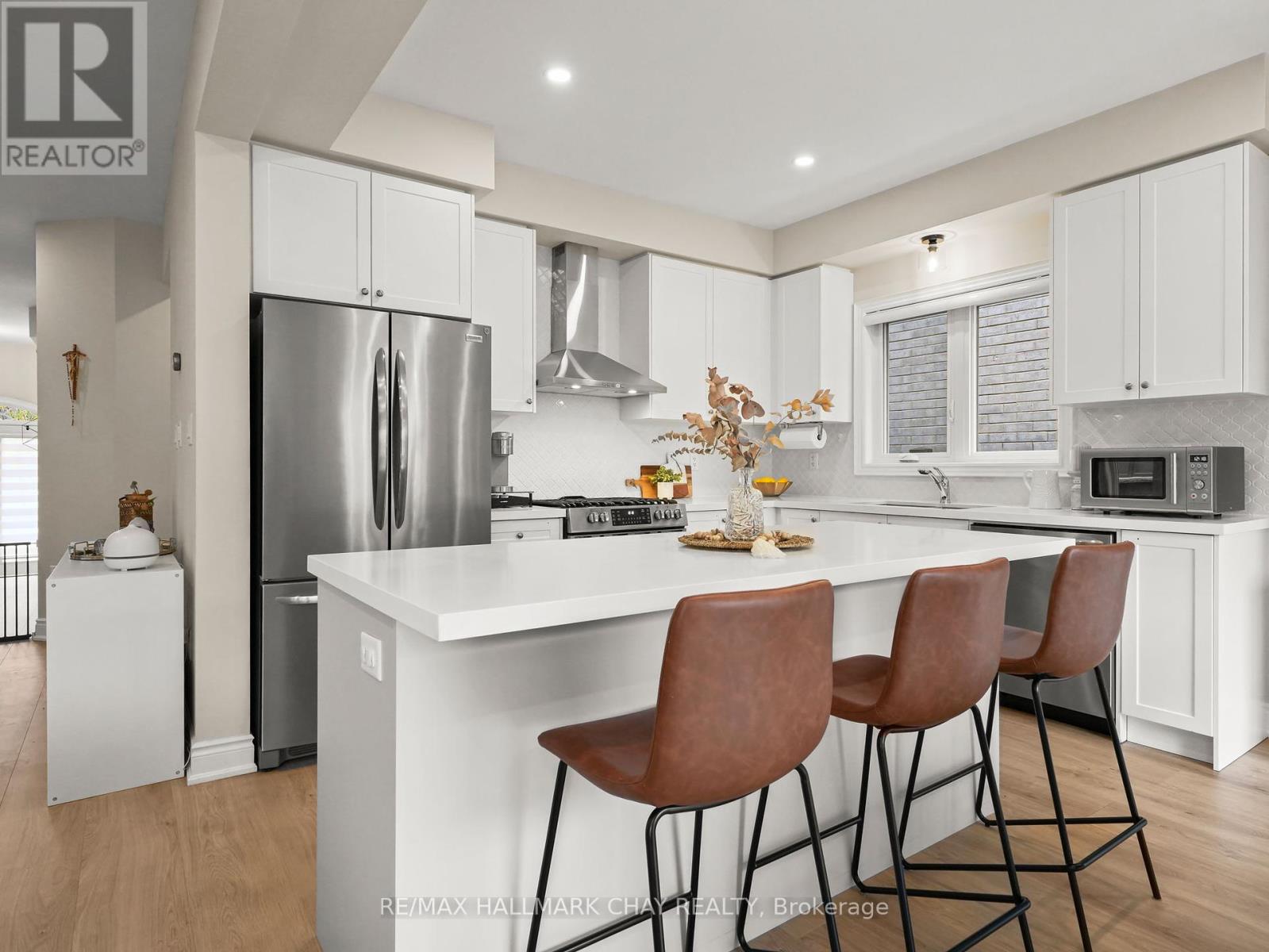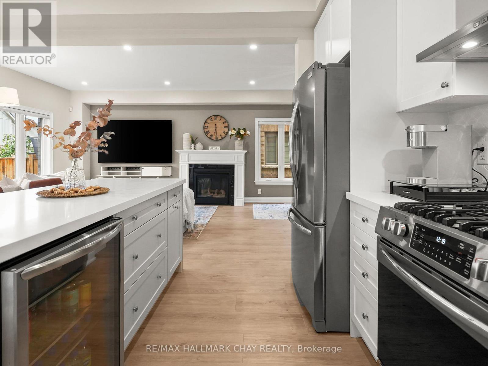 Welcome to this beautifully upgraded executive-style home in the sought-after Treetops community. From the moment you step inside, you'll notice the light engineered hardwood flooring that flows seamlessly throughout both levels, creating a bright and elegant atmosphere. The heart of the home is the custom kitchen, designed with an extended island featuring a built-in bar fridge, quartz countertops, and upgraded cabinetry. Every detail has been thoughtfully curated, including stylish new light fixtures, making this space perfect for both everyday living and entertaining. The upper level offers four spacious bedrooms, including a stunning primary retreat. Here you'll find a customized oversized walk-in shower, quartz-topped dual vanity, and a massive walk-in closet that is sure to impress. The additional bedrooms are generous in size, providing plenty of space for family or guests. Even the main floor laundry room has been elevated, showcasing modern backsplash and cabinetry for both style and function. The unspoiled basement offers endless potential, with a rough-in for an additional bathroom ready for your finishing touches. Outside, enjoy a fully fenced backyard that offers privacy and room to play or relax. All this in a prime location, just steps to Treetops Park, upcoming trails, schools, shopping, and a short drive to Highway 400 for easy commuting. This home combines thoughtful upgrades, modern finishes, and a fantastic family-friendly location truly move-in ready for its next owners. (id:51158)