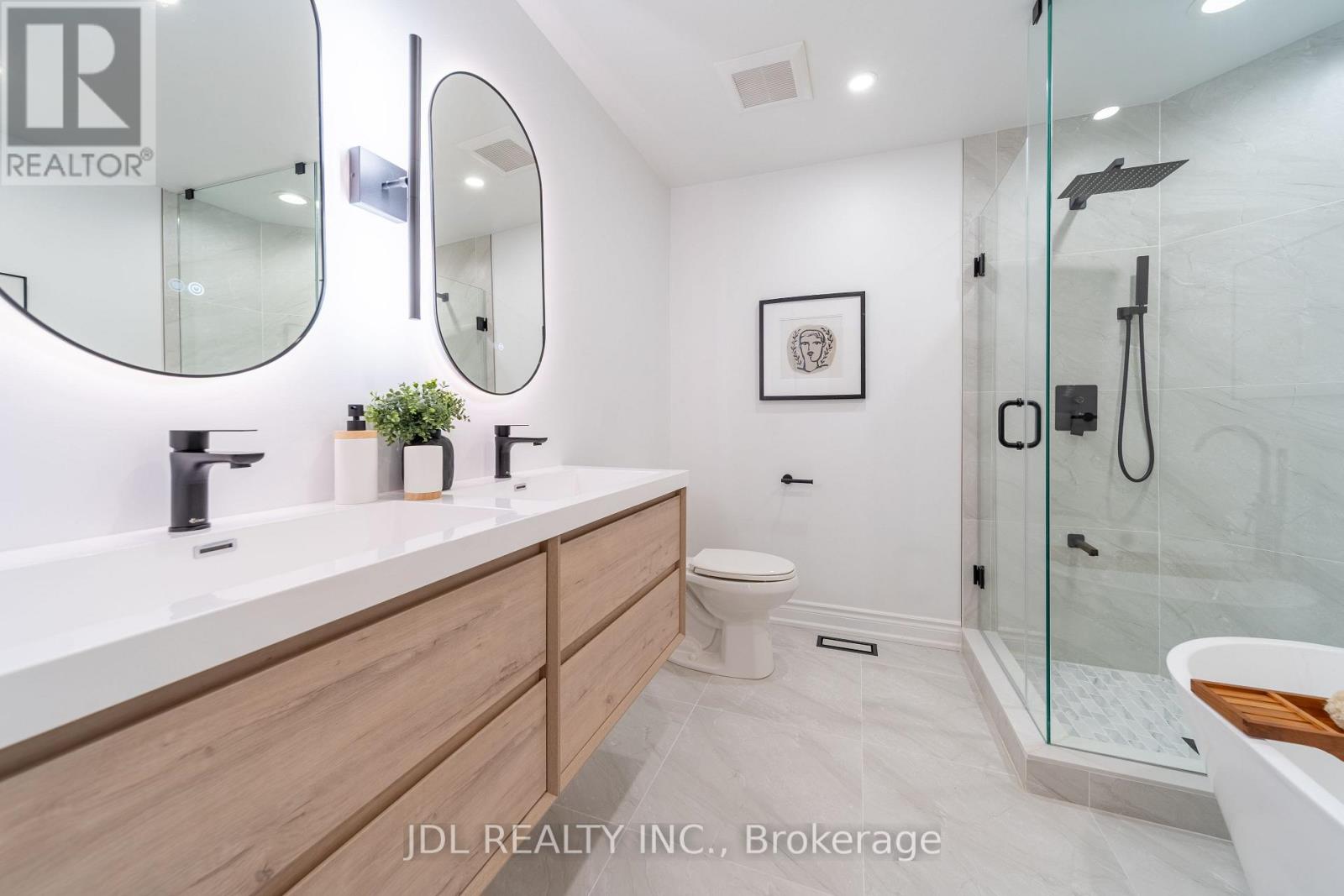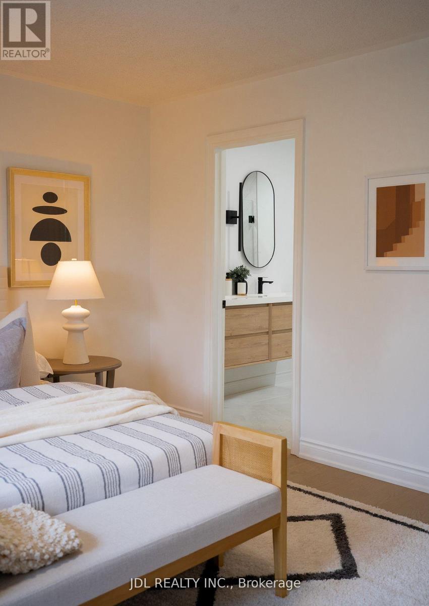 Fully renovated and move-in ready, this residence is situated in the vibrant and sought-after community of North York. Featuring a modern minimalist design, this bright and spacious south-north facing unit offers nearly 2,000 sqft. of thoughtfully planned living space, filled with abundant natural sunlight on every level. The open-concept living and dining area showcases 9-ft ceilings. The sunlit eat-in kitchen overlooks a private, tranquil backyard and has been fully upgraded with clean white cabinetry and brand-new quartz countertops, offering a fresh and timeless aesthetic. The home is finished with light-toned engineered hardwood flooring, and the stairs and railings have all been newly replaced, contributing to a cohesive and modern feel. The main floor powder room features a sleek floating vanity, while the second-floor bathroom has been fully renovated with large-format glossy tiles, a floating vanity with an LED mirror, and a glass-enclosed shower creating a bright and refined space. The primary ensuite is a luxurious retreat, complete with a freestanding bathtub, double floating vanities, dual LED mirrors, and recessed spotlights for enhanced brightness and comfort. The four-bedroom layout includes well-proportioned bedrooms, a convenient second-floor laundry room, and a versatile third-floor family room or home office also suitable as a fourth bedroom with private balcony access. Stylish comfort and exceptional attention to detail are evident throughout. Located just steps from the Edithvale Community Centre, parks, shops, restaurants, and transit, this home offers a rare blend of modern design, everyday practicality, and urban convenience. (id:51158)