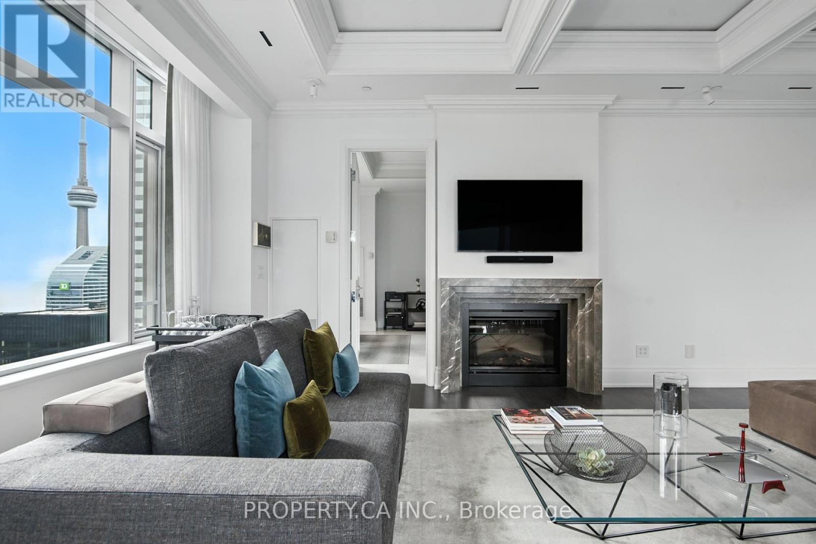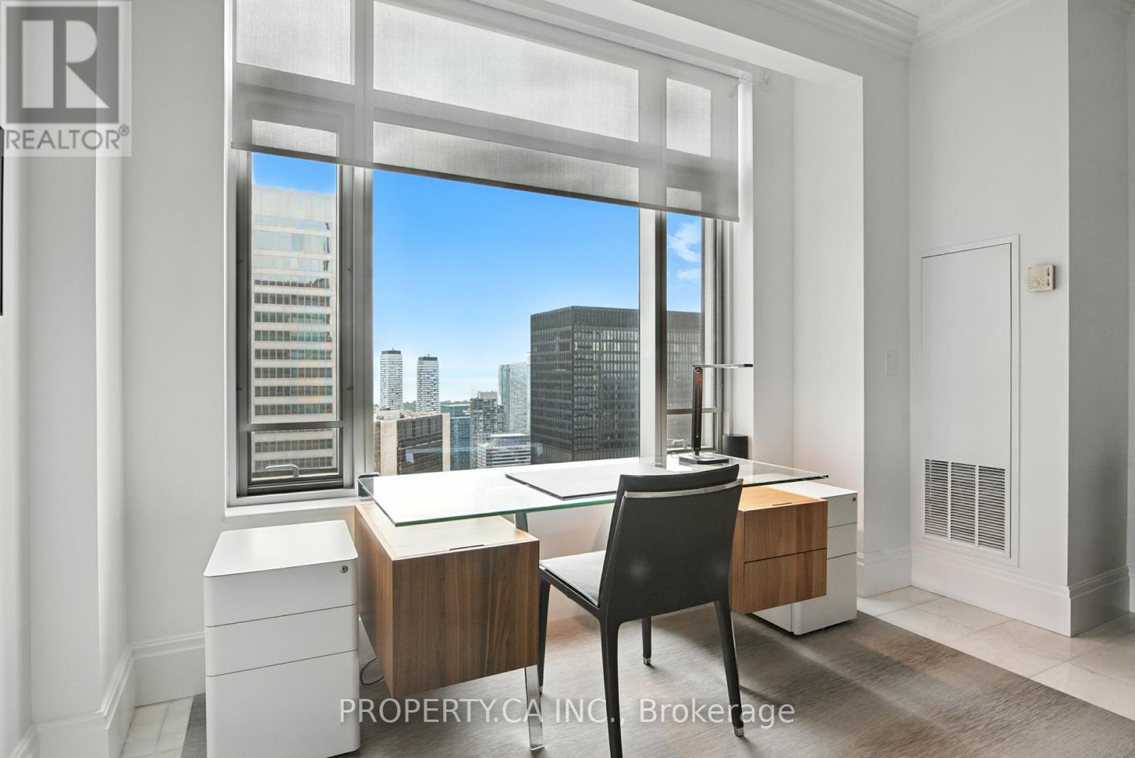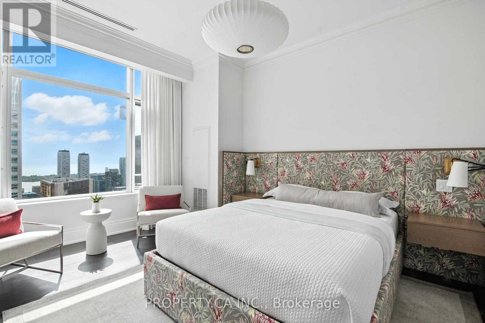 Live Exquisitely at The St. Regis Residences Toronto. Experience timeless elegance and world-class luxury in this professionally designed and decorated 2-bedroom southeast corner suite, offering an expansive 2,385 sq.ft. of refined living space. Situated in the heart of Toronto's Financial District, this residence combines classic architectural detail with modern sophistication and the unparalleled five-star services of the St. Regis. Step off the elevator into your private foyer and enter a light-filled home featuring soaring 10.5-foot coffered ceilings, curated artwork, and rare, unobstructed city and partial lake views. The home is professionally furnished with high-end pieces, creating a perfect blend of luxury, comfort, and timeless style. As the seasons change, cozy up by the fireplace and enjoy panoramic views of Toronto's skyline and lake an elegant urban retreat in the sky. During your downtime, enjoy access to the St. Regis's world-class amenities, including: Full-service 24-hour concierge and valet parking, State-of-the-art fitness centre and yoga studio, Infinity-edge indoor pool with sweeping skyline views, Spa & wellness centre, Housekeeping and room service available, Business centre, meeting rooms, and exclusive resident lounges, Louix Louis, the iconic two-storey grand bar and restaurant, just an elevator ride away. Whether entertaining or relaxing, this bright, meticulously maintained residence offers the ideal setting. The owner's suite is being offered for lease for the first time, providing a rare opportunity to reside in one of the most exclusive addresses in the city. Step outside and you're in the center of it all just moments from PATH access for all-weather connectivity, King and Bay Street financial core, Union Station and UP Express to Pearson Airport, Eaton Centre, First Canadian Place, Theatres, fine dining, Scotiabank Arena, Rogers Centre, and the Harbourfront. (id:51158)