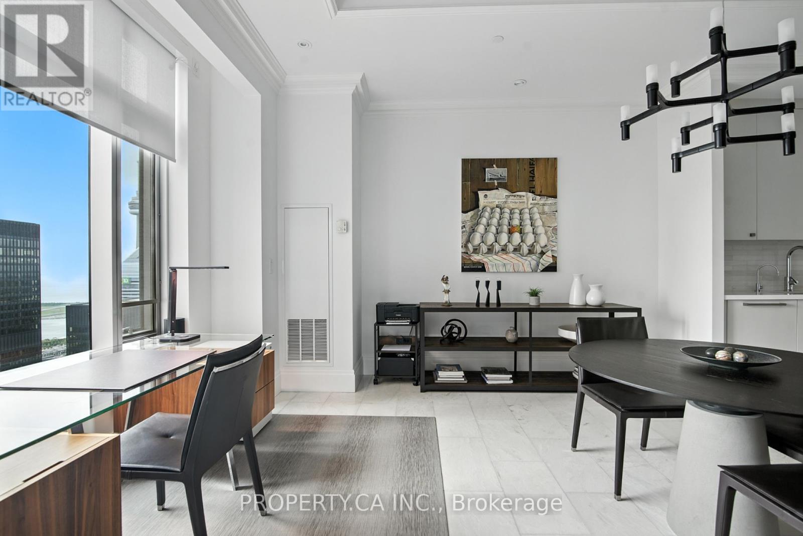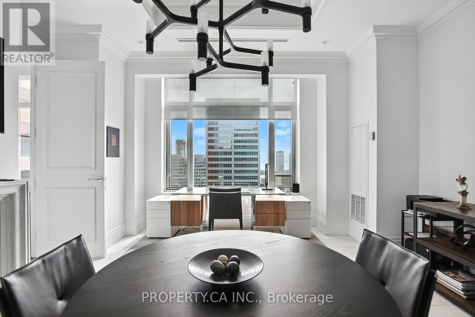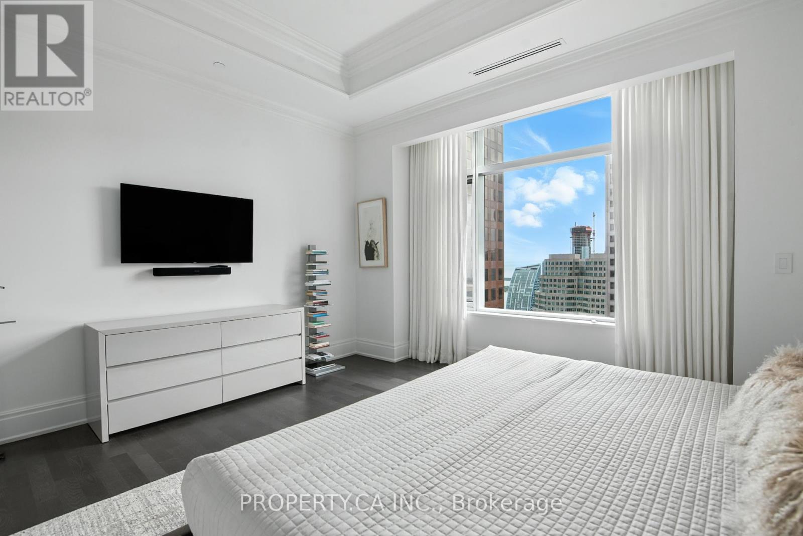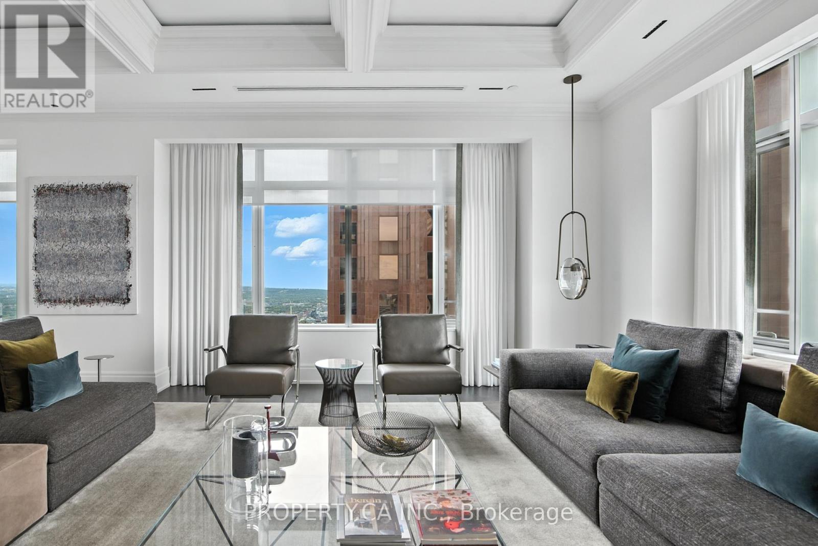 Live Exquisitely at The St. Regis Residences Toronto. Experience timeless elegance and world-class luxury in this professionally designed and decorated 2-bedroom southeast corner suite, offering an expansive 2,385 sq.ft. of refined living space. Situated in the heart of Toronto's Financial District, this residence combines classic architectural detail with modern sophistication and the unparalleled five-star services of the St. Regis. Step off the elevator into your private foyer and enter a light-filled home featuring soaring 10.5-foot coffered ceilings, curated artwork, and rare, unobstructed city and partial lake views. The home is professionally furnished with high-end pieces, creating a perfect blend of luxury, comfort, and timeless style. As the seasons change, cozy up by the fireplace and enjoy panoramic views of Toronto's skyline and lake an elegant urban retreat in the sky. During your downtime, enjoy access to the St. Regis's world-class amenities, including: Full-service 24-hour concierge and valet parking, State-of-the-art fitness centre and yoga studio, Infinity-edge indoor pool with sweeping skyline views, Spa & wellness centre, Housekeeping and room service available, Business centre, meeting rooms, and exclusive resident lounges, Louix Louis, the iconic two-storey grand bar and restaurant, just an elevator ride away. Whether entertaining or relaxing, this bright, meticulously maintained residence offers the ideal setting. The owner's suite is being offered for lease for the first time, providing a rare opportunity to reside in one of the most exclusive addresses in the city. Step outside and you're in the center of it all just moments from PATH access for all-weather connectivity, King and Bay Street financial core, Union Station and UP Express to Pearson Airport, Eaton Centre, First Canadian Place, Theatres, fine dining, Scotiabank Arena, Rogers Centre, and the Harbourfront. (id:51158)