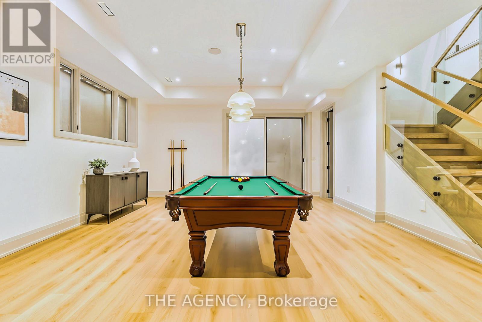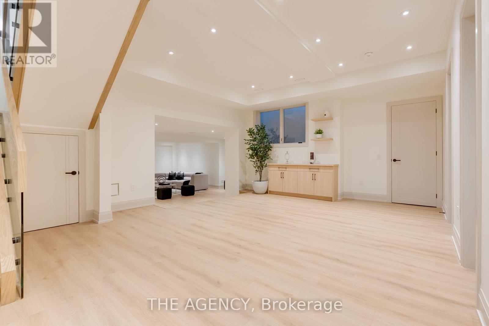 Welcome to 512 Weynway Court, a residence where scale, light, and refined craftsmanship define luxury living. Positioned on a 65 x 120 ft lot, this home features an East-facing front exposure that captures soft sunrise light, while the expansive rear windows welcome warm sunset views, creating a beautifully balanced atmosphere throughout the day.Designed with a centre-court style layout, the home is built around volume, symmetry, and sightlines that elevate every space. A dramatic 20-foot open-to-above foyer with heated large porcelain slabs sets the tone upon entry, complemented by a floating wood-and-glass staircase and Pella windows that draw natural light across the entire main level.The chef's kitchen showcases Sintered Stone surfaces, Sub-Zero and Wolf appliances, dual Bosch dishwashers, and custom millwork-flowing seamlessly into the spectacular 20-foot open-to-above family room, a grand yet inviting space defined by light, height, and contemporary elegance.Car enthusiasts will appreciate the oversized, high-ceiling garage, perfect for lifts or premium vehicles, along with a rare covered rear carport, ideal for a luxury car, boat, or jet ski-an uncommon offering in this prestigious neighbourhood.Every bathroom throughout the home features heated floors, adding a layer of comfort and sophistication. Upstairs, the primary suite offers a spa-inspired ensuite with large luxurious heated floor slabs, a smart toilet, freestanding tub, Grohe fixtures, and a beautiful walk-in closet. Additional bedrooms include elegant finishes, generous windows, and custom built-ins.The lower level features 10-foot ceilings, a full walk-up, a wet bar, a bedroom with semi-ensuite, and an impressive media room constructed beneath the garage-a premium architectural upgrade that creates exceptional, sound-buffered space.Every detail has been intentionally curated.512 Weynway Court is an elevated expression of luxury, design, and lifestyle in one of Oakville's most coveted enclaves. (id:51158)