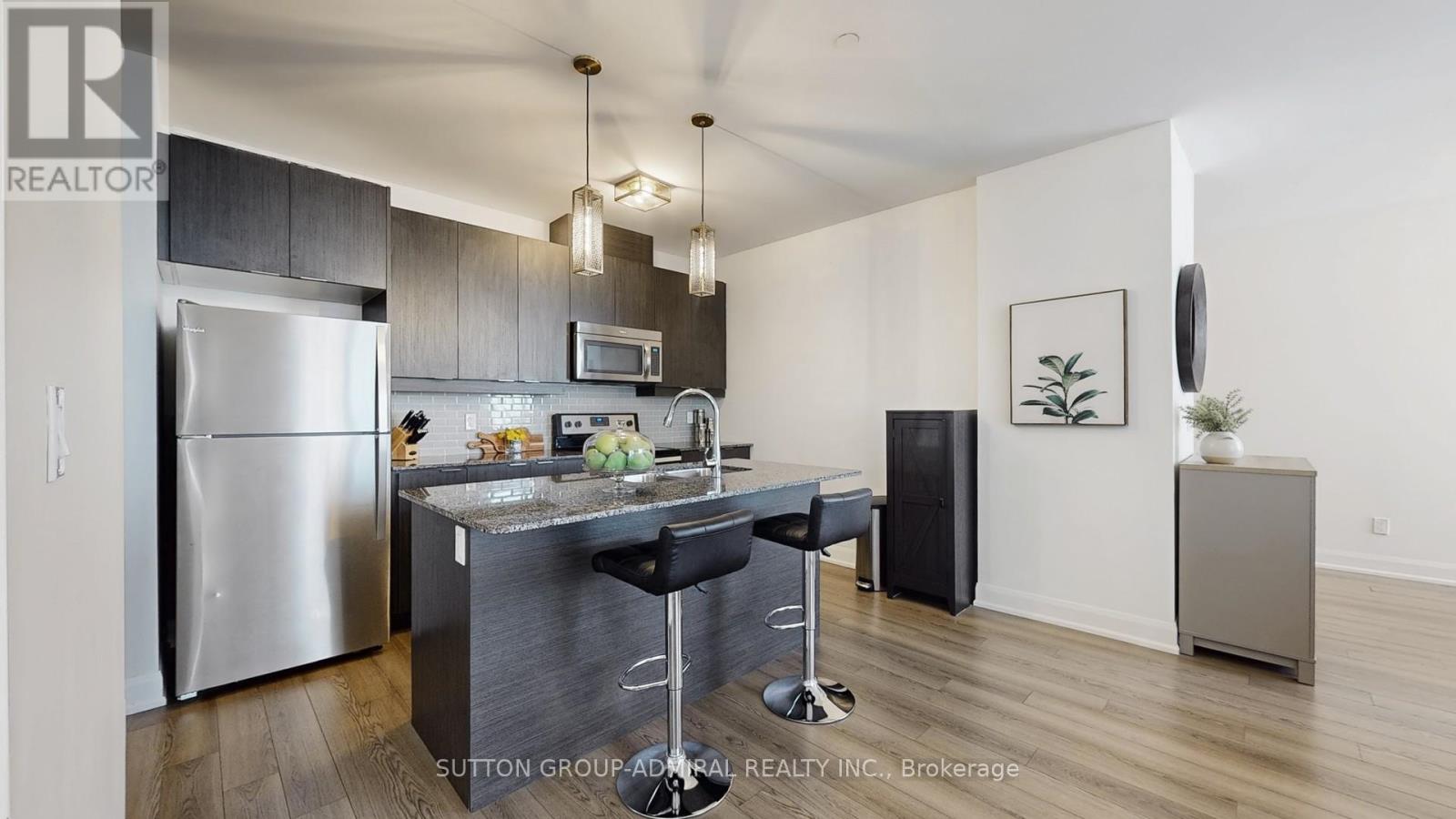 Enjoy Urban Living At Expo II - A Stylish 1+1 Bed, 1 Bath Condo Offering Comfort, Convenience, And An Exceptional Lifestyle In The Heart Of Vaughan. This Thoughtfully Designed Unit Is Part Of A Modern Building That Boasts Approximately 20,000 Sq Ft Of Premium Amenities, Including A 24-Hour Concierge, An Indoor Pool, Fully Equipped Gym, Yoga Studio, Sauna And Change Rooms, Games Room, Party Room With Kitchen, Outdoor Patio With Bbqs, A Children's Playroom, And A Furnished Guest Suite. Offering Over 900 Sq Ft Of Living Space And Boasting Granite Countertops, Laminate Flooring, And A West-Facing Balcony Bringing In Tons Of Natural Light. Open Concept Kitchen With Integrated Stainless Steel Appliances, Sleek Dark Oak Cabinetry, And A Centre Island Complete With Additional Storage Cabinets, Double Under-Mount Sink And A Built-In Dishwasher. Retreat To The Primary Bedroom With A Large Walk-In Closet And Floor-To-Ceiling Windows For Optimal Natural Light. Bonus!! A Dedicated Parking Spot & Locker In P2. Additional Features Include Visitor Parking, Individual Climate Control, And Access To On-Site Conveniences Such As A 24-Hour Store, Medical Clinic, And Dental Office. Minutes Away From VMC Subway Station, Highways 400, 401 & 407, Making Commuting A Breeze. Just Steps From Cortellucci Square, The First Public Park In The VMC - This Vibrant Area Features A Playground, Splash Pad In The Summer, And A Skating Loop In The Winter, Making It An Ideal Setting For Urban Living With A Touch Of Nature. (id:51158)