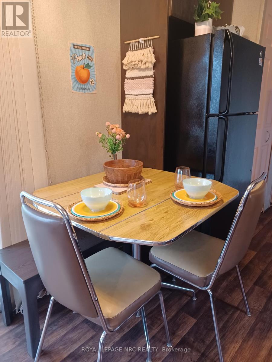 Exceptional Investment Opportunity in Niagara-on-the-Lake Introducing Unit 514 at 1501 Line 8 Road, a delightful and fully-furnished resort cottage that offers both comfort and rental potential. Situated in the sought-after Vine Ridge Resort, this two-bedroom, one-bathroom cottage is the perfect retreat for relaxation or investment. The resort operates from May 1st to October 31st and features a variety of impressive amenities, including an inground pool, splash pad, multi-sports courts, picnic areas, playground, Kids Club, and convenient on-site laundry facilities.Upon entering, you will be greeted by a bright and spacious interior with an abundance of natural light. The open-concept design is highlighted by neutral colours throughout, complemented by modern laminate flooring and stylish lighting fixtures. The well-equipped kitchen boasts laminate countertops, black appliances, ample storage, and a breakfast bar with seating for two perfect for casual dining. The living room is generous in size and offers vaulted ceilings, along with direct access to the expansive deck.The two bedrooms have been thoughtfully designed, including a primary bedroom with plentiful closet space and a second bedroom with inventive sleeping arrangements, featuring a bunk bed. The four-piece bathroom adds further convenience and comfort to the space.The oversized deck is ideal for both entertaining and unwinding, featuring a hardtop awning, an outdoor dining set, Muskoka chairs, and a fire pit an excellent place to enjoy relaxing evenings outdoors.This remarkable location is nestled in the heart of Wine Country, just minutes away from Niagara Falls, Niagara-on-the-Lake, local wineries, shopping outlets, and golf courses. Whether you are seeking a peaceful getaway or a lucrative investment property, this cottage is truly a unique opportunity. Do not miss your chance to own this exceptional vacation home! Fees Paid for the season. Nothing to do but enjoy! (id:51158)