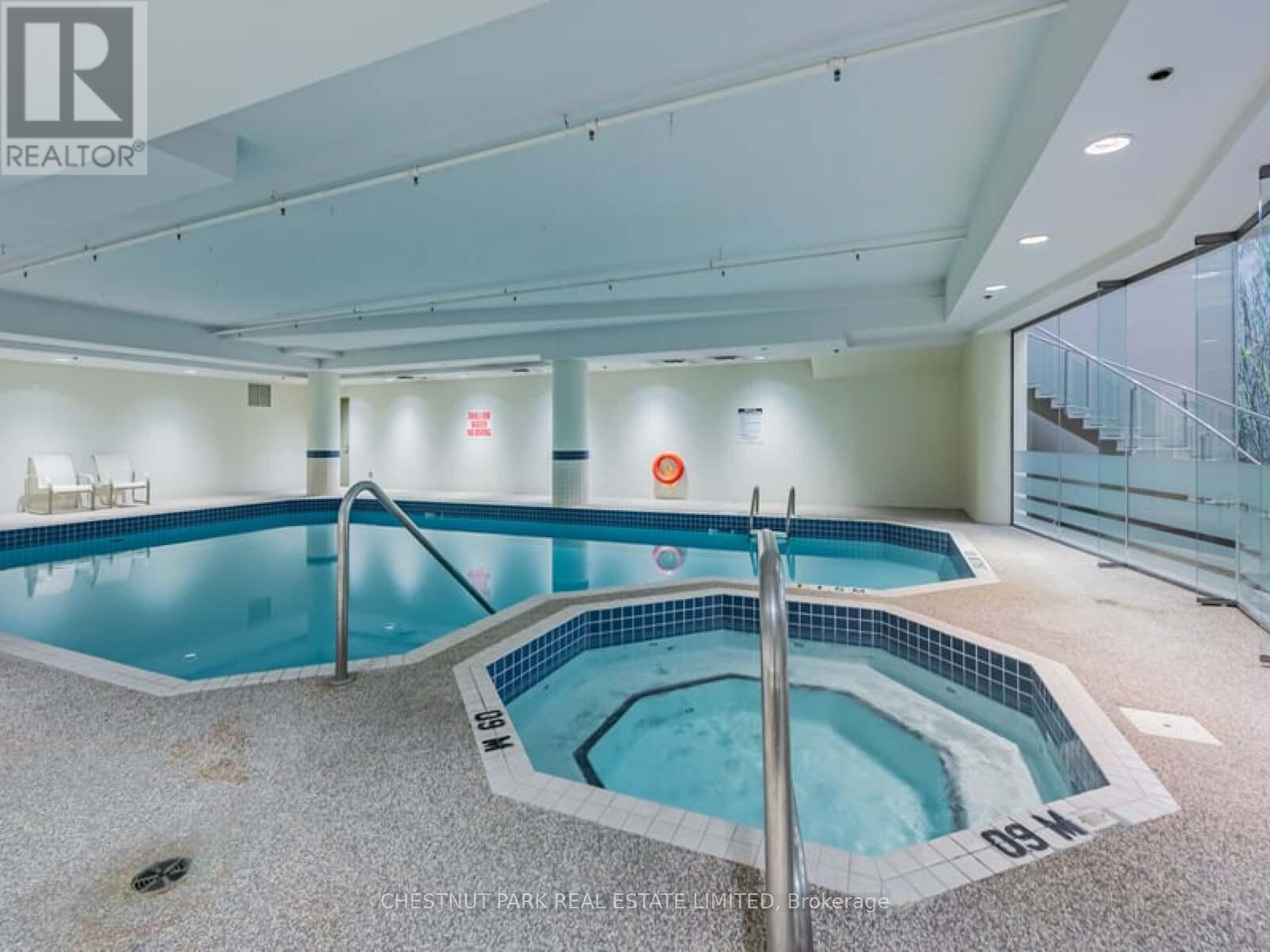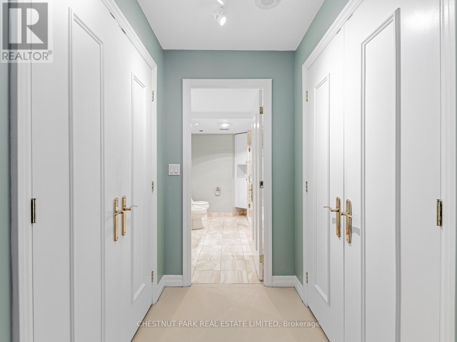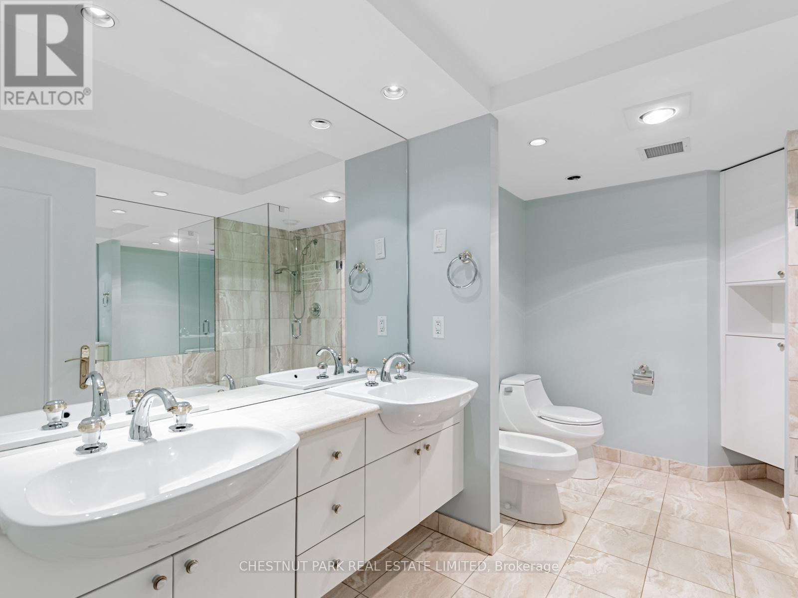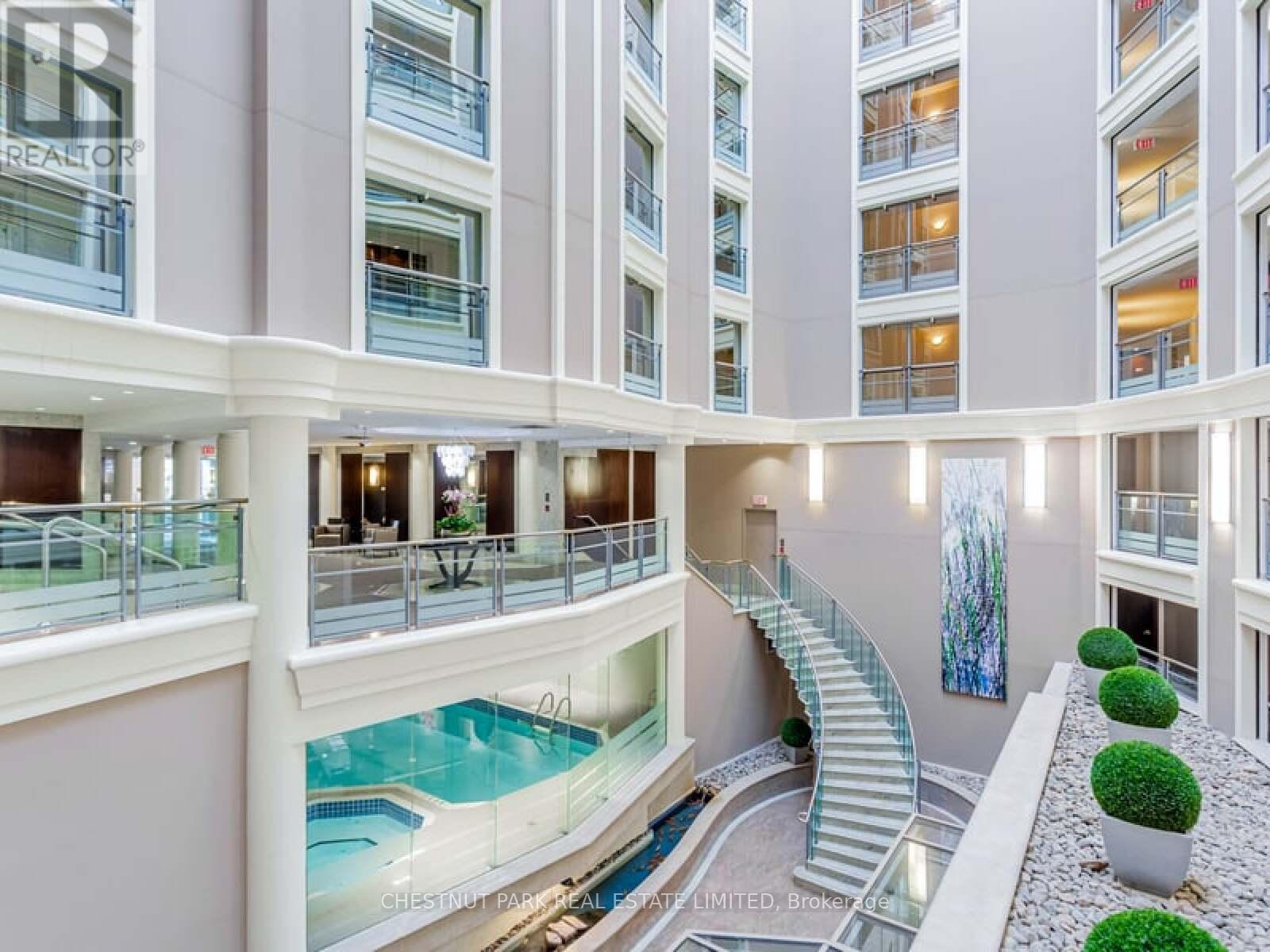 Spacious 1716 SF 2 bedroom, 2 bath condo in fabulous Lawrence Park. Rare offering, one owner, immaculately kept residence. Best exposure in the building. Enjoy serene views of green from east facing windows. This suite has space and scale for easy living. The eat-in kitchen is practical and well laid out, complete with granite counters, a large pantry and breakfast area with glass double French doors leading to the dining room. The elegant dining room easily holds a table for 10 or more and overlooks the living room, which has a gas fireplace (as is) and a patio door walk out to a 5 '7" x 11' 10" balcony with peaceful, treed views. The open concept den completes the space, providing wrap-around windows for light and views. The generously sized primary bedroom has two sets of double closets with organizers, a large east facing window overlooking trees and a marble-floored 6-piece ensuite bath with additional storage. The desirable split bedroom plan has the second bedroom easily closed off from the living space and is well defined in the home, boasting a large layout with built-ins, a closet with organizers, window and access to a 4-piece bath with marble flooring and storage. Includes parking and private locker room with door. An outstanding and sought-after building offering a resort-like experience with a skylit atrium and indoor pool, 24/7 concierge, exercise room, party/meeting room, sauna, rooftop garden with BBQs, library and visitor parking. There is an on-site property manager as well as a building superintendent. Superbly located within walking distance to excellent shops, restaurants, transit, Sheridan Nursery, Lawrence Park Ravine system, Sporting Life, and mins to 401. (id:51158)