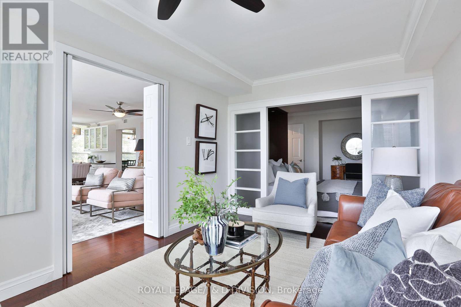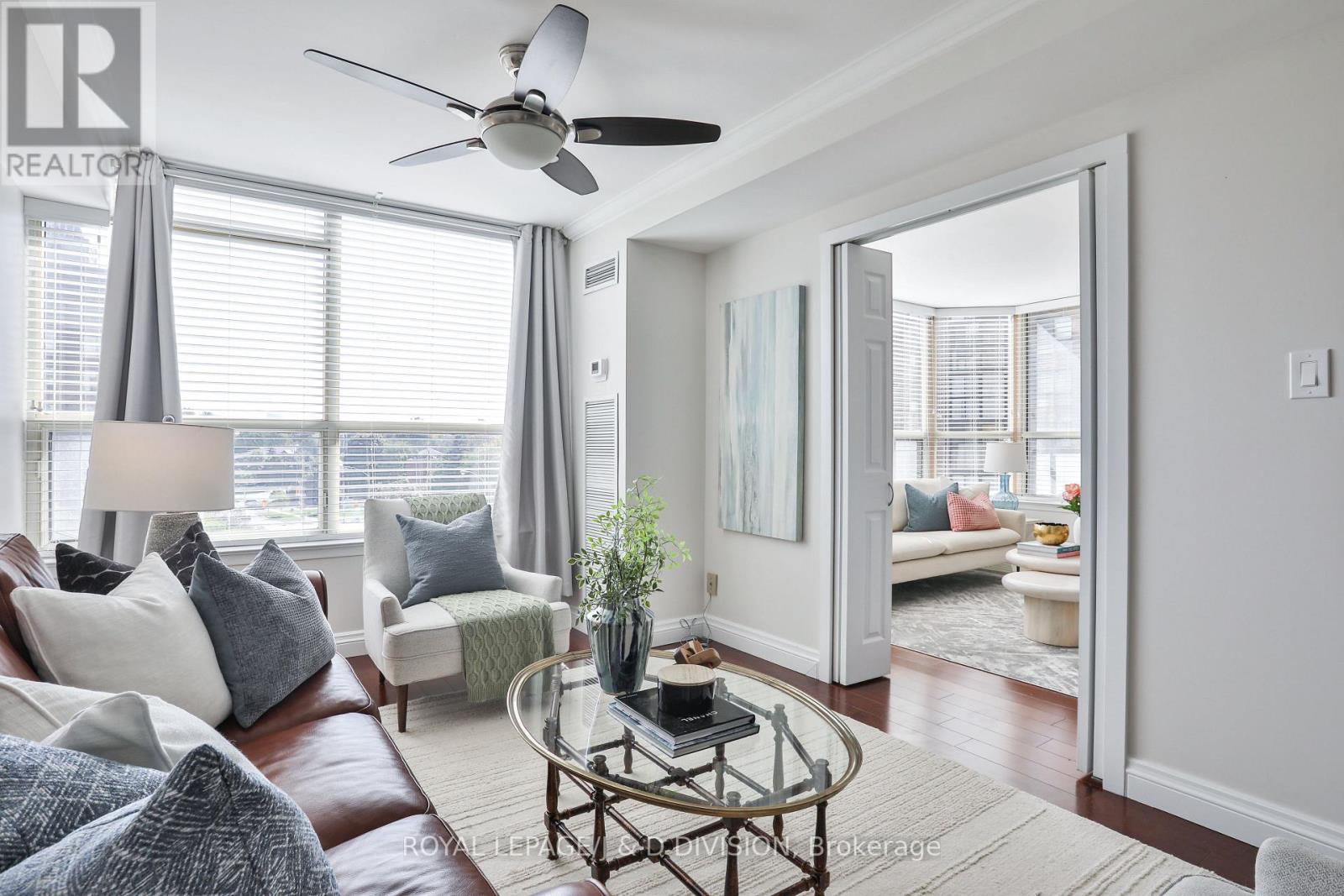 $1,506.29 MonthlyRarely available, this southwest-facing corner suite in a coveted Tridel community offers over 1,500 SqFt of refined living. Sunlit interiors showcase a renovated kitchen with granite counters, breakfast room and full pantry, while open living and dining spaces feature hardwood floors, a custom built-in dining room buffet,and wraparound windows with sunny, treetop views. The versatile family room serves as an entertainment room or office and opens to a second bedroom with Japanese-style privacy doors and concealed fold-away Murphy bed (currently open). The primary retreat includes two walk-in closets, expansive windows and 5-piece ensuite. Additional highlights include ensuite laundry with full size stacked front load washer and dryer, a generous balcony, two parking spots (tandem), private locker and access to updated amenities: gym, party room, billiards, library, sauna, and outdoor pool. With utilities included and a premier location near parks, Avenue Road fine shops, upscale dining, TTC and Hwy 401, this turnkey residence epitomizes sophisticated urban living. (id:51158)