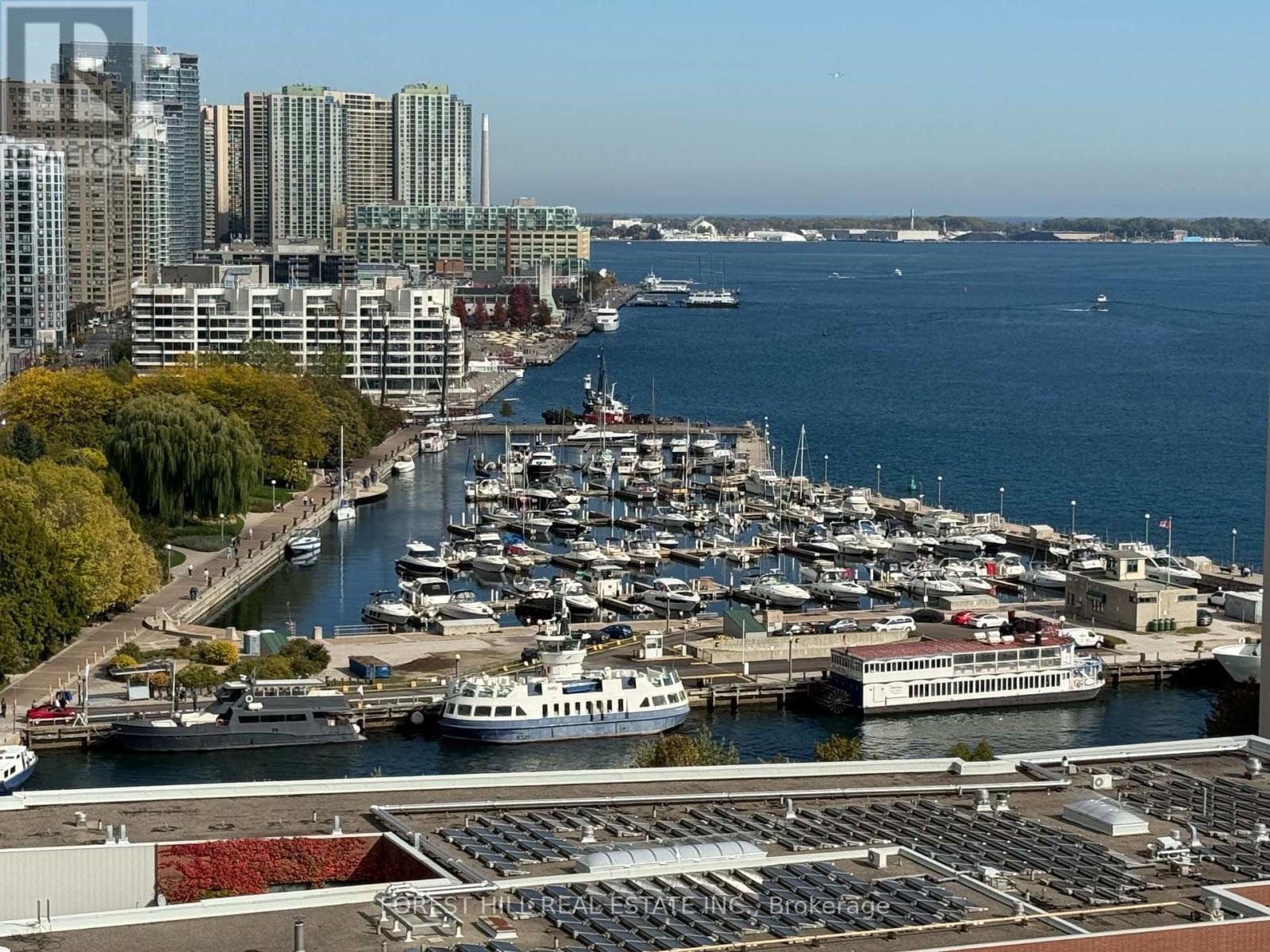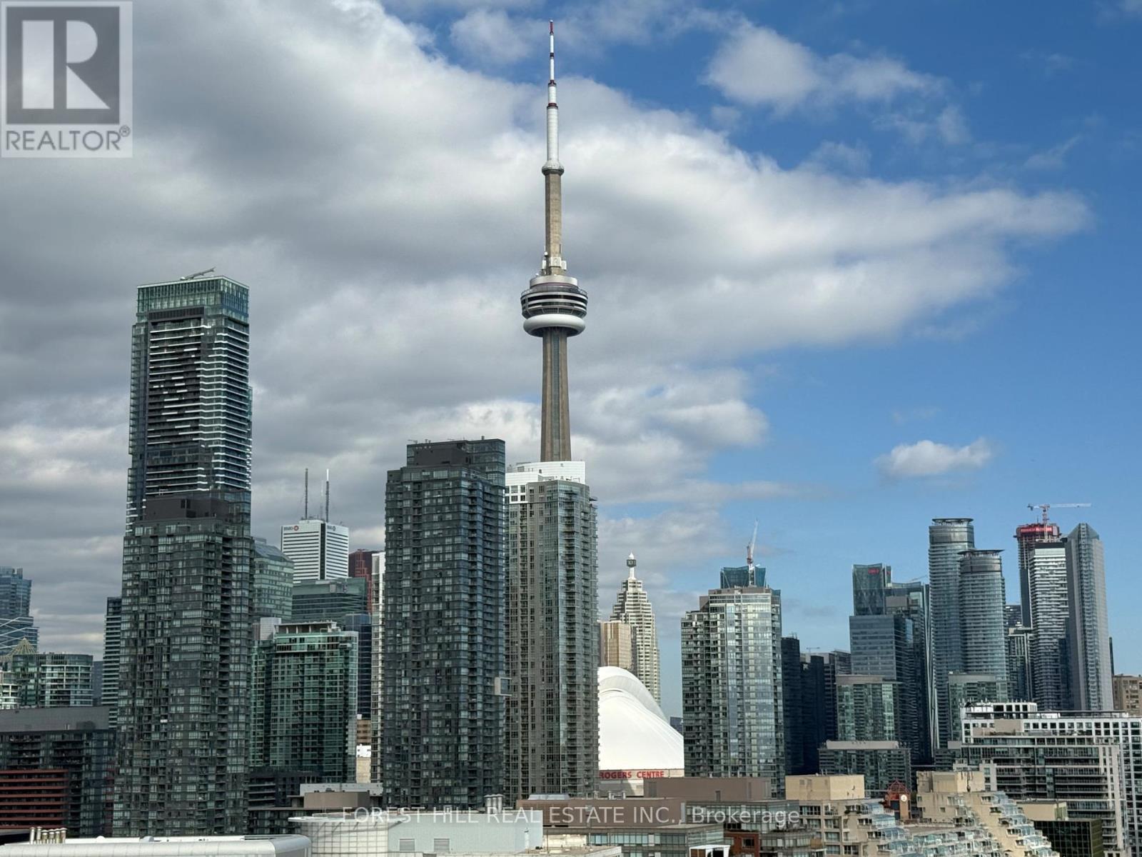 $782.55 MonthlyExperience luxury living in this stunning waterfront 1+1 Bdrm unit offering sunny south west exposure and views. Situated in Toronto's sought-after waterfront community, it has a functional layout with large balcony which is the perfect height to use all four seasons and with a beautiful view of a park across the road. This residence is an ideal urban retreat, with a range of top-tier amenities designed for convenience and lifestyle. Enjoy access to a 24-hour concierge, a fully equipped gym, and a spectacular rooftop patio with panoramic city and lake views. Entertain guests in the modern party room, and take advantage of the visitor parking when friends come to visit. The surrounding area offers scenic waterfront trails for outdoor enthusiasts. Located just steps from the TTC, commuting is a breeze, and Billy Bishop Airport is just minutes away for easy travel.Easy access to the HWY too for commuters. Both bedroom and living/dining rooms are bigger than most nearby city buildings. Parking and locker are both included and the maintenance fee includes all utilities including hydro! (id:51158)