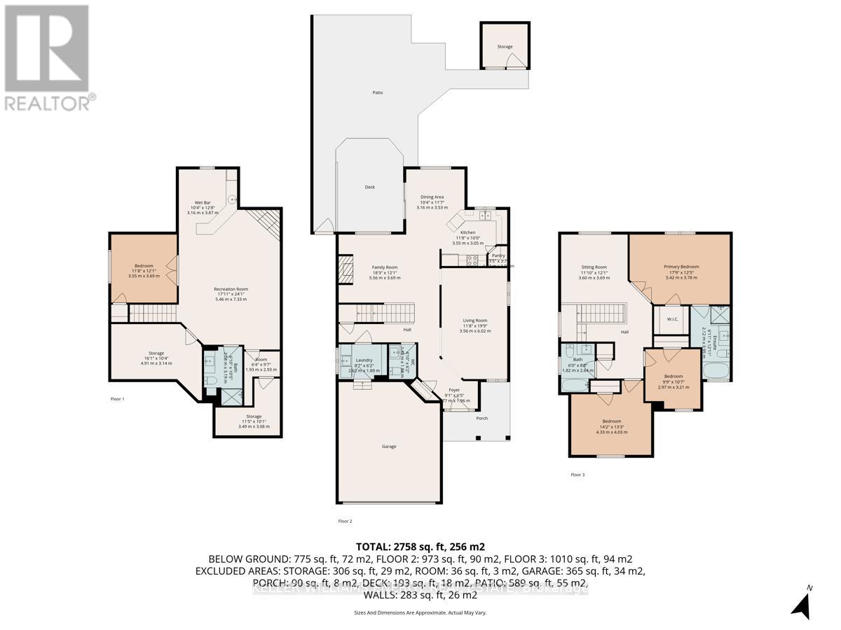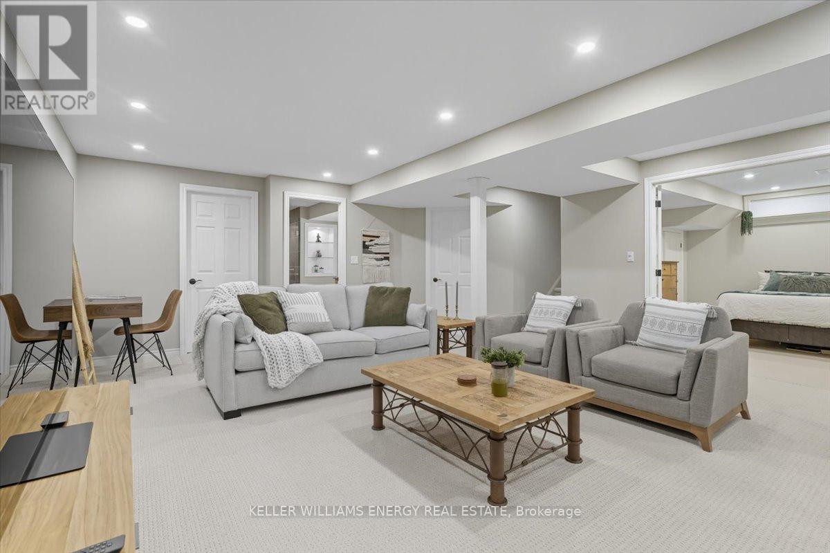 Shows 10+ Kedron Park beauty backing onto the golf course private and tranquil, this home is move-in ready with thousands spent on upgrades and ~2,800 sq. ft. of finished living space.The open-concept main floor features 9 ceilings, hardwood flooring, and a bright layout that flows seamlessly from living to dining to family space. The kitchen overlooks the backyard, perfect for entertaining or quiet evenings. Upstairs are three spacious bedrooms, including a primary with a generous ensuite, plus recently updated broadloom (~2020), and a secondary den/media area. The fully finished lower level adds a 4th bedroom, a large rec room with gas fireplace, and a full washroom ideal for extended family or guests.Notable updates include: New furnace and A/C (2025) with transferable warranty Shingles (~2018) Front, garage, and sliding doors replaced (2018) Enjoy two gas fireplaces (main and lower level), fresh finishes throughout, and a backyard retreat that feels like cottage living in the city. (id:51158)