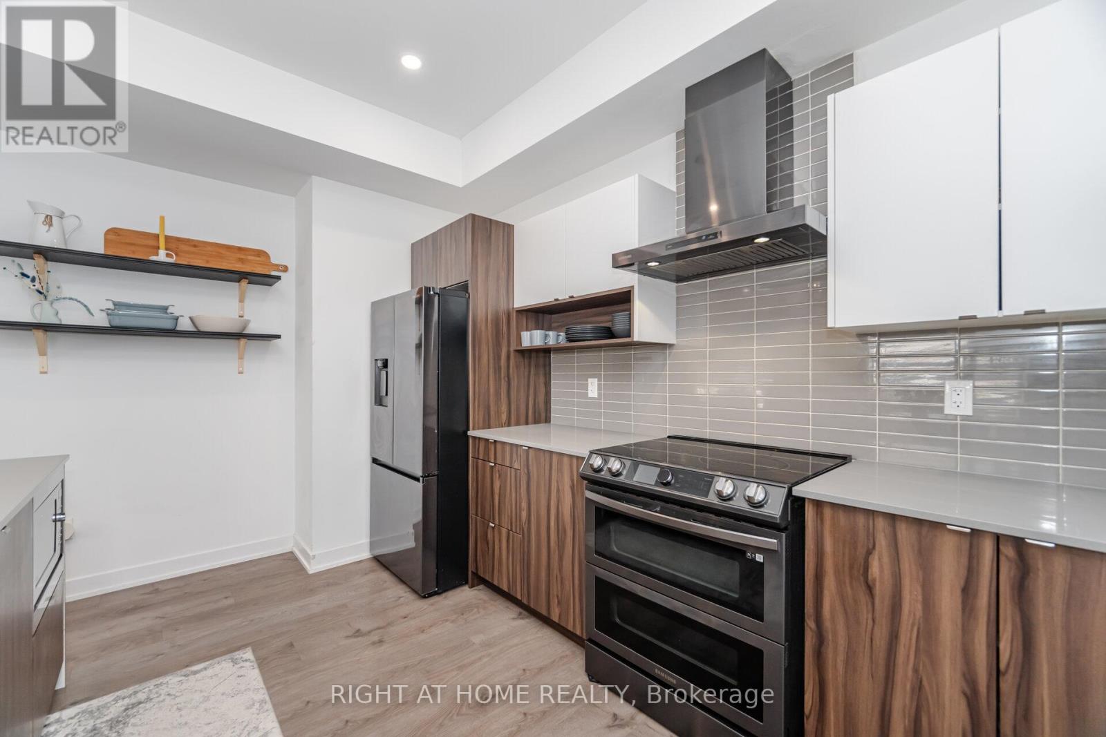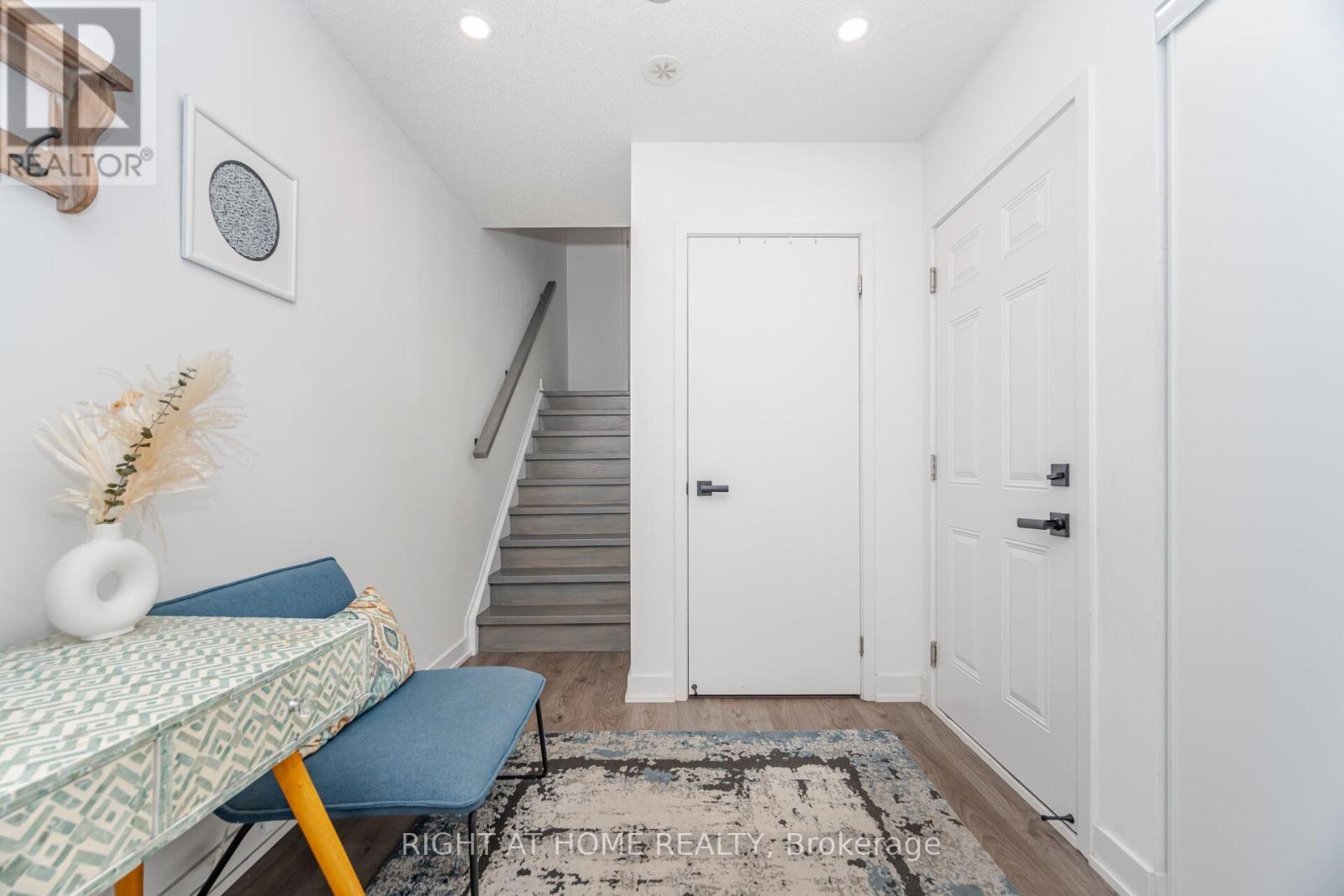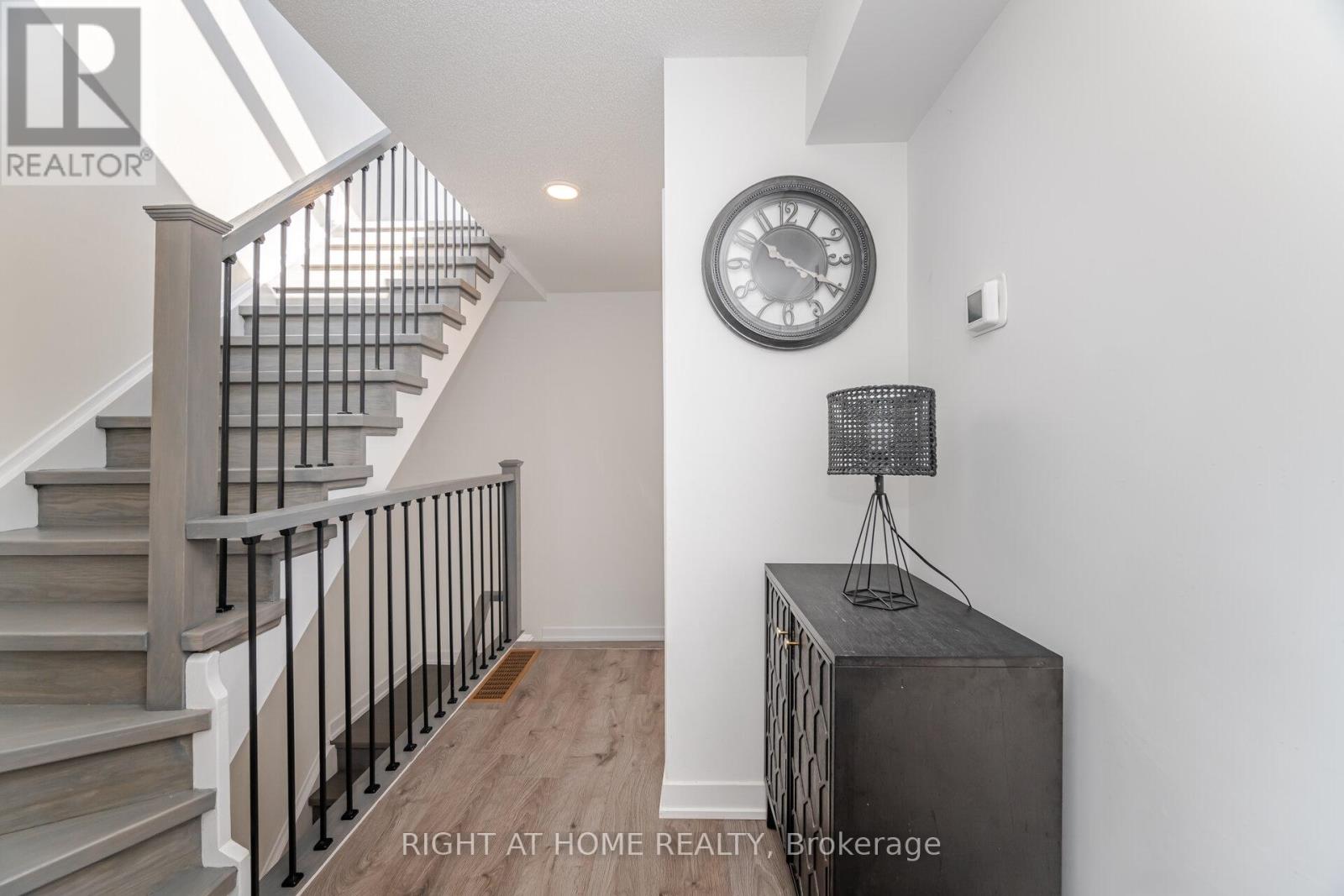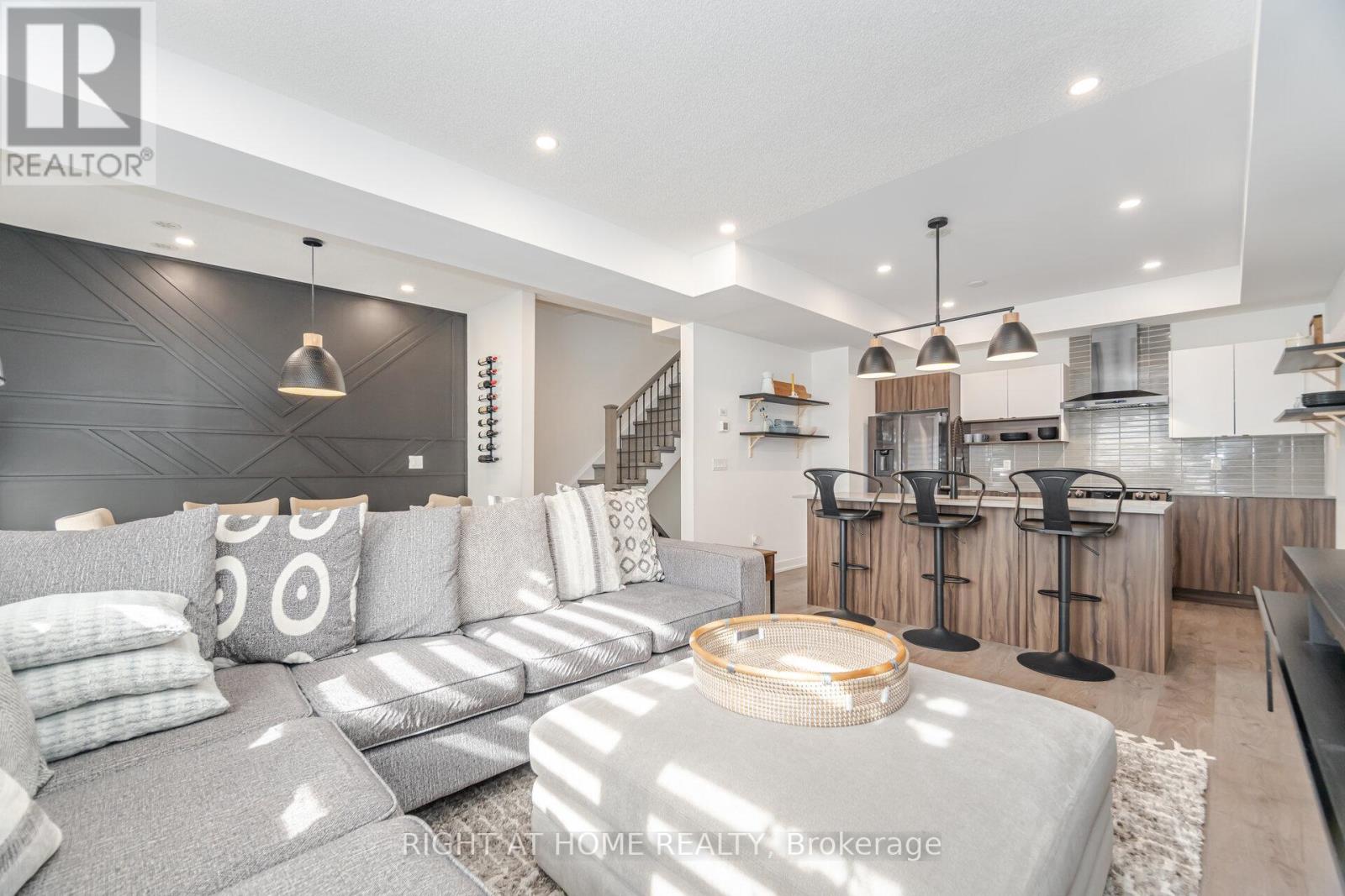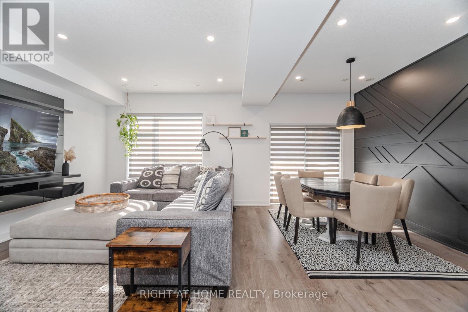 $334.21 Monthly*View Tour* Welcome to Station West a modern 3-storey townhome, perfectly located just minutes from the lake, parks, schools, and Aldershot GO Station. This upgraded 2 bedroom, 3 washroom 1,400+ sq. ft. of stylish, low-maintenance living space in one of Burlington's most desirable and commuter-friendly locations. This home has everything you're looking for, a rare hardwood oak staircase with black iron spindles from top to bottom. The potlights and upgraded light fixtures throughout bring a modern touch. Wide plank laminate flooring flows throughout the home, where large windows and a walkout to your private balcony flood the space with natural light. The second floor features a beautifully designed open-concept layout, with spacious living and dining area with a feature wall design that's perfect for entertaining and easy to furnish to suit your style. Step out to an additional balcony from the dining area for even more outdoor space. The kitchen has quartz countertops, a designer backsplash, upgraded black stainless steel appliances, and a large island with breakfast bar, built-in microwave, and built-in hood range. A upgraded 2-piece powder room is also located on this level. The third floor includes bright bedrooms, a full 3-piece bathroom, and bedroom-level laundry for added convenience. The top level boasts an oversized private rooftop terrace with stunning views of Burlington's. (id:51158)