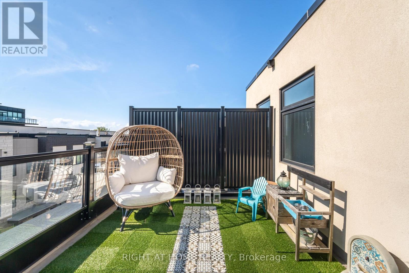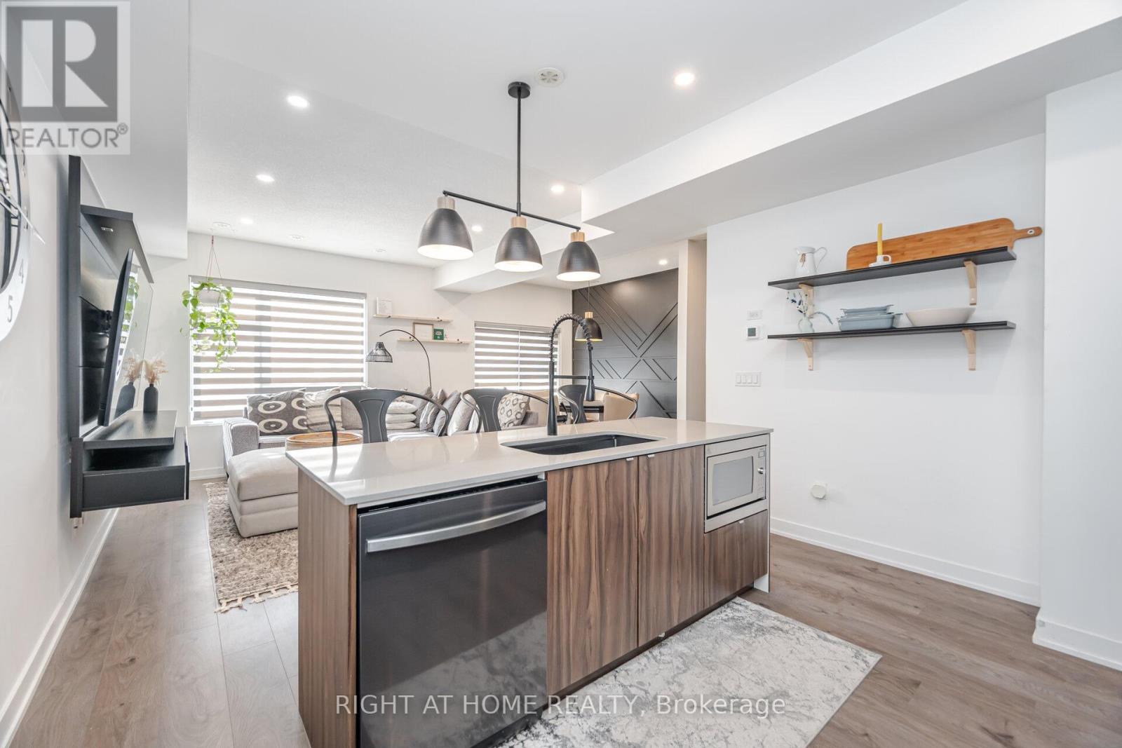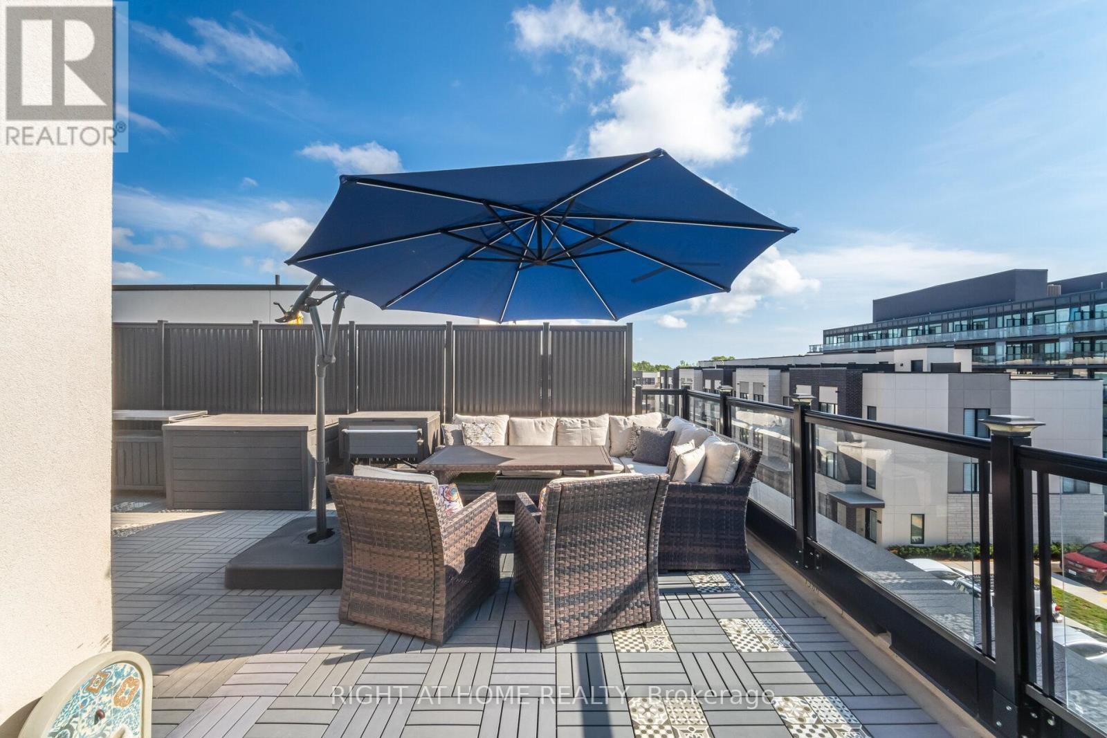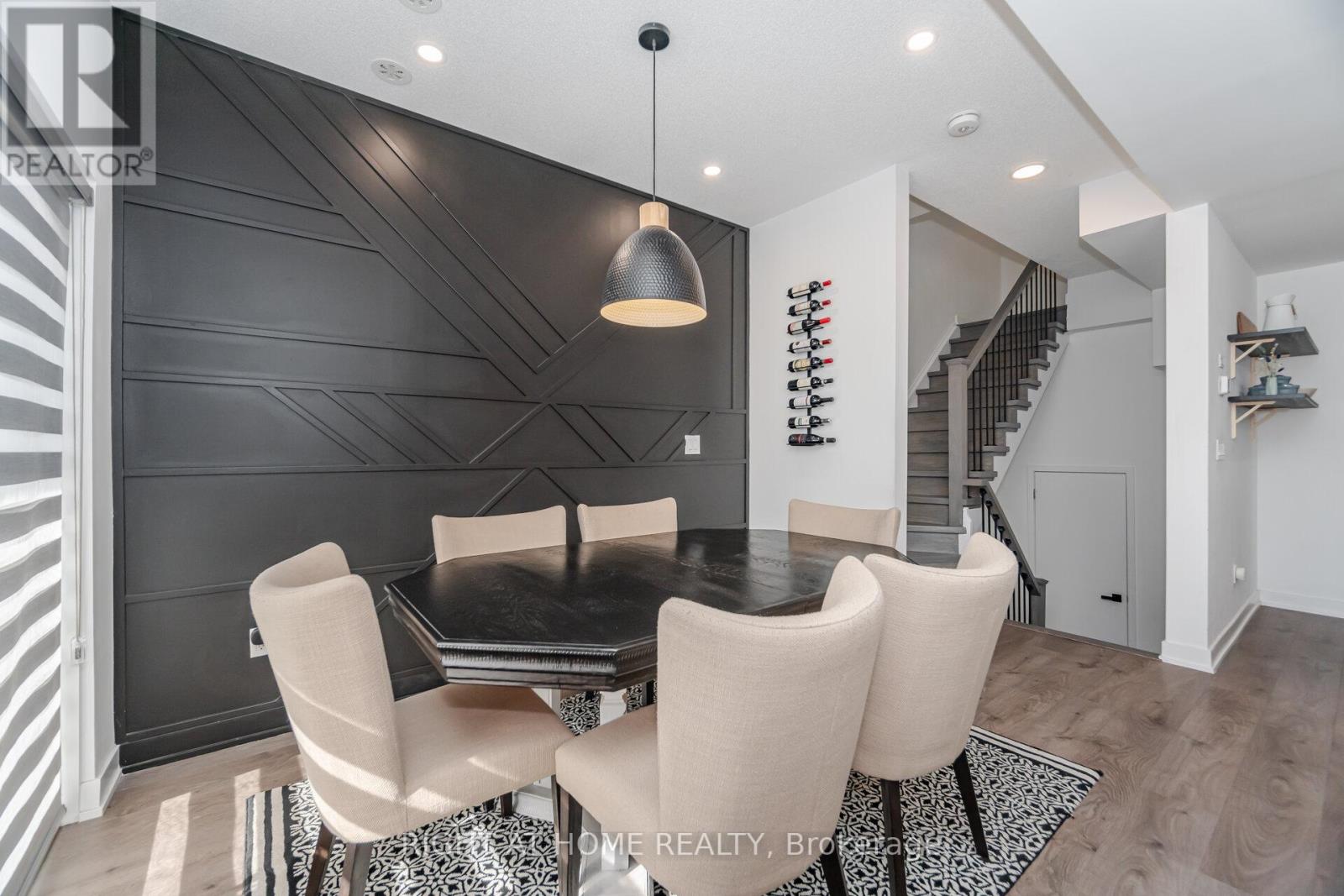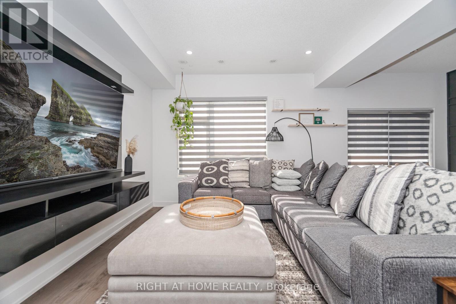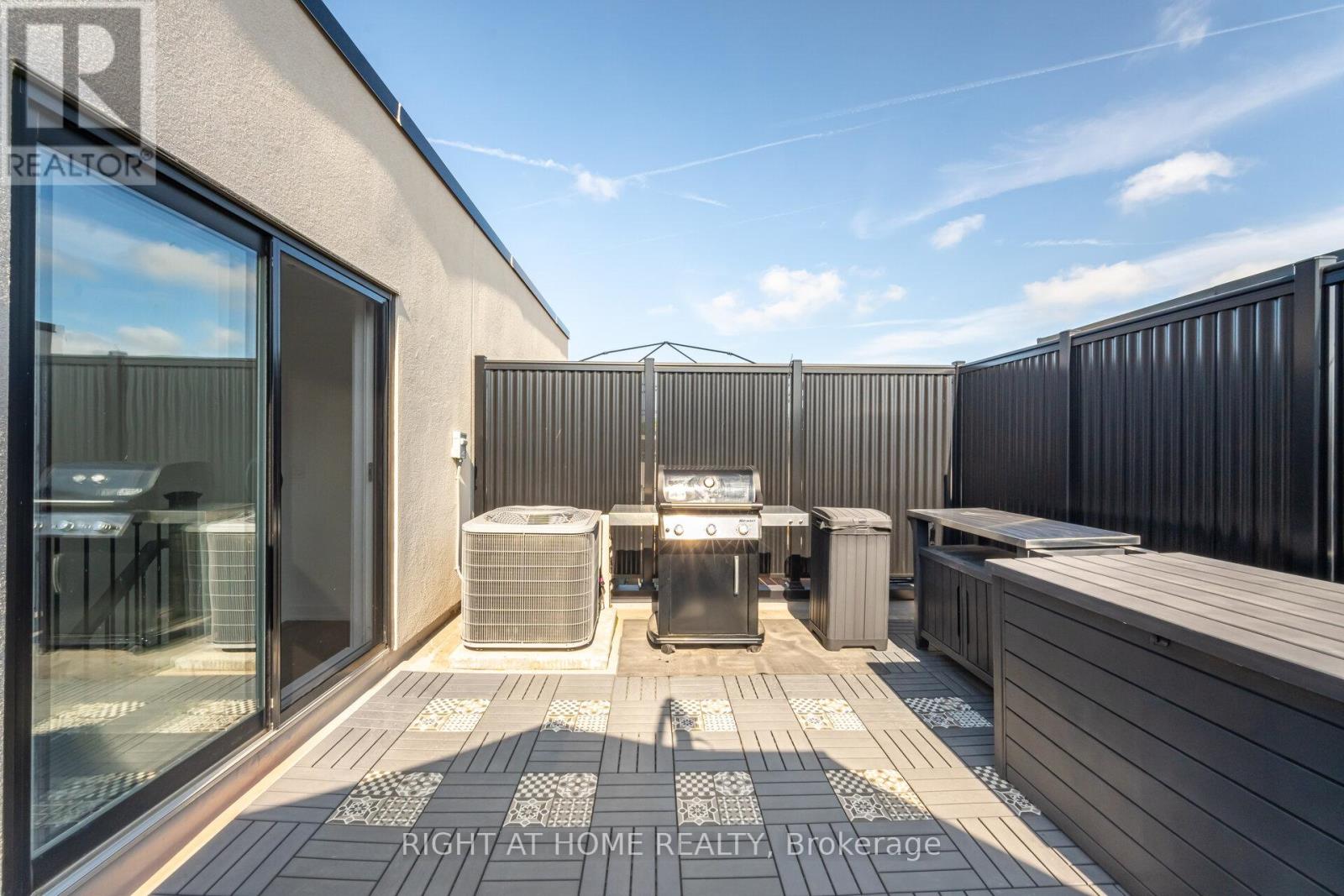 $334.21 Monthly*View Tour* Welcome to Station West a modern 3-storey townhome, perfectly located just minutes from the lake, parks, schools, and Aldershot GO Station. This upgraded 2 bedroom, 3 washroom 1,400+ sq. ft. of stylish, low-maintenance living space in one of Burlington's most desirable and commuter-friendly locations. This home has everything you're looking for, a rare hardwood oak staircase with black iron spindles from top to bottom. The potlights and upgraded light fixtures throughout bring a modern touch. Wide plank laminate flooring flows throughout the home, where large windows and a walkout to your private balcony flood the space with natural light. The second floor features a beautifully designed open-concept layout, with spacious living and dining area with a feature wall design that's perfect for entertaining and easy to furnish to suit your style. Step out to an additional balcony from the dining area for even more outdoor space. The kitchen has quartz countertops, a designer backsplash, upgraded black stainless steel appliances, and a large island with breakfast bar, built-in microwave, and built-in hood range. A upgraded 2-piece powder room is also located on this level. The third floor includes bright bedrooms, a full 3-piece bathroom, and bedroom-level laundry for added convenience. The top level boasts an oversized private rooftop terrace with stunning views of Burlington's. (id:51158)