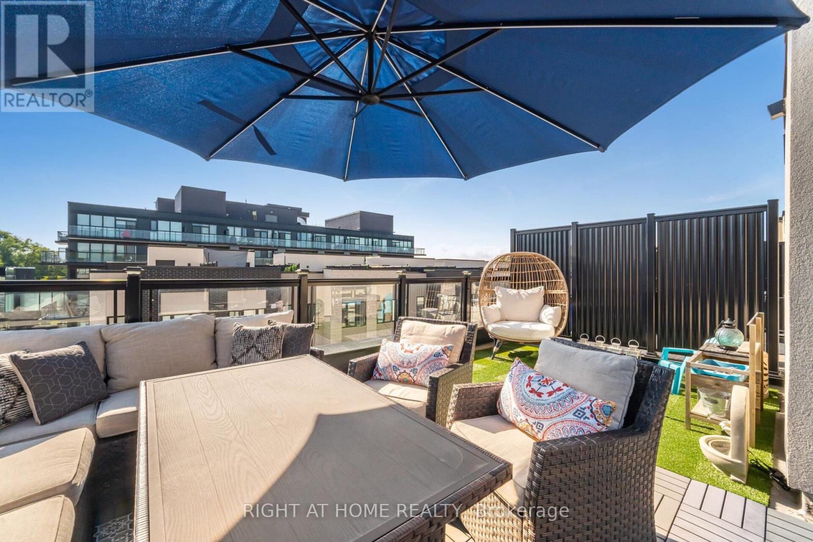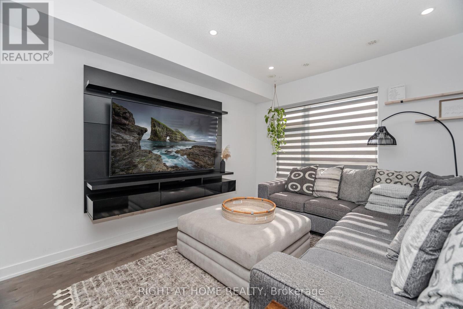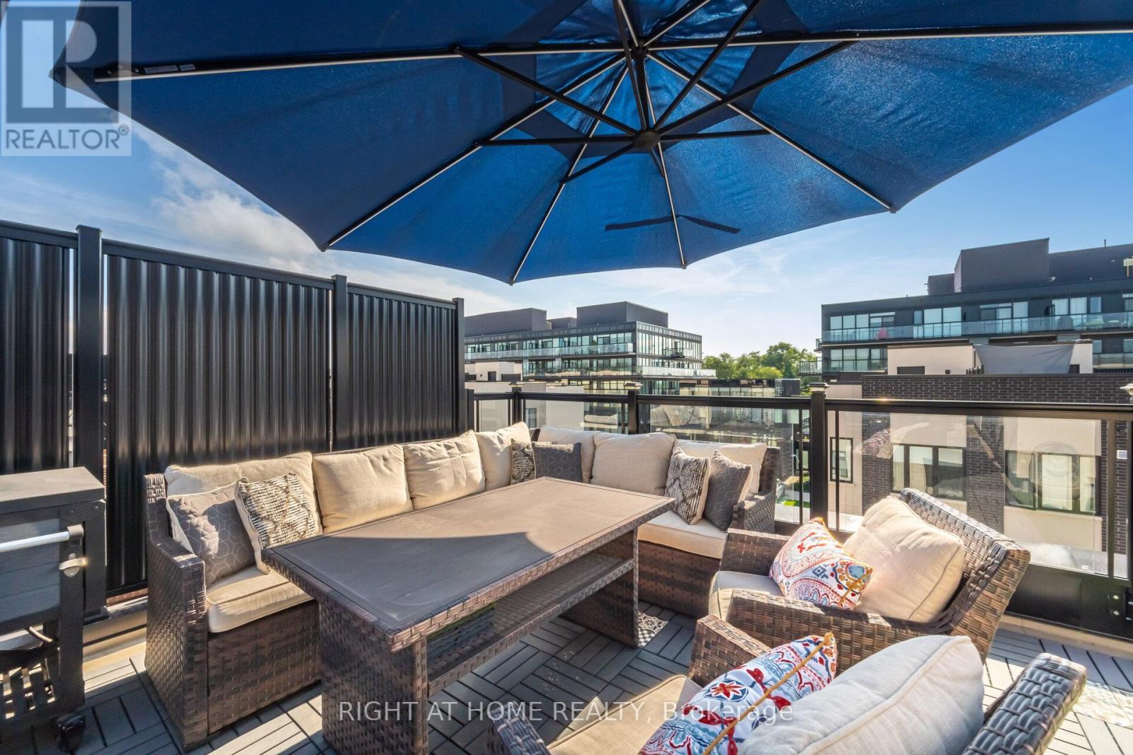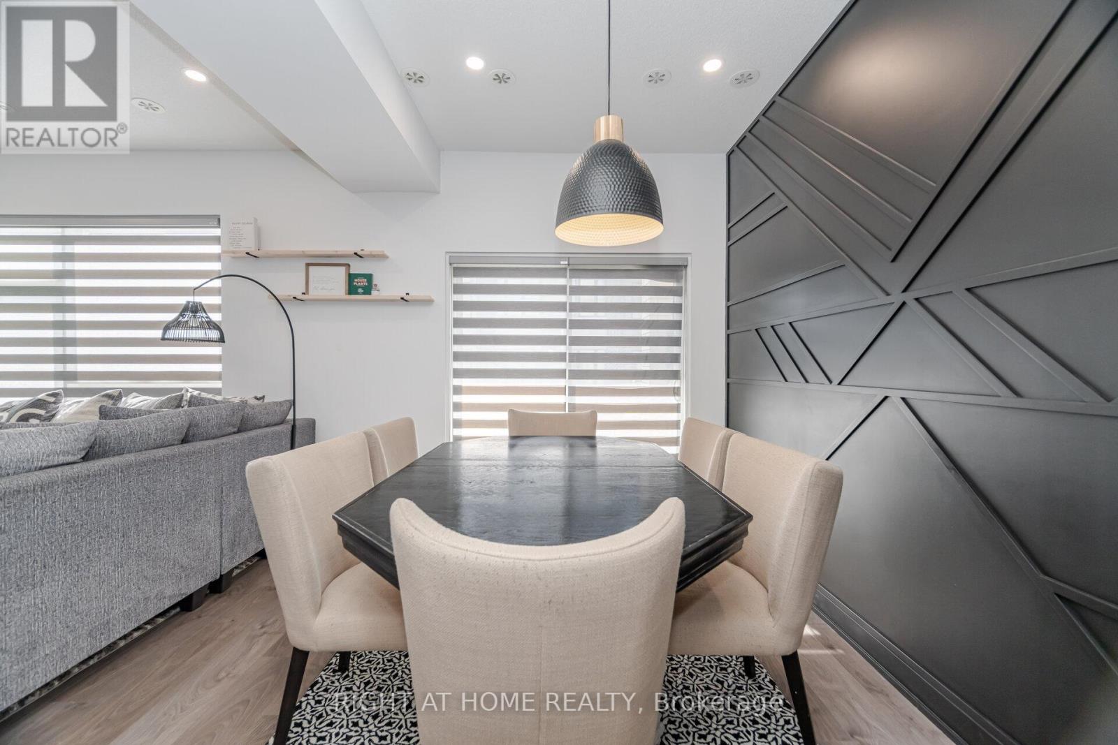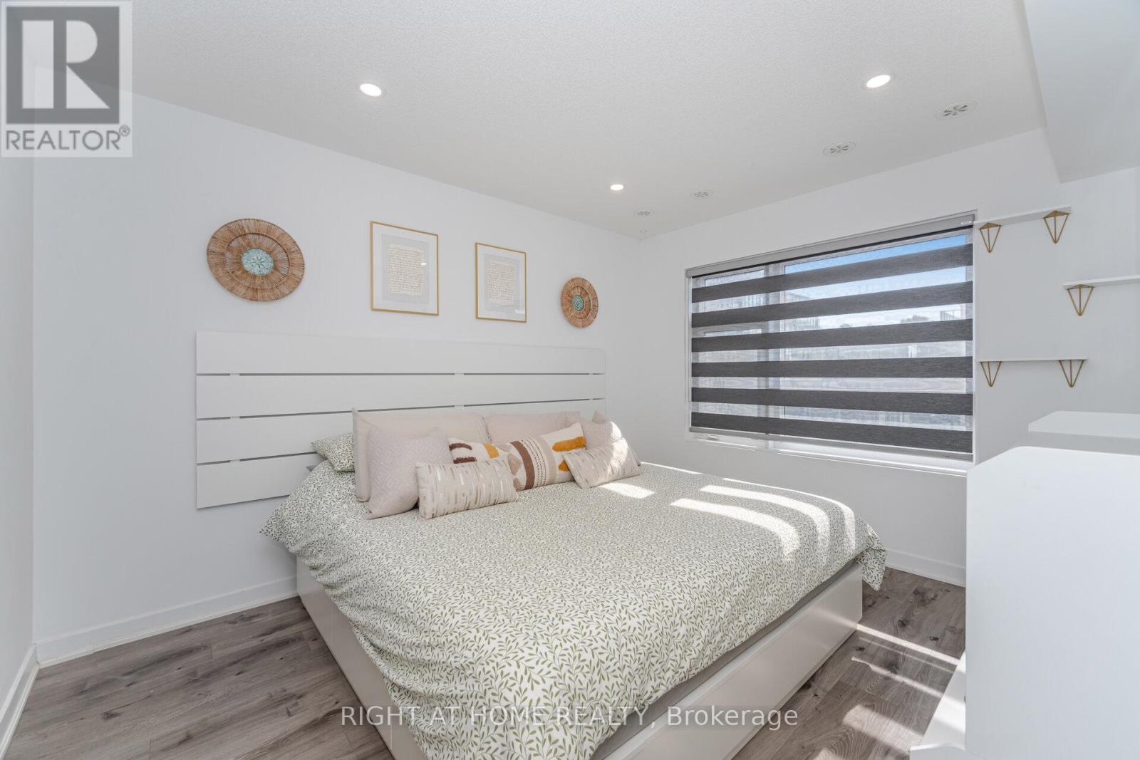$334.21 Monthly*View Tour* Welcome to Station West a modern 3-storey townhome, perfectly located just minutes from the lake, parks, schools, and Aldershot GO Station. This upgraded 2 bedroom, 3 washroom 1,400+ sq. ft. of stylish, low-maintenance living space in one of Burlington's most desirable and commuter-friendly locations. This home has everything you're looking for, a rare hardwood oak staircase with black iron spindles from top to bottom. The potlights and upgraded light fixtures throughout bring a modern touch. Wide plank laminate flooring flows throughout the home, where large windows and a walkout to your private balcony flood the space with natural light. The second floor features a beautifully designed open-concept layout, with spacious living and dining area with a feature wall design that's perfect for entertaining and easy to furnish to suit your style. Step out to an additional balcony from the dining area for even more outdoor space. The kitchen has quartz countertops, a designer backsplash, upgraded black stainless steel appliances, and a large island with breakfast bar, built-in microwave, and built-in hood range. A upgraded 2-piece powder room is also located on this level. The third floor includes bright bedrooms, a full 3-piece bathroom, and bedroom-level laundry for added convenience. The top level boasts an oversized private rooftop terrace with stunning views of Burlington's. (id:51158)