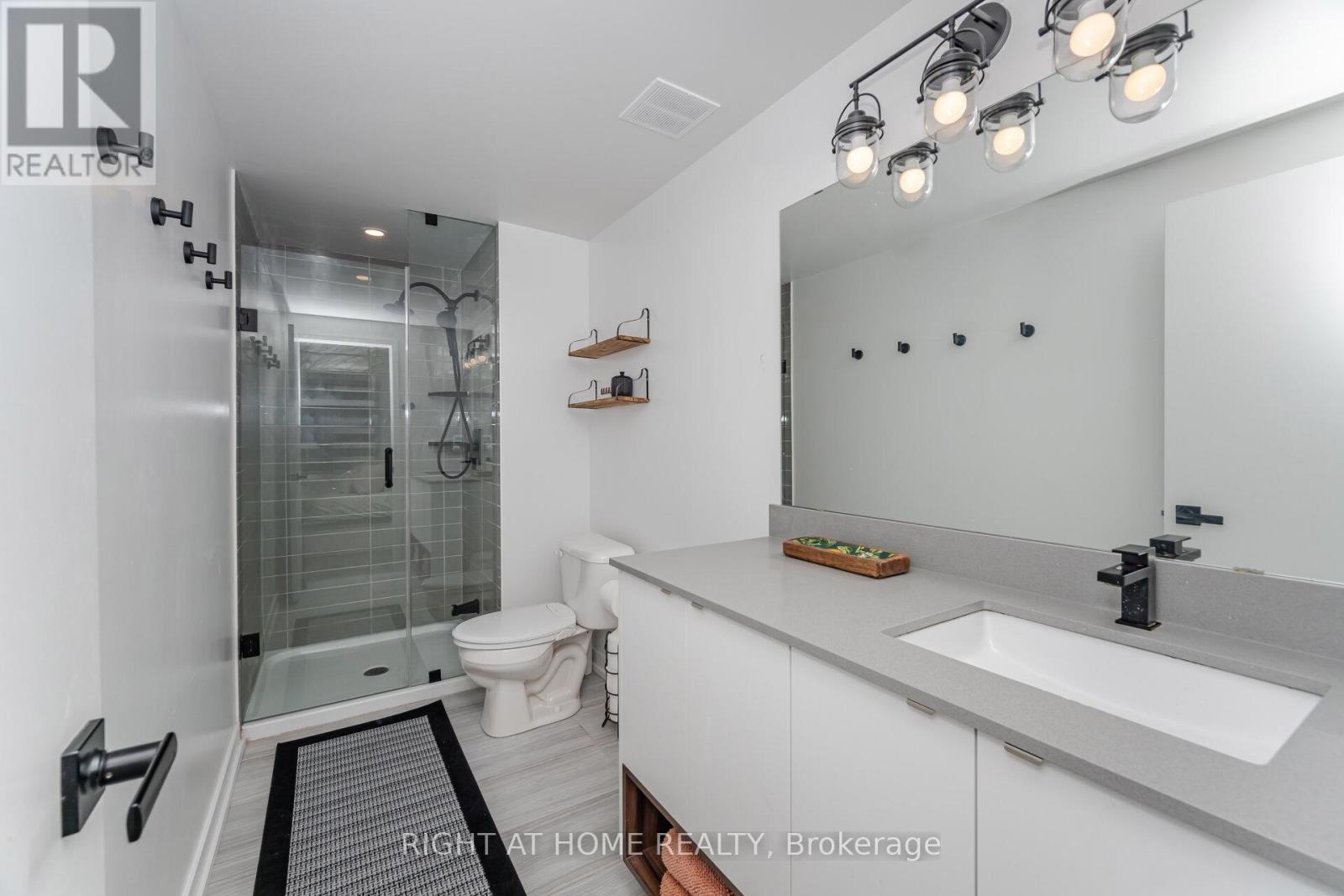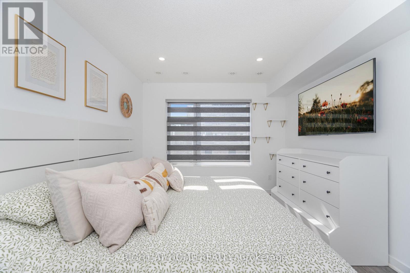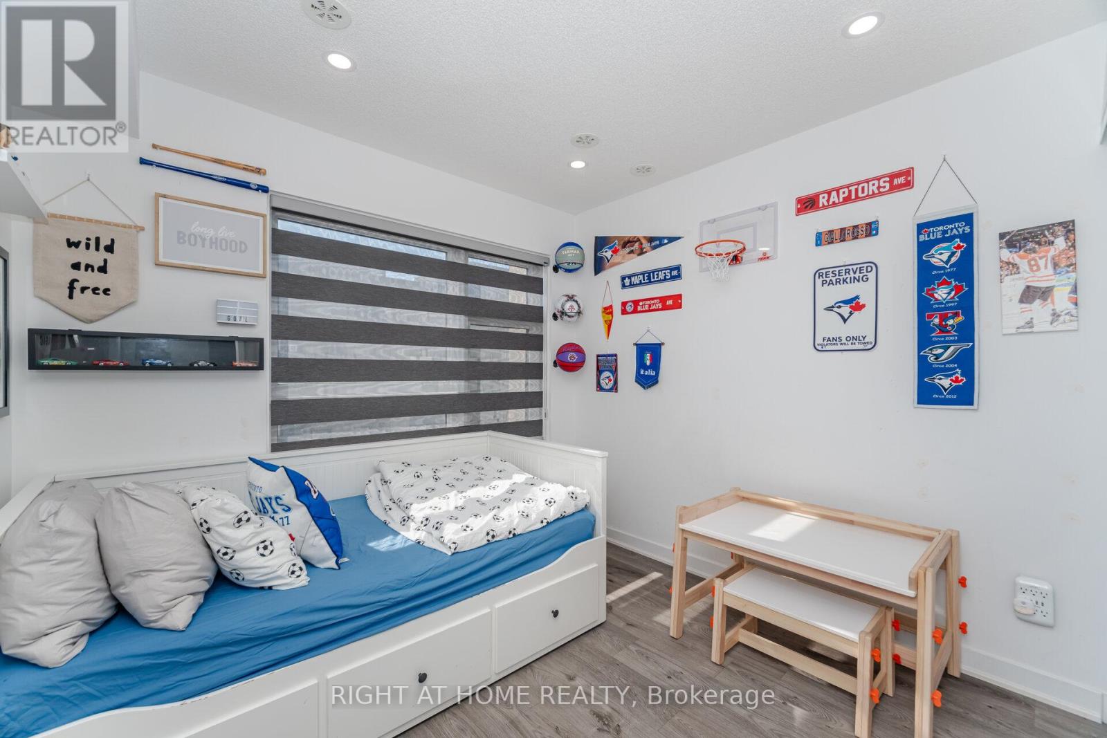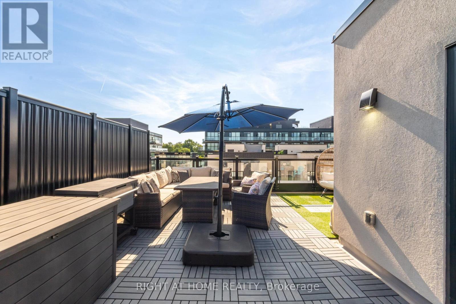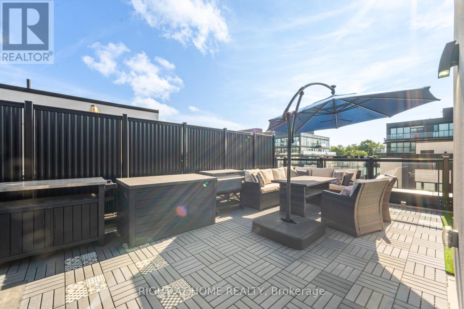 $334.21 Monthly*View Tour* Welcome to Station West a modern 3-storey townhome, perfectly located just minutes from the lake, parks, schools, and Aldershot GO Station. This upgraded 2 bedroom, 3 washroom 1,400+ sq. ft. of stylish, low-maintenance living space in one of Burlington's most desirable and commuter-friendly locations. This home has everything you're looking for, a rare hardwood oak staircase with black iron spindles from top to bottom. The potlights and upgraded light fixtures throughout bring a modern touch. Wide plank laminate flooring flows throughout the home, where large windows and a walkout to your private balcony flood the space with natural light. The second floor features a beautifully designed open-concept layout, with spacious living and dining area with a feature wall design that's perfect for entertaining and easy to furnish to suit your style. Step out to an additional balcony from the dining area for even more outdoor space. The kitchen has quartz countertops, a designer backsplash, upgraded black stainless steel appliances, and a large island with breakfast bar, built-in microwave, and built-in hood range. A upgraded 2-piece powder room is also located on this level. The third floor includes bright bedrooms, a full 3-piece bathroom, and bedroom-level laundry for added convenience. The top level boasts an oversized private rooftop terrace with stunning views of Burlington's. (id:51158)