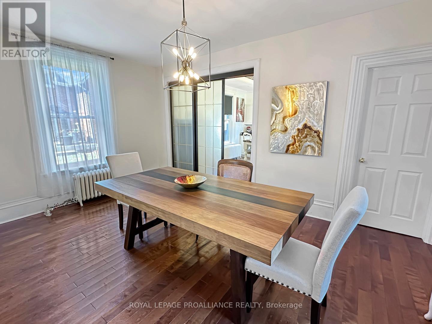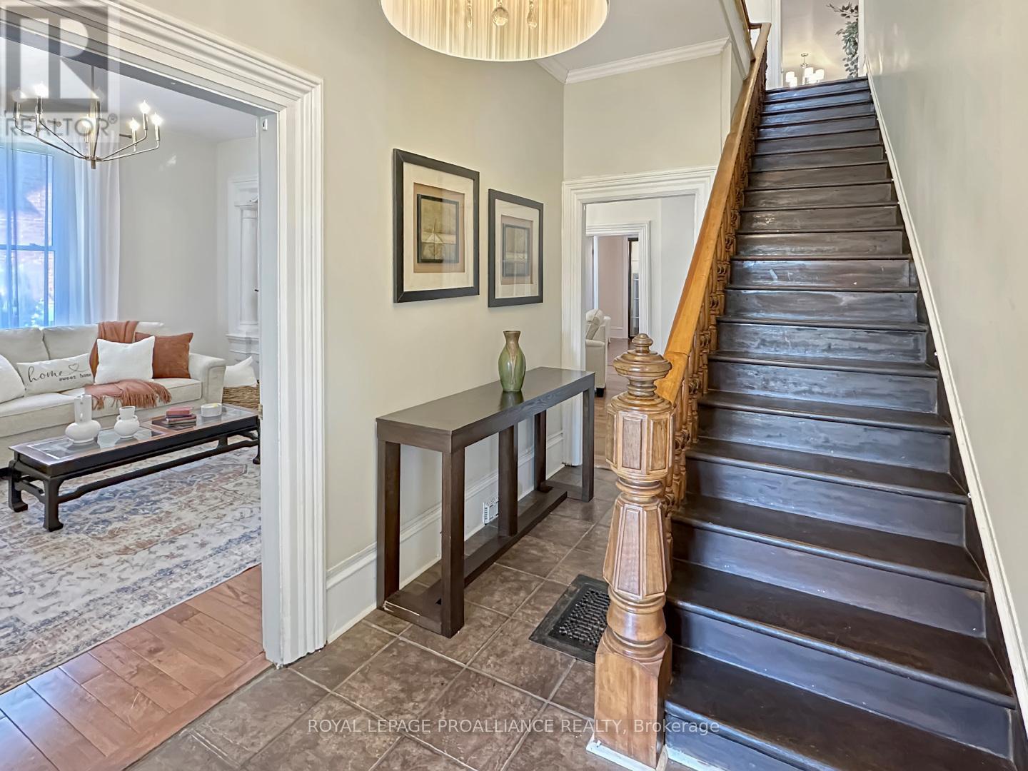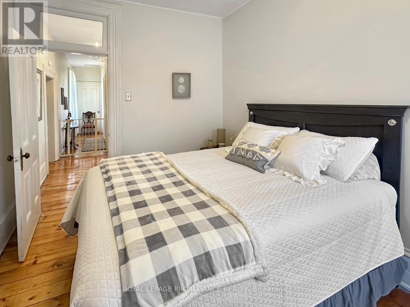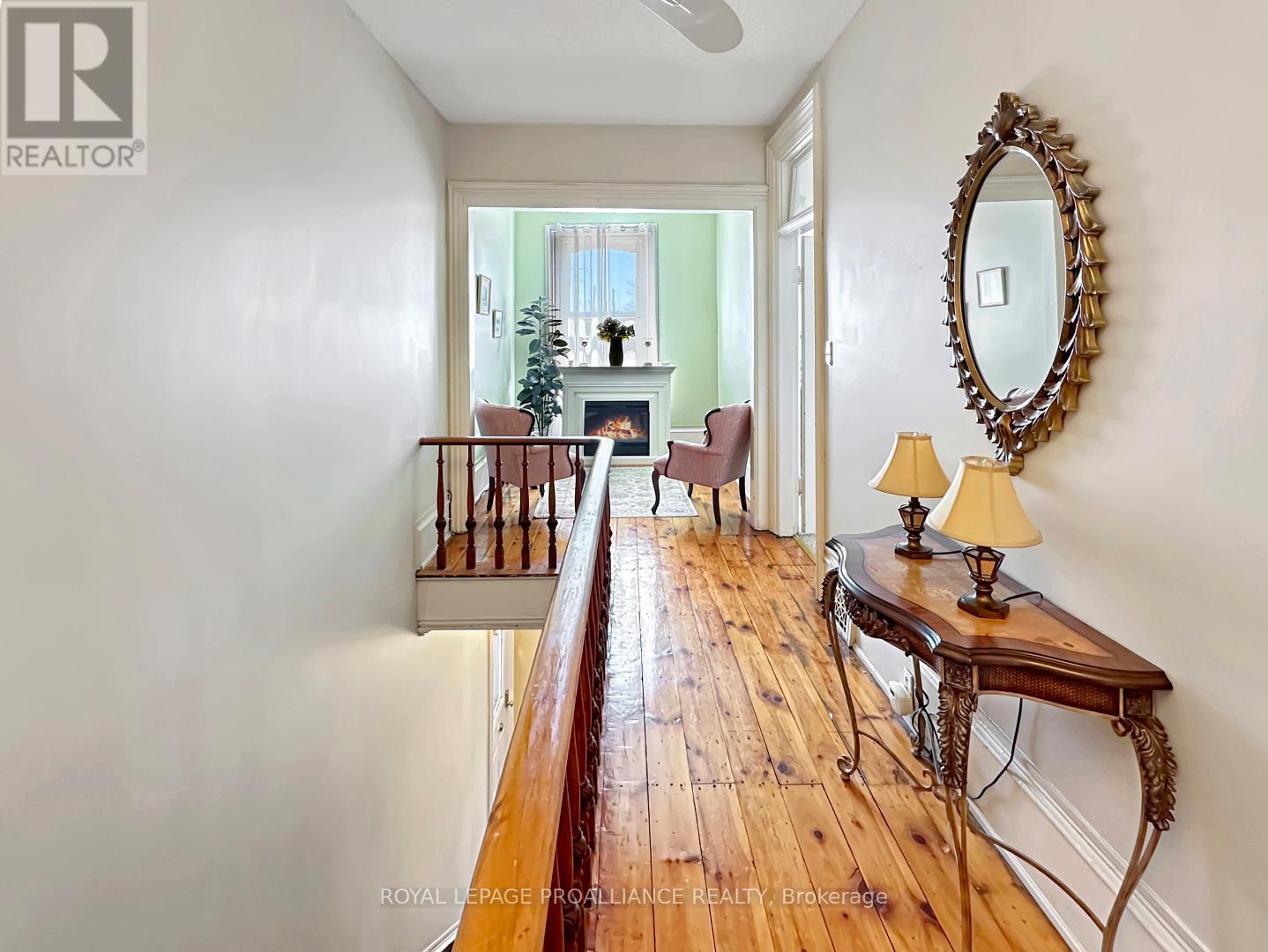 Welcome to this beautifully updated two-story brick century home, nestled in the downtown community of Stirling. Rich in character yet thoughtfully modernized, this spacious property offers incredible versatility. Step inside to discover a generous main level featuring a bright front sun-room, a large and inviting living room, a cozy fireplace readying room, a formal dining room, and a stylishly updated kitchen complete with ample cabinetry and a center island perfect for everyday living and entertaining. A cozy den, family room, office, and a full three-piece bathroom complete this level, with a layout that could easily be converted into a self-contained in-law suite. The second floor is accessible by two separate staircases and boasts five well-sized bedrooms, a stunning five-piece bathroom with a soaker tub, and convenient second-floor laundry. Beautiful hardwood flooring runs throughout the home, adding warmth and timeless elegance. Outside, enjoy a fully fenced backyard with a spacious deck ideal for relaxing or hosting guests. The property also includes a charming carriage house with parking for two vehicles, plenty of storage, and a loft that offers even more potential. Ample parking and a prime location just steps from Stirling's shops, cafes, and local amenities make this home the perfect blend of heritage charm and modern convenience.But it is more than just a home. It is a lifestyle centered in the downtown core, offering unparalleled walking accessibility to theaters, restaurants, coffee shops, grocery stores, and much more-all just steps away. This village is truly a community of support and care, known affectionately as the village with a big heart. The pictures simply don't do it justice. It's a must-see grand home from the 1800s that offers spacious living and a large backyard, blending historic charm with modern convenience. (id:51158)